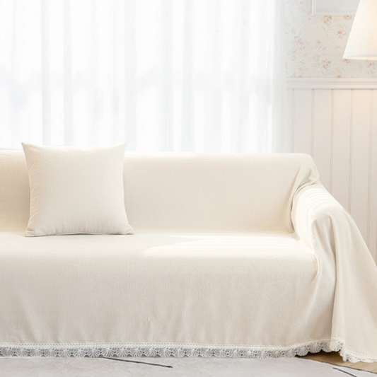1人掛け~大きいサイズまでナチュラルワッフルフリンジソファカバー