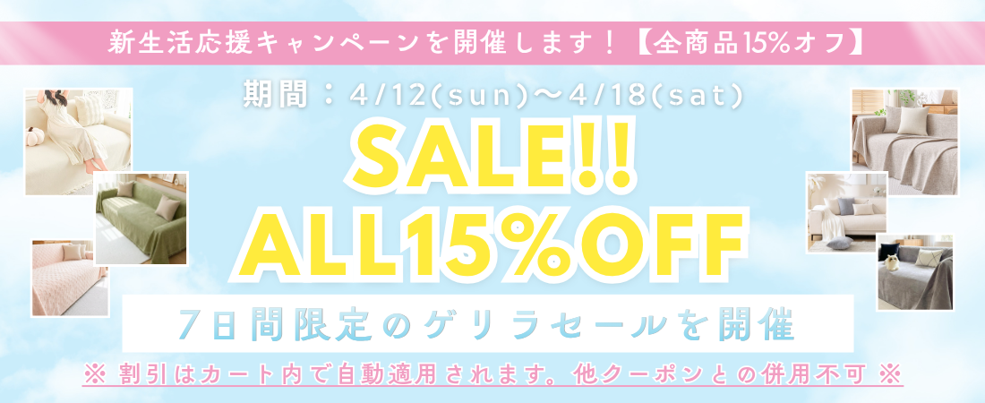 幅広いサイズのソファーカバーをご用意。