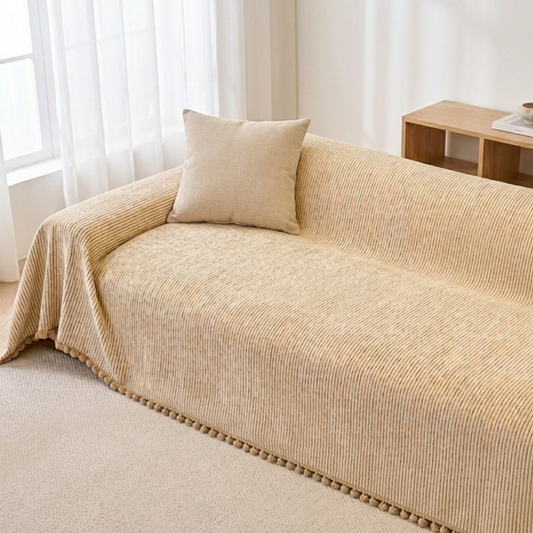 【即納】ナチュラルテクスチャーフリンジソファカバー