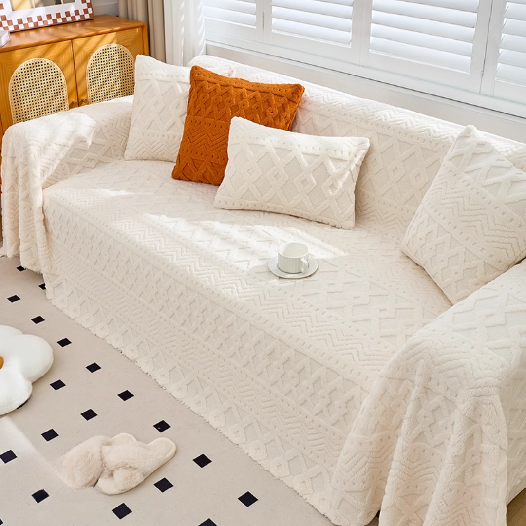 北欧スタイルの空間を演出する、繊細な織り模様のマルチソファカバー。