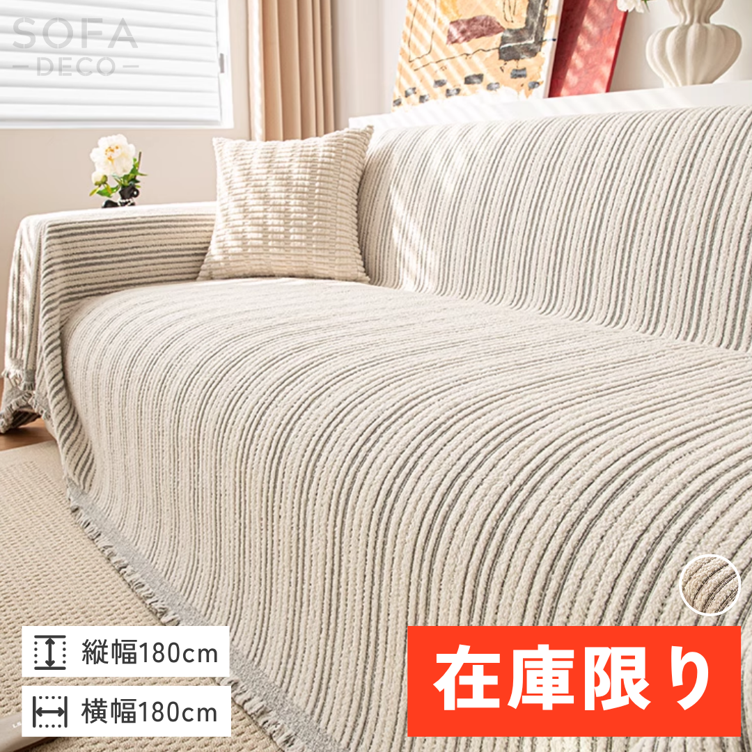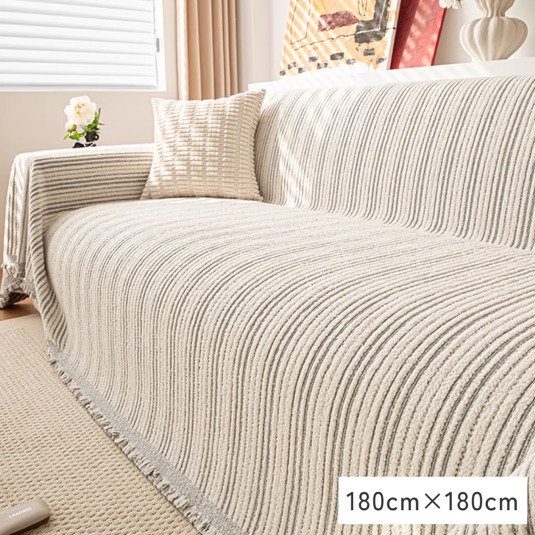 やわらかな質感と温もりが魅力の、ナチュラルなストライプ柄のマルチソファカバー。