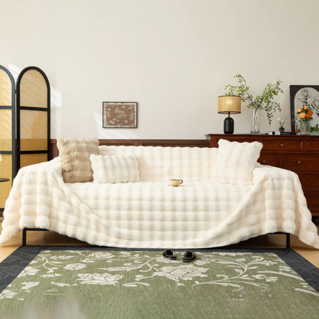 軽やかなフラッフィータッチで、ソファにかけるだけで優しい雰囲気に整います。