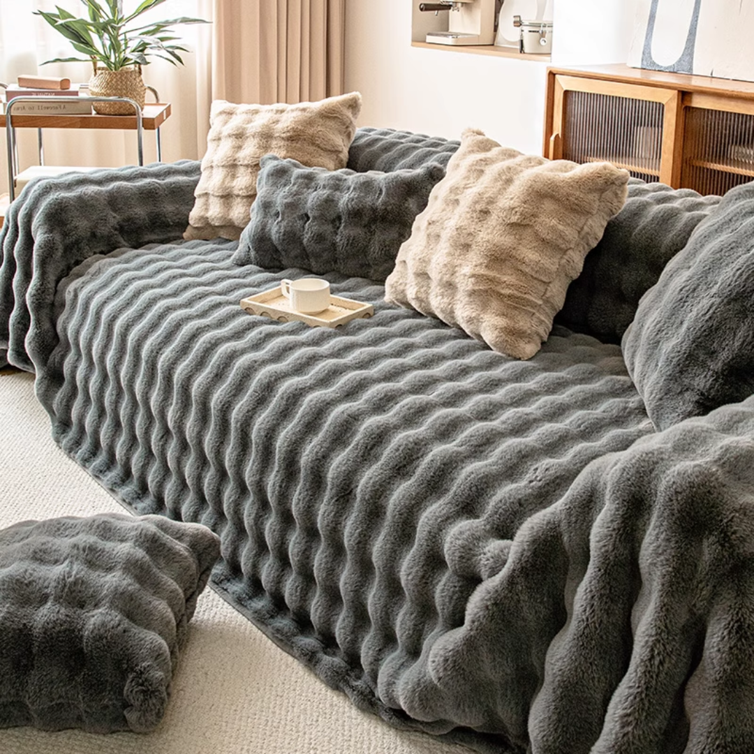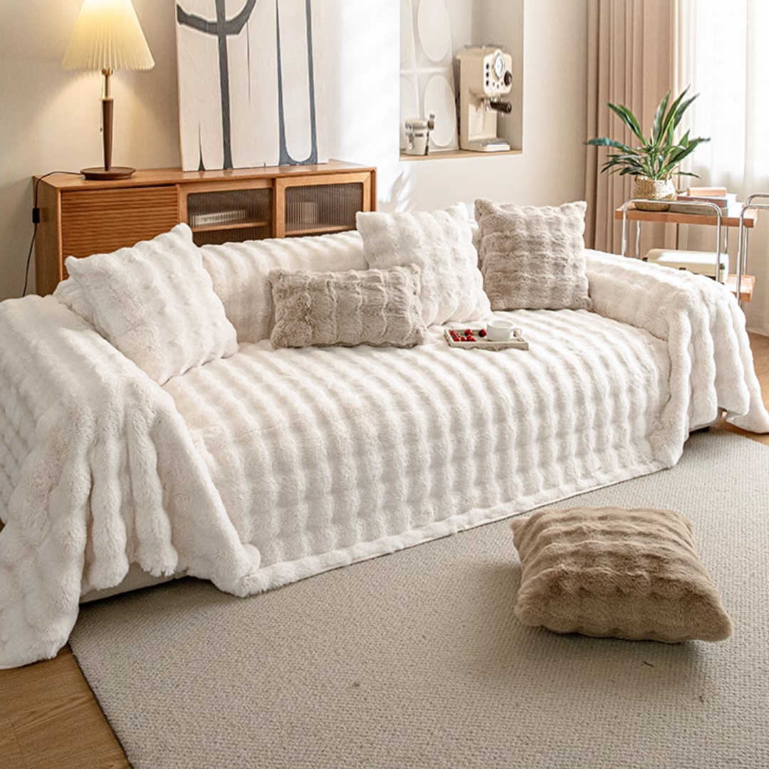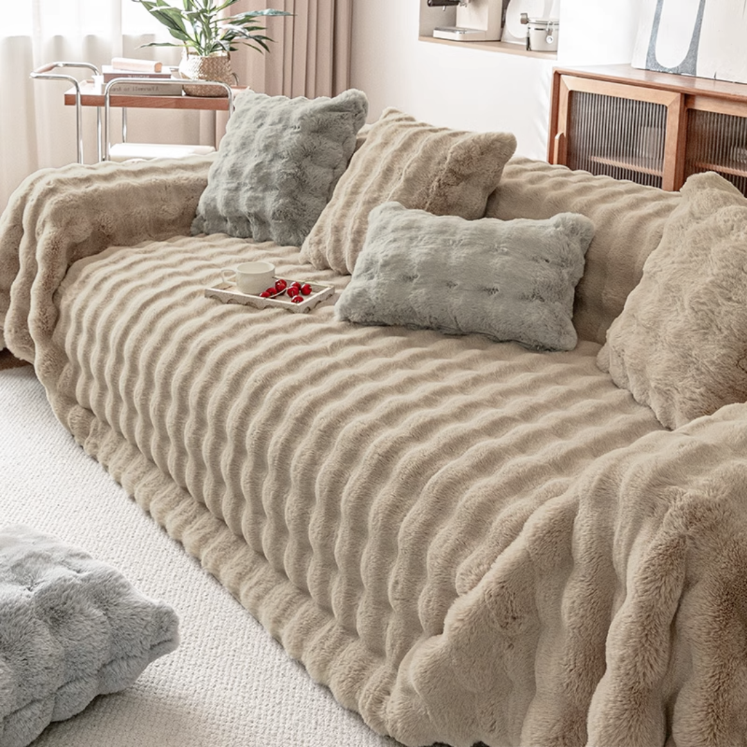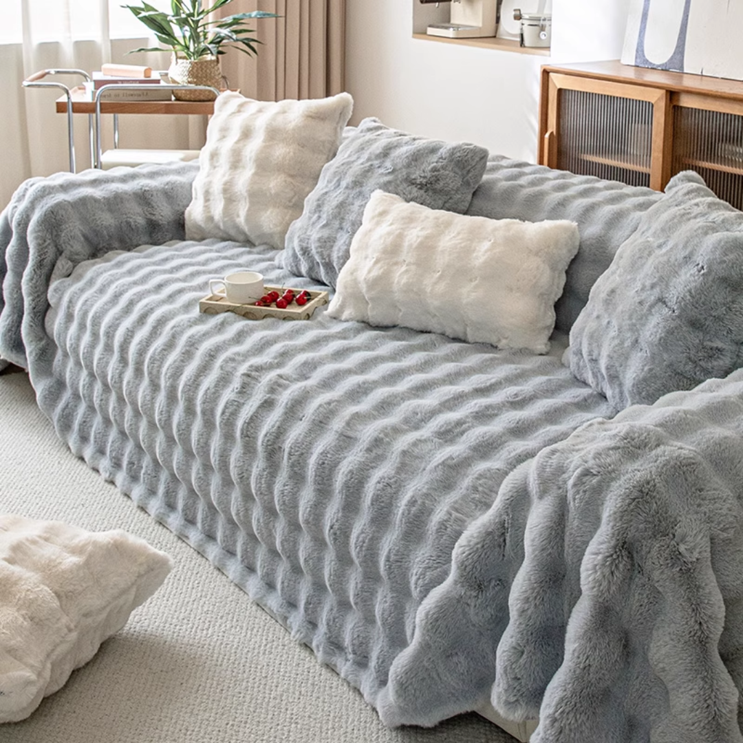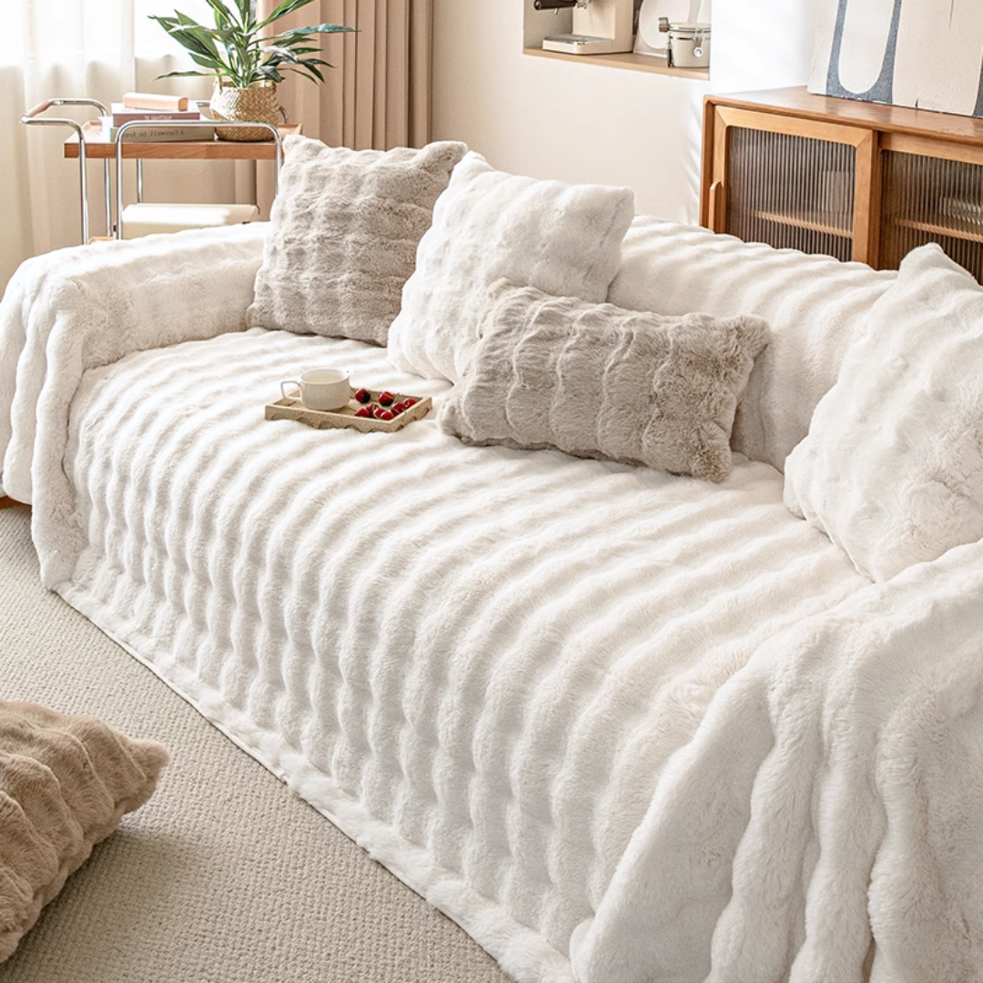 ふんわりとしたぬくもりに包まれる、ふわもこマルチソファカバー。