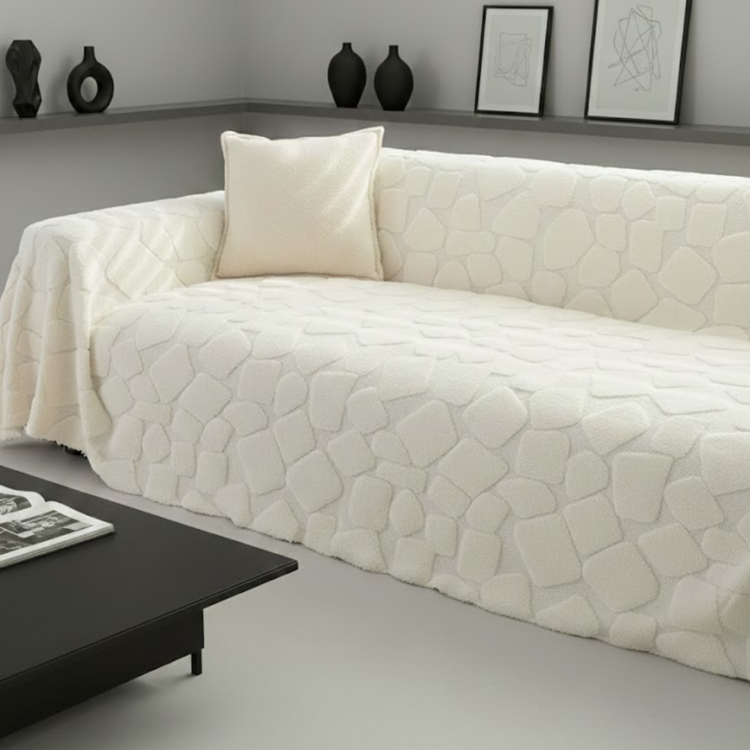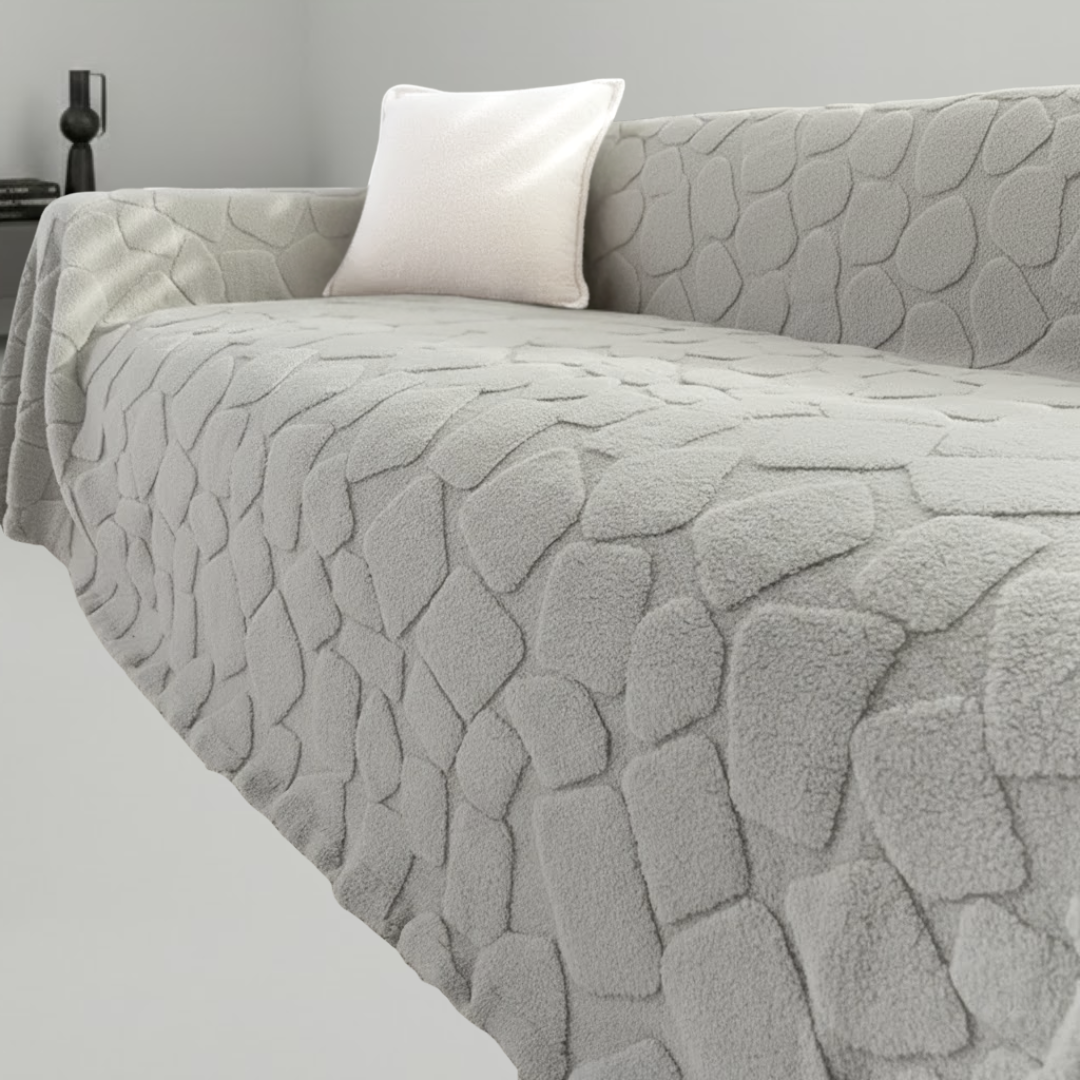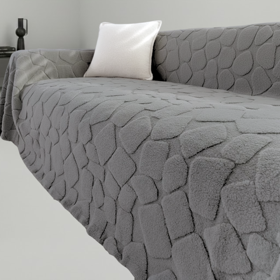 石畳のような凹凸デザインが魅力の、ストーン調のマルチソファカバー。