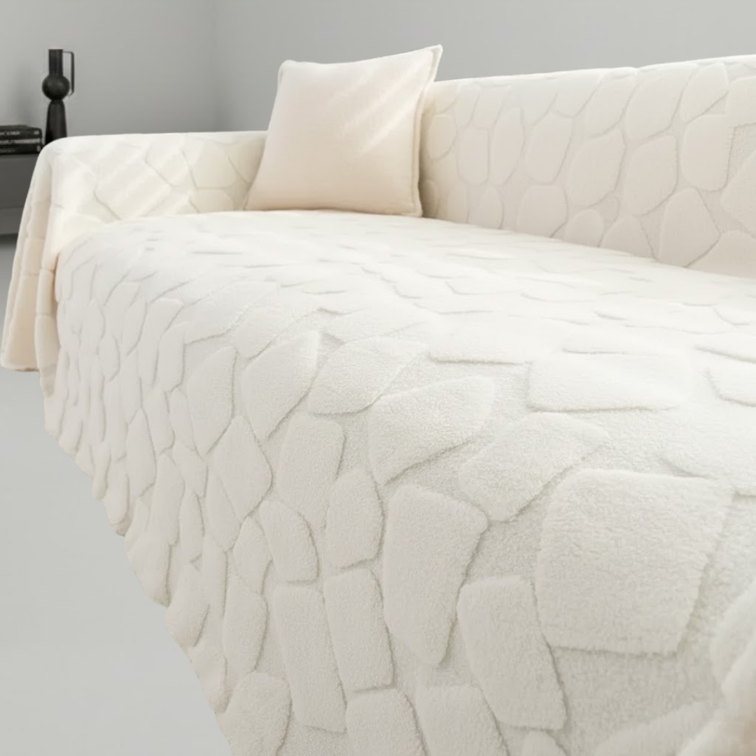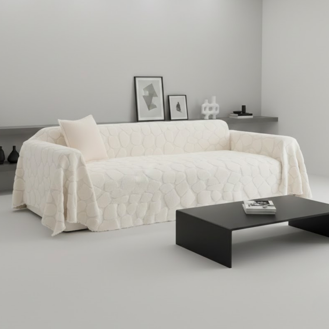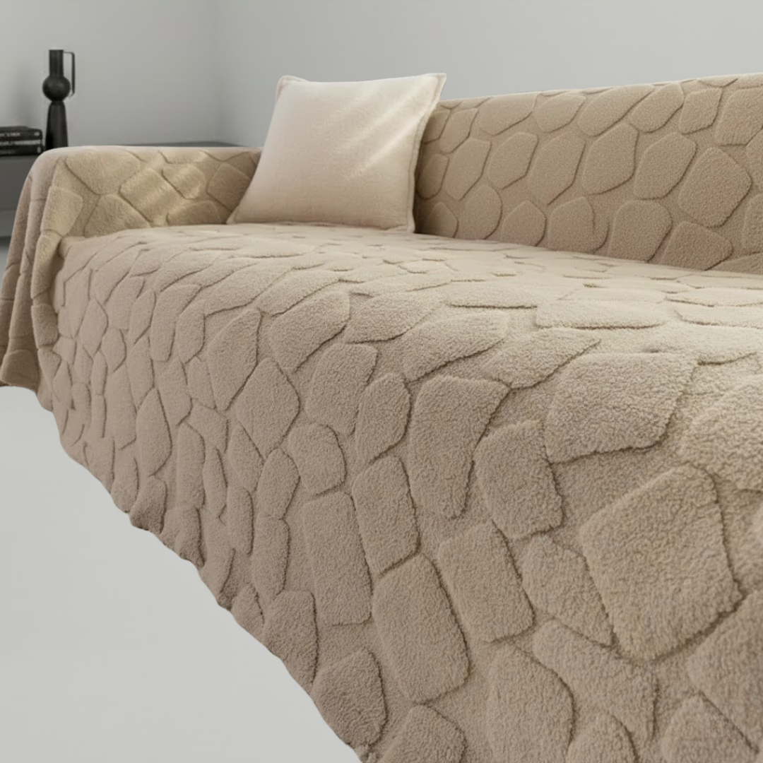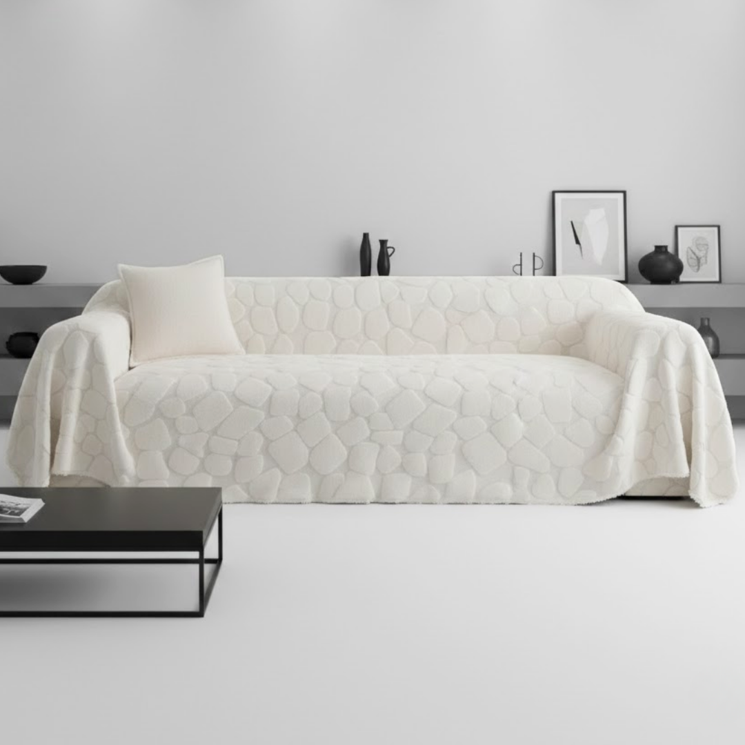 石畳のような凹凸デザインが魅力の、ストーン調のマルチソファカバー。