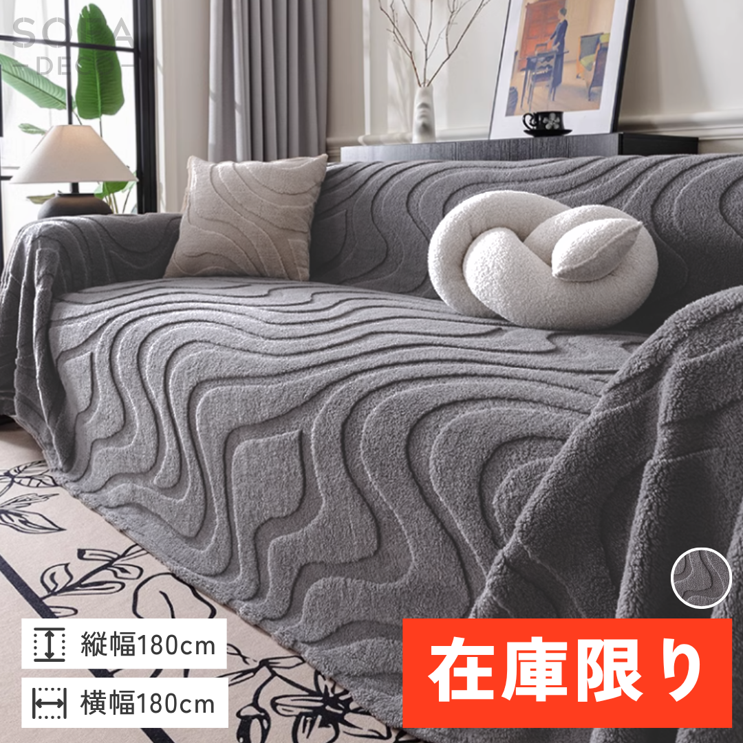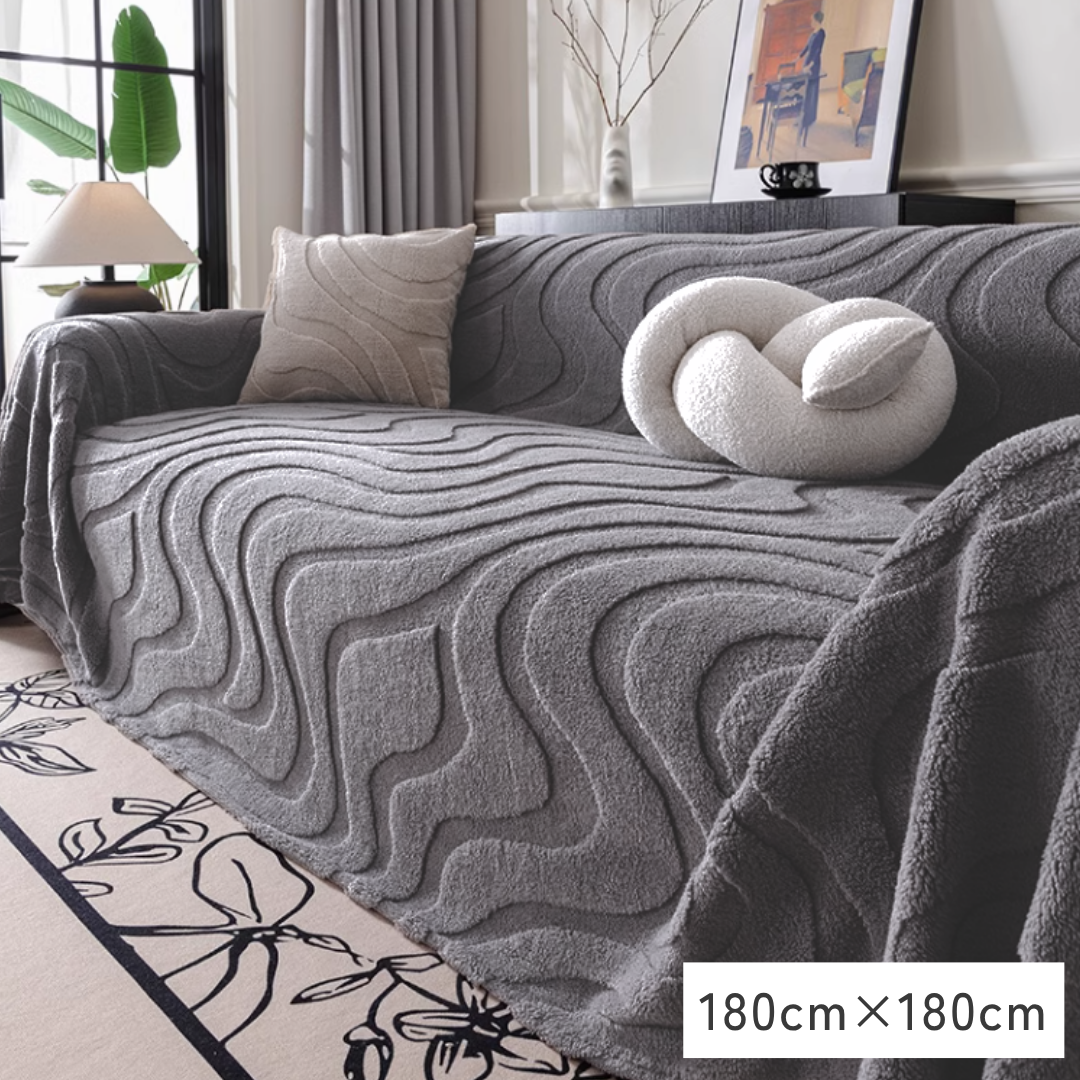 流れるようなウェーブデザインが印象的な、ラグジュアリーなマルチソファカバー。