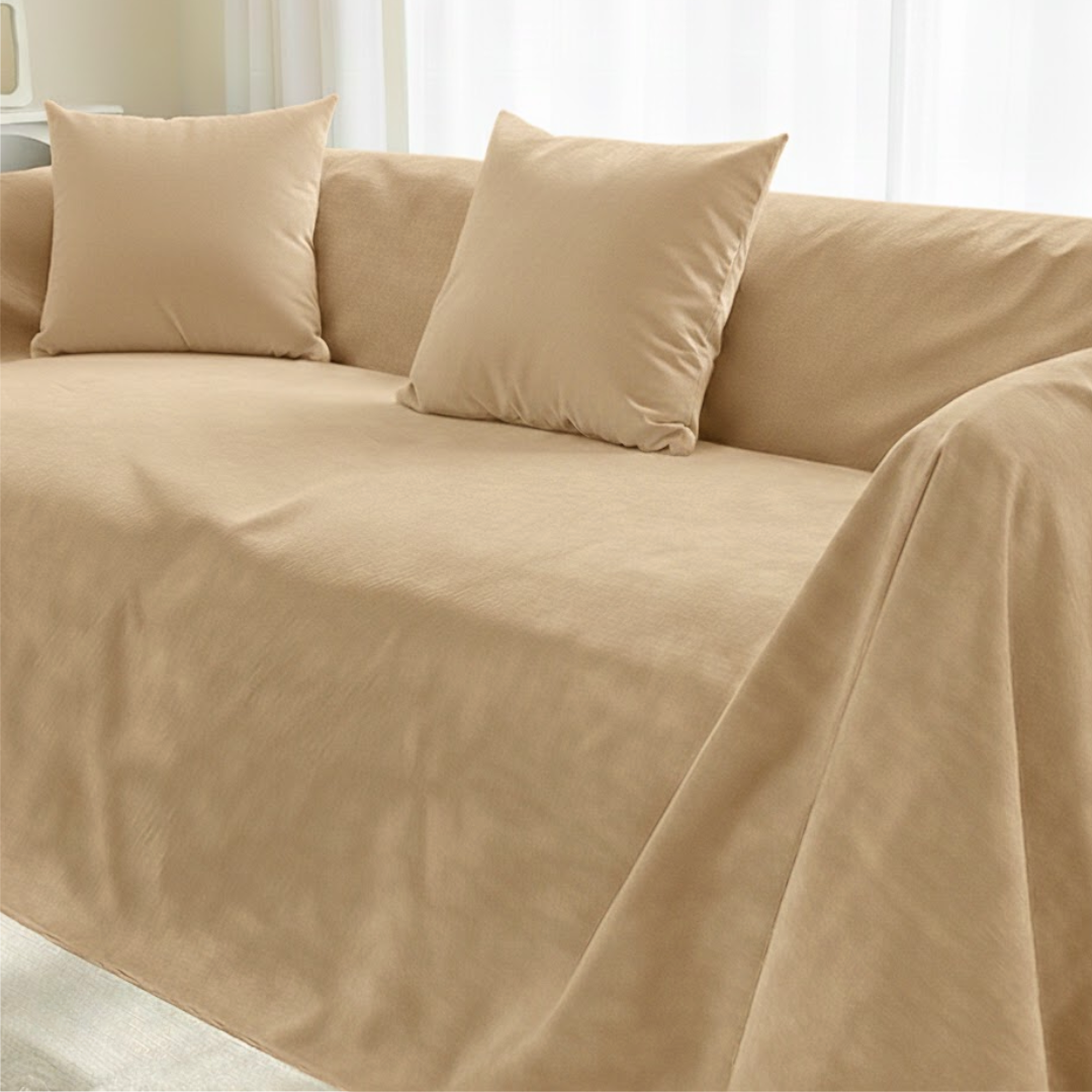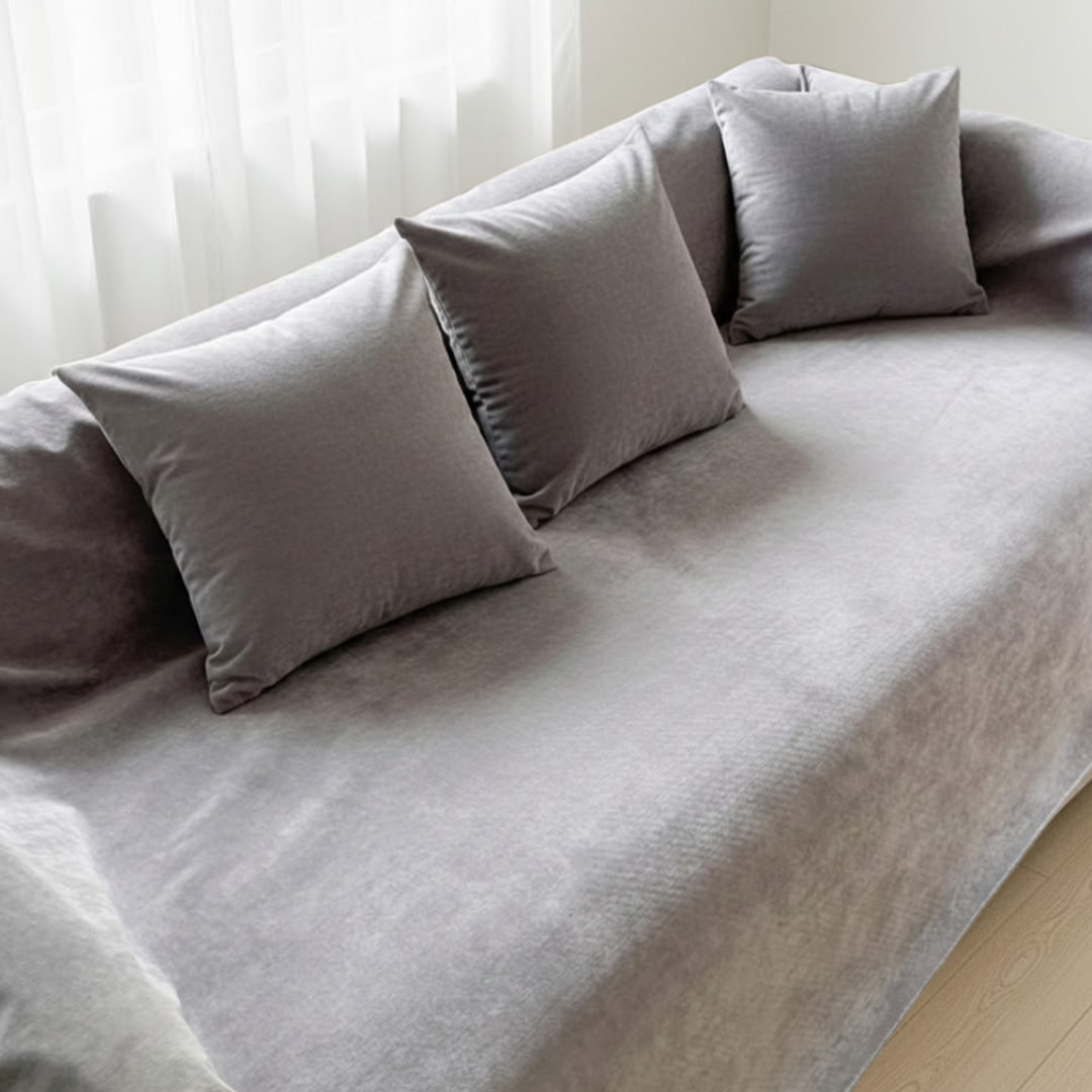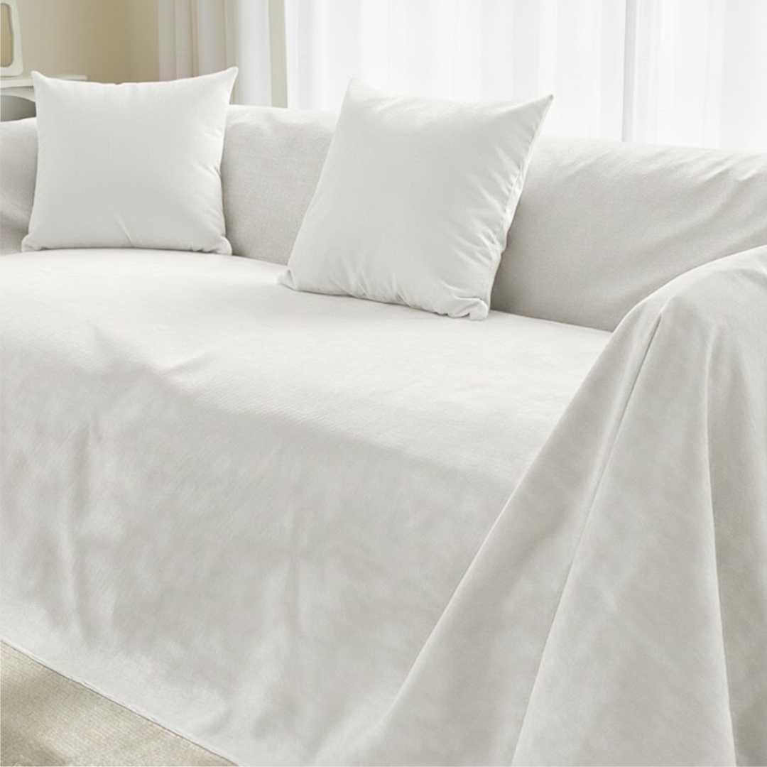 スムースな質感とピュアなカラーが上品に映える、シェニール風生地のマルチソファカバー。