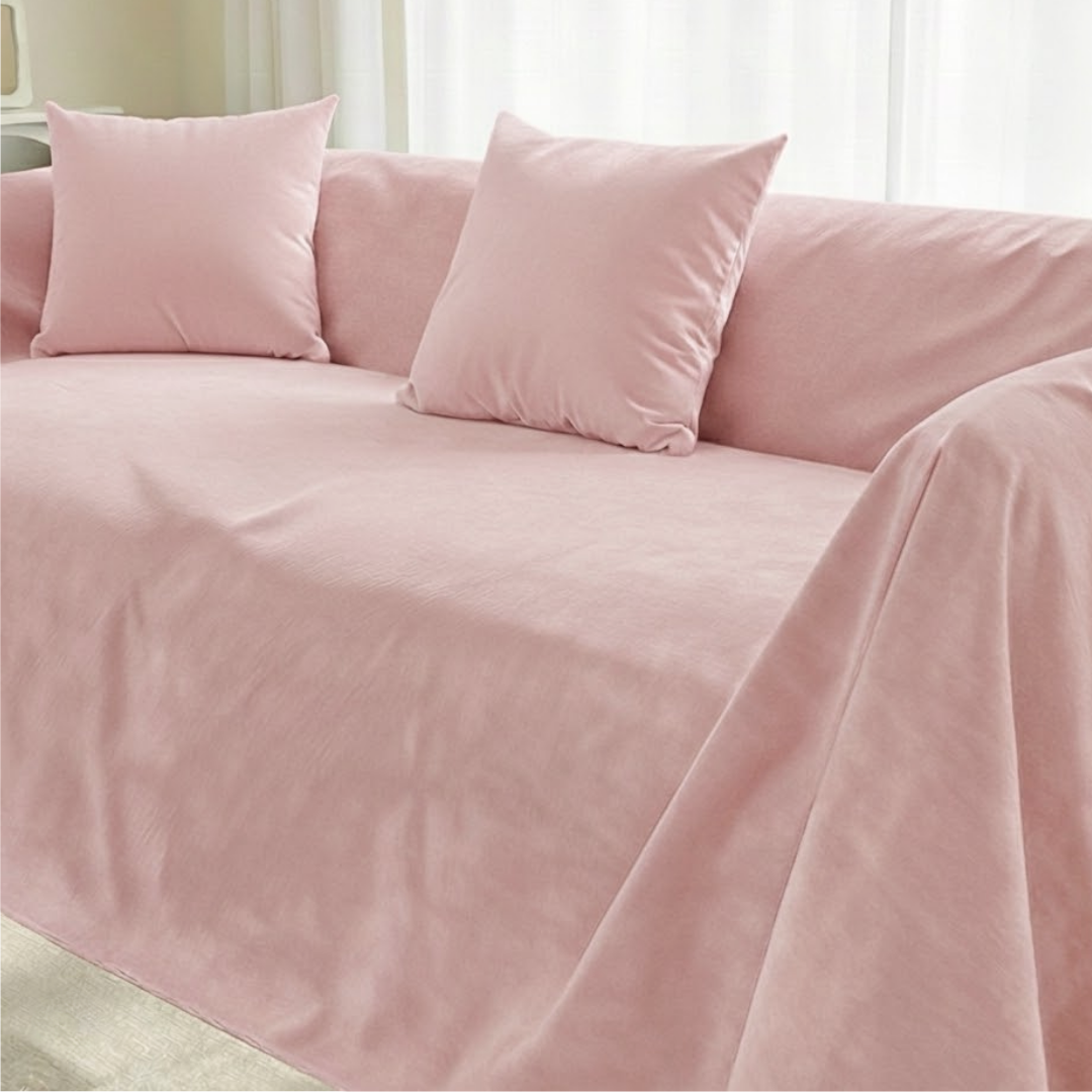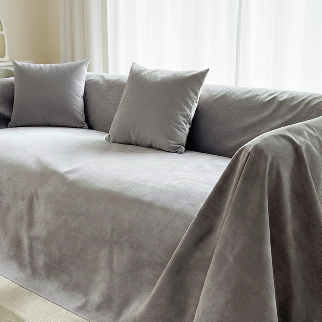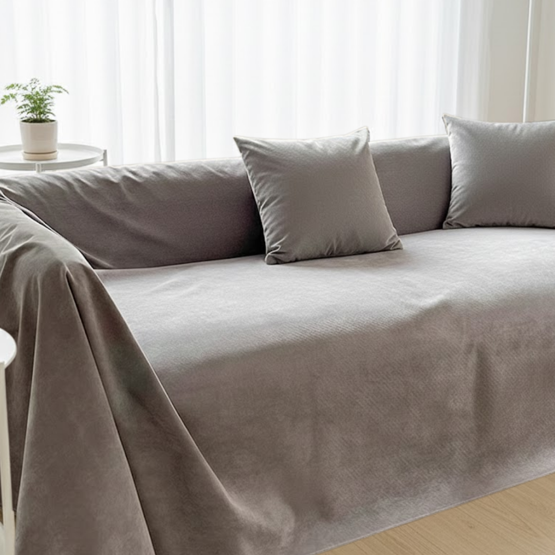スムースな質感とピュアなカラーが上品に映える、シェニール風生地のマルチソファカバー。