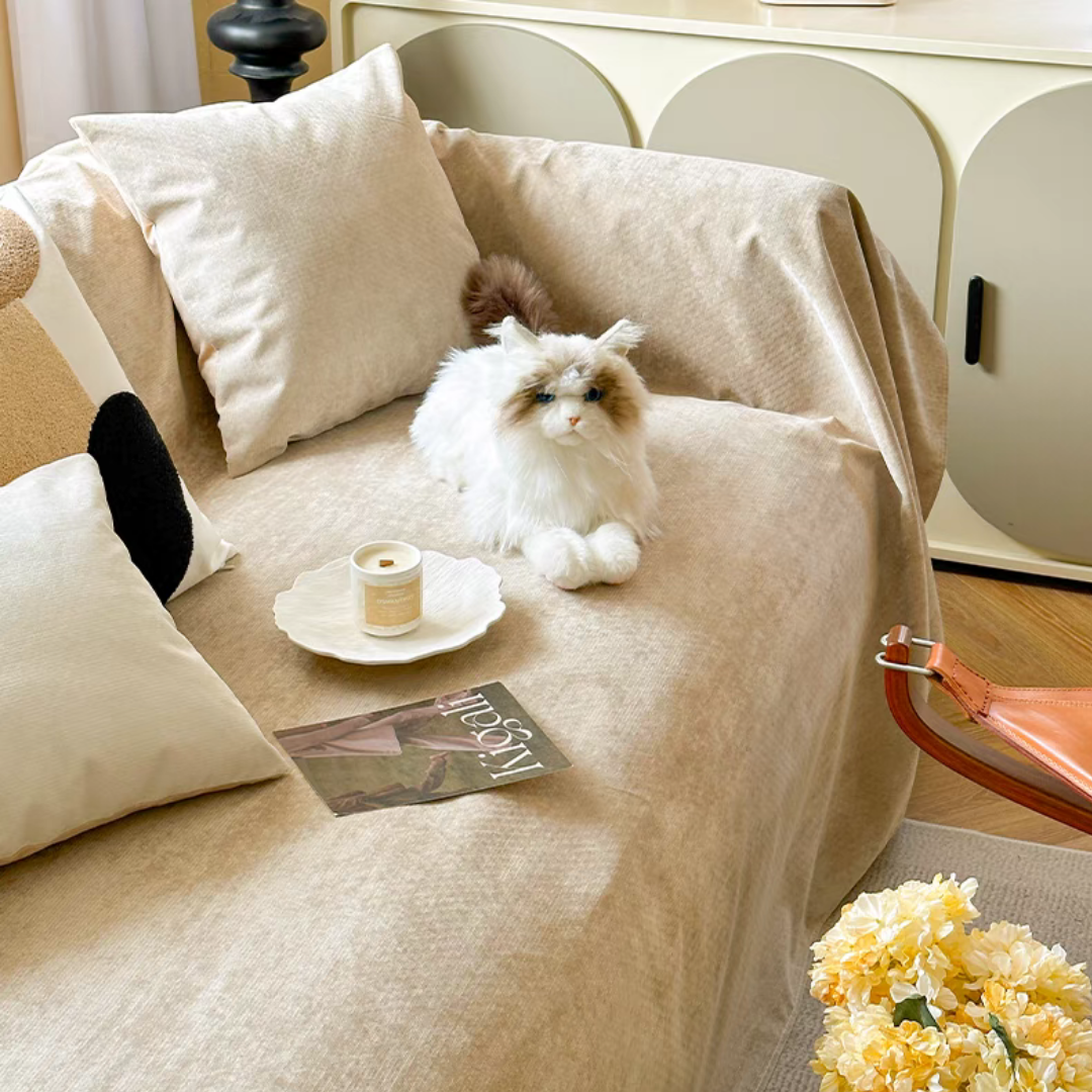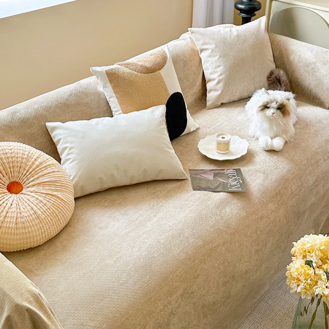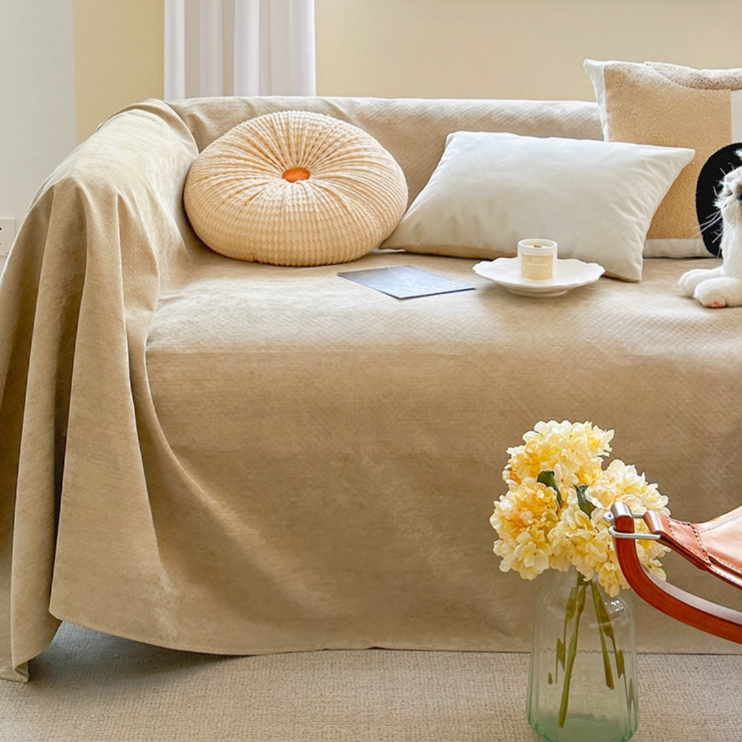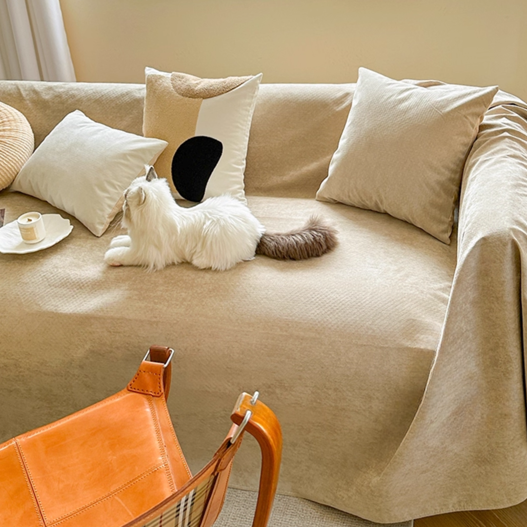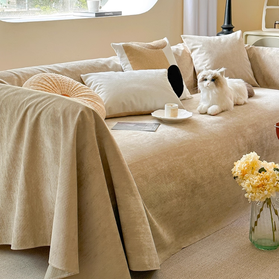 スムースな質感とピュアなカラーが上品に映える、シェニール風生地のマルチソファカバー。