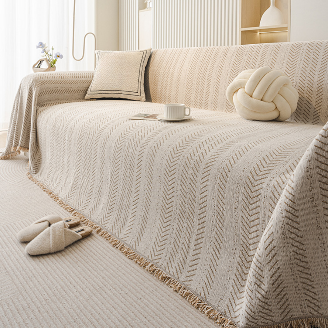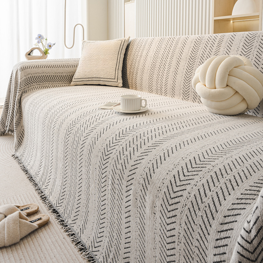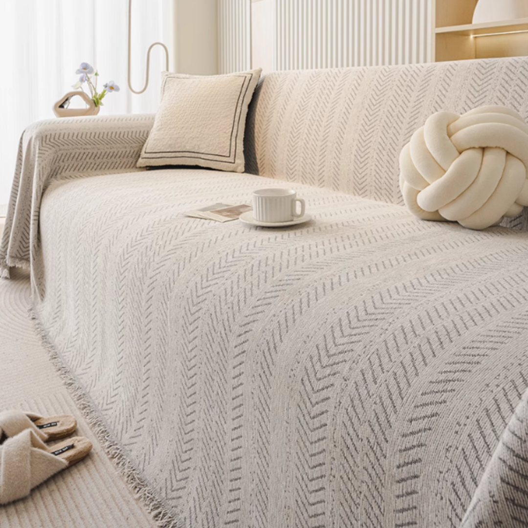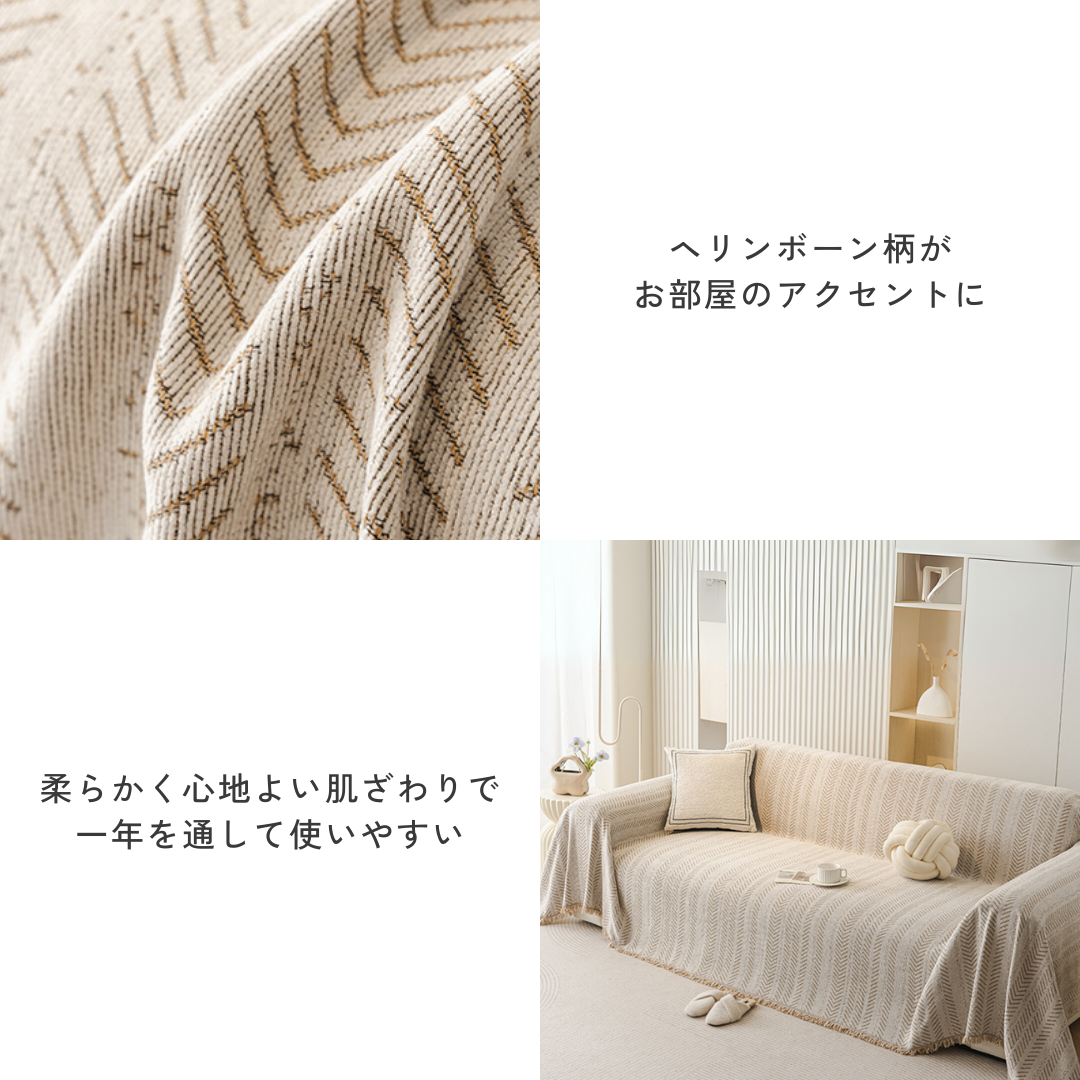 洗練されたヘリンボーン柄が印象的な、ミニマルデザインのソファカバー。