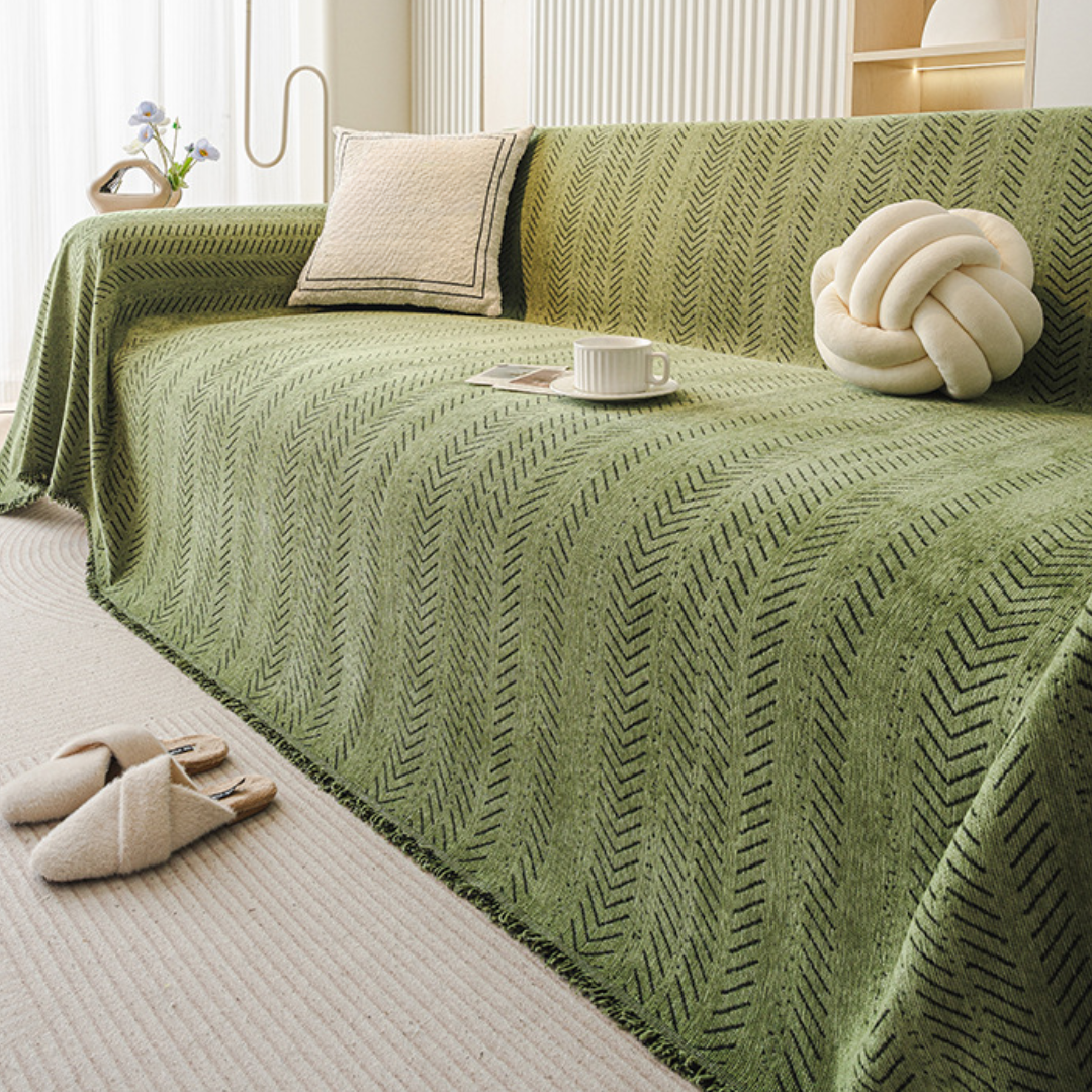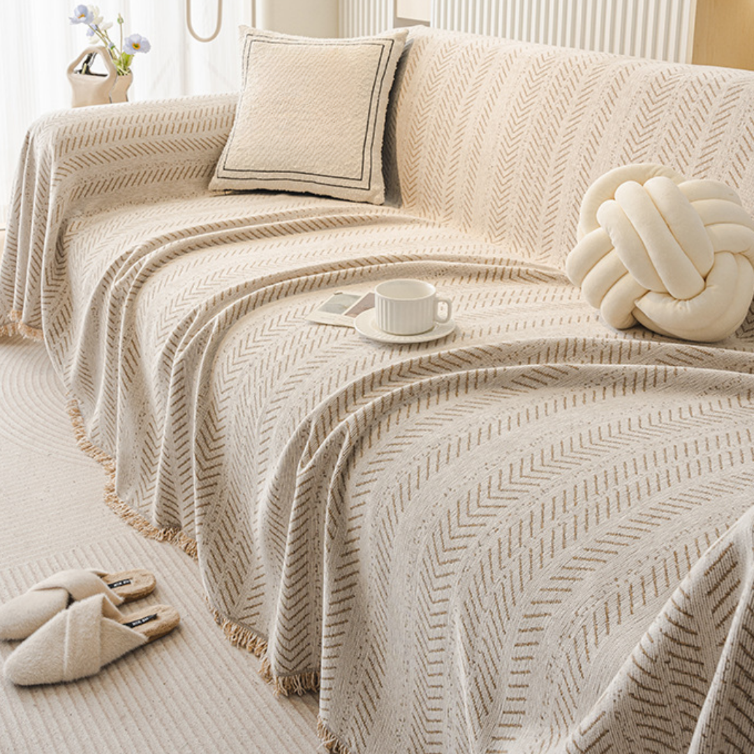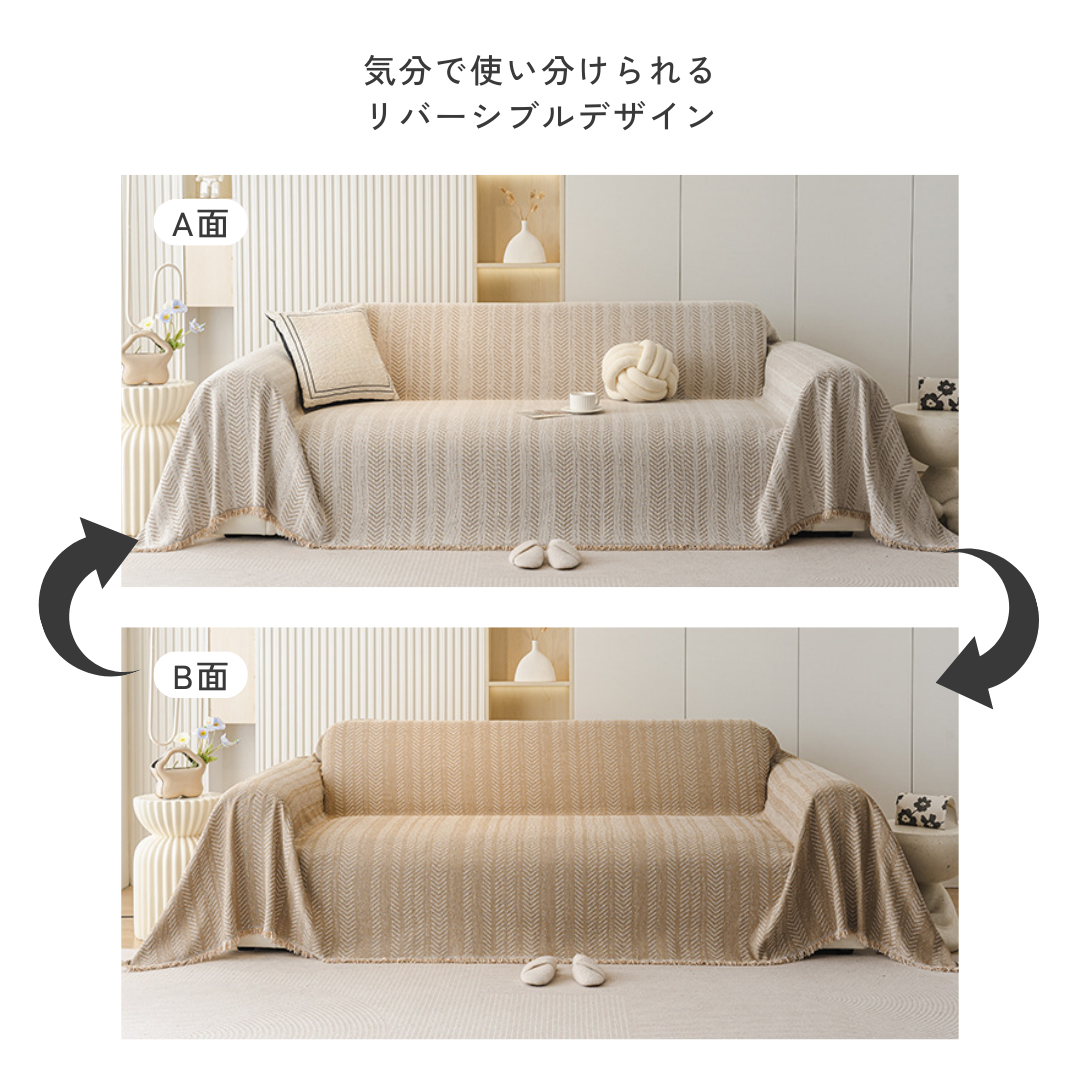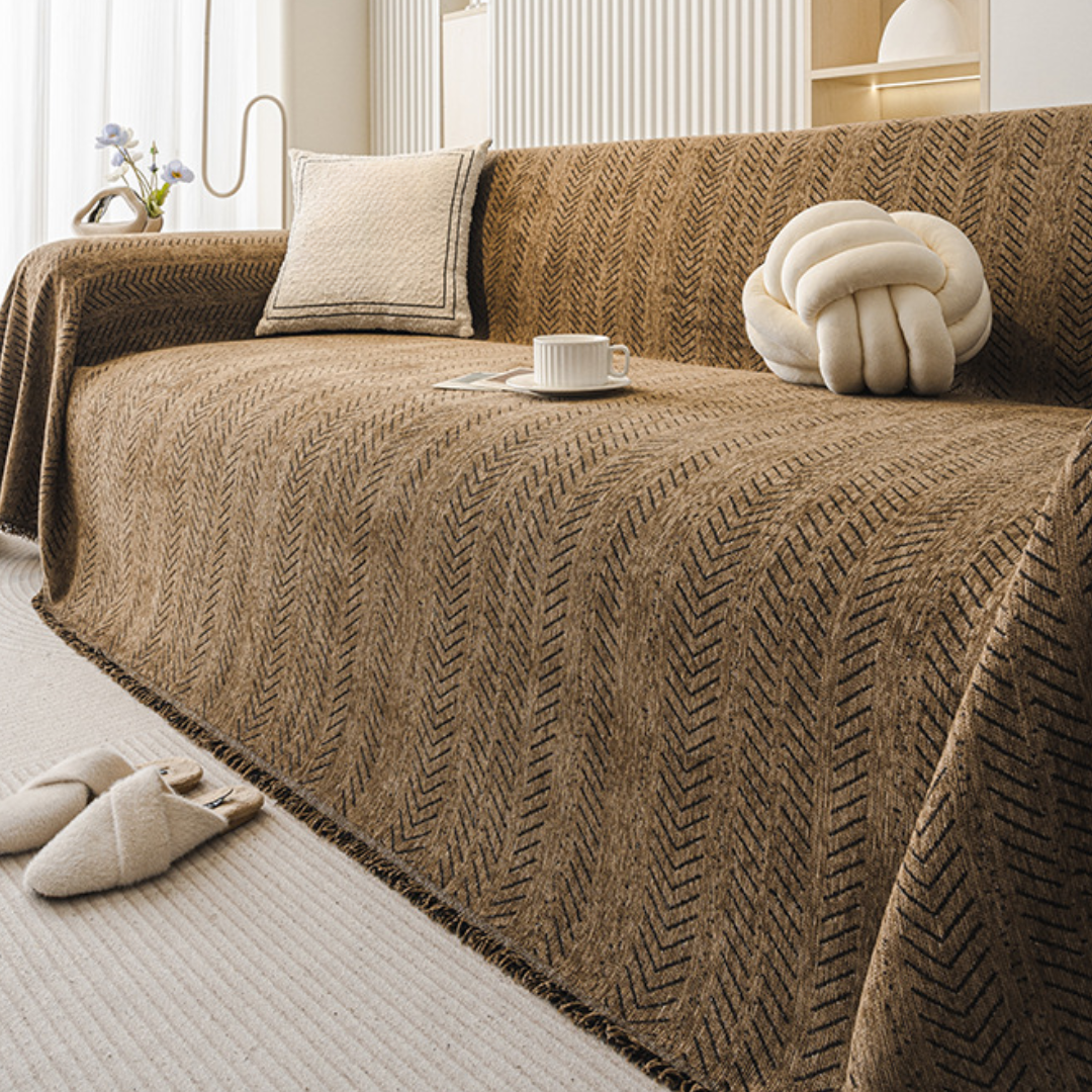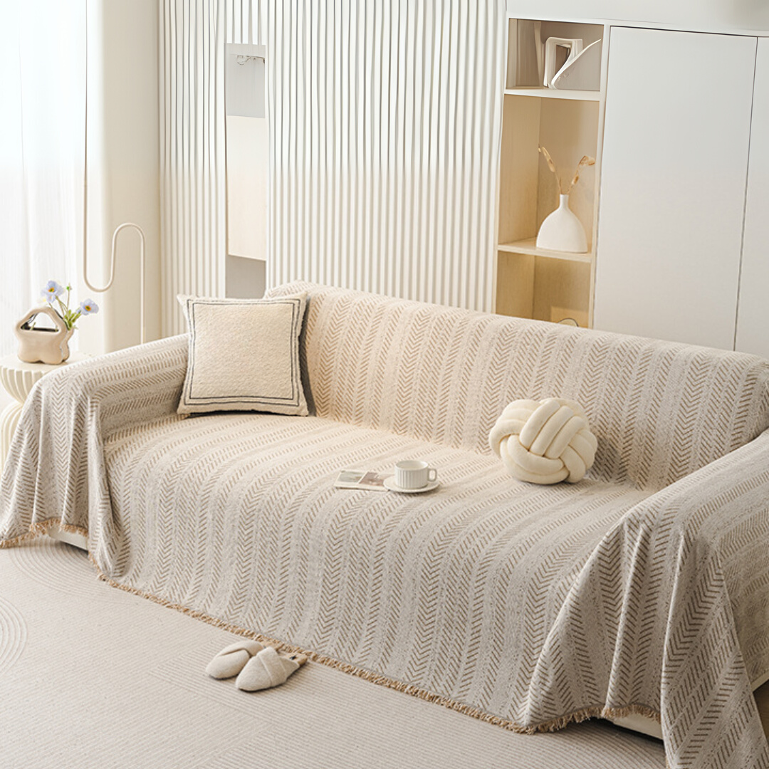 洗練されたヘリンボーン柄が印象的な、ミニマルデザインのソファカバー。