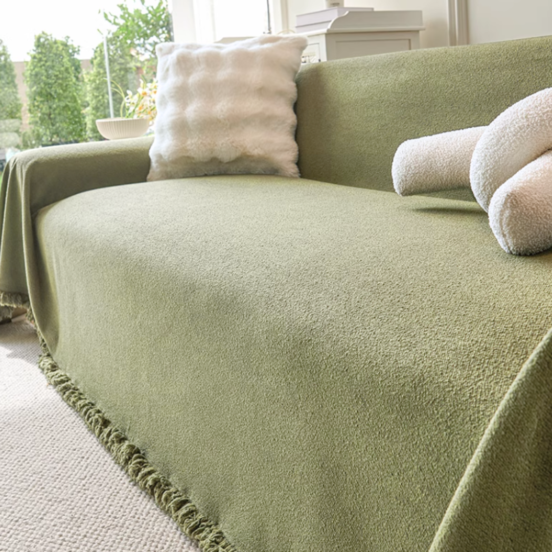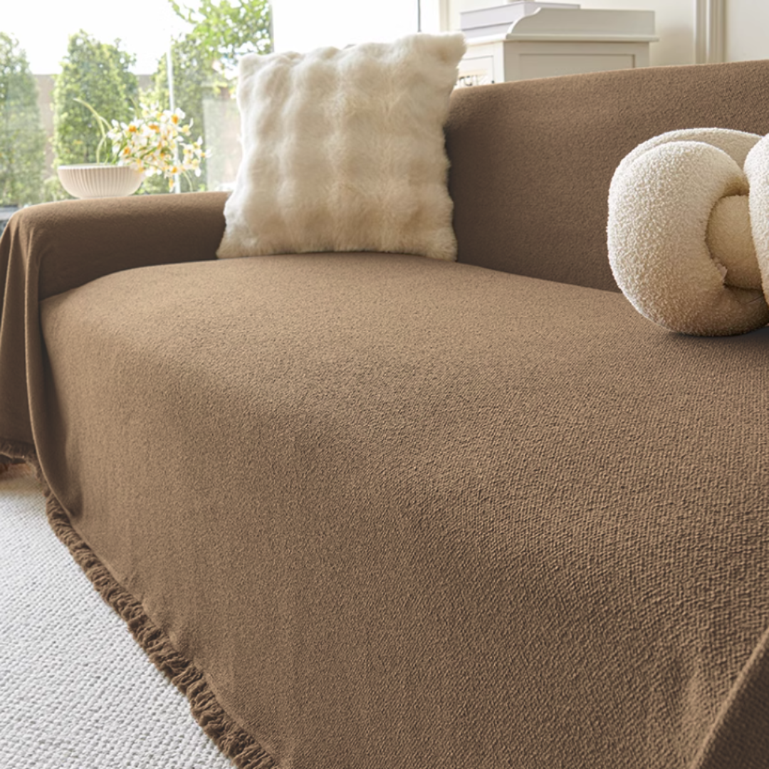 ソファ全体をやさしく包み込むようにフィットし、見た目も肌触りも心地よい一枚。