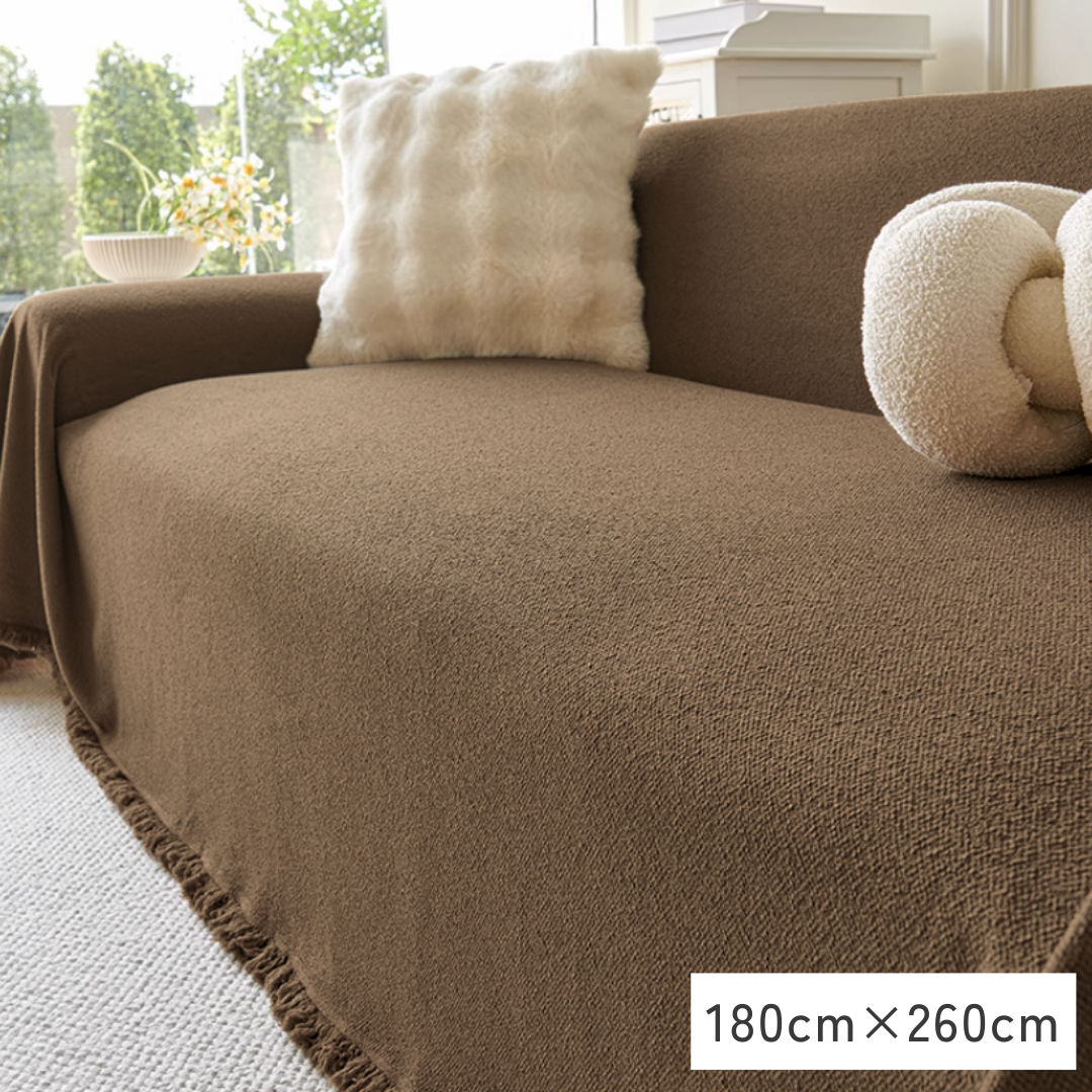 ソファ全体をやさしく包み込むようにフィットし、見た目も肌触りも心地よい一枚。
