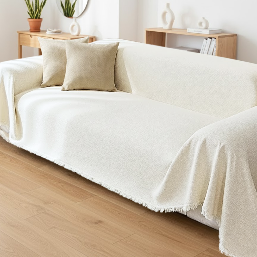 ソファ全体をやさしく包み込むようにフィットし、見た目も肌触りも心地よい一枚。