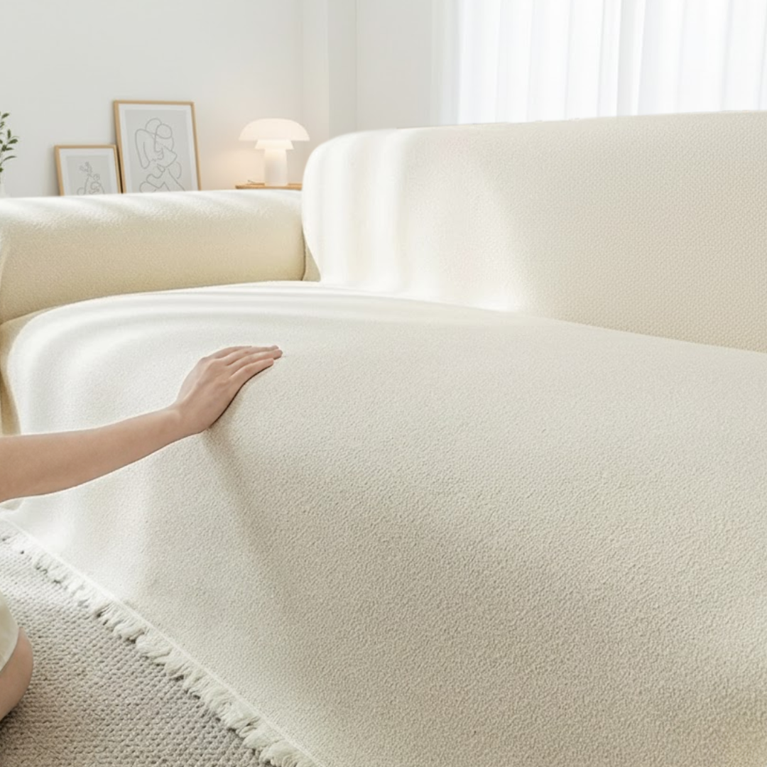 ふんわりとしたテディタッチの質感が魅力のシンプルなソファカバー。