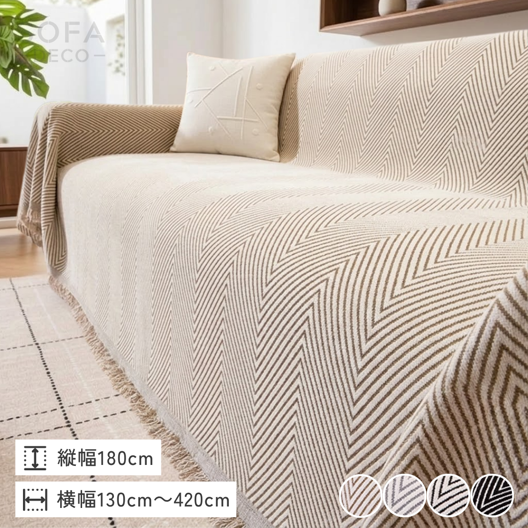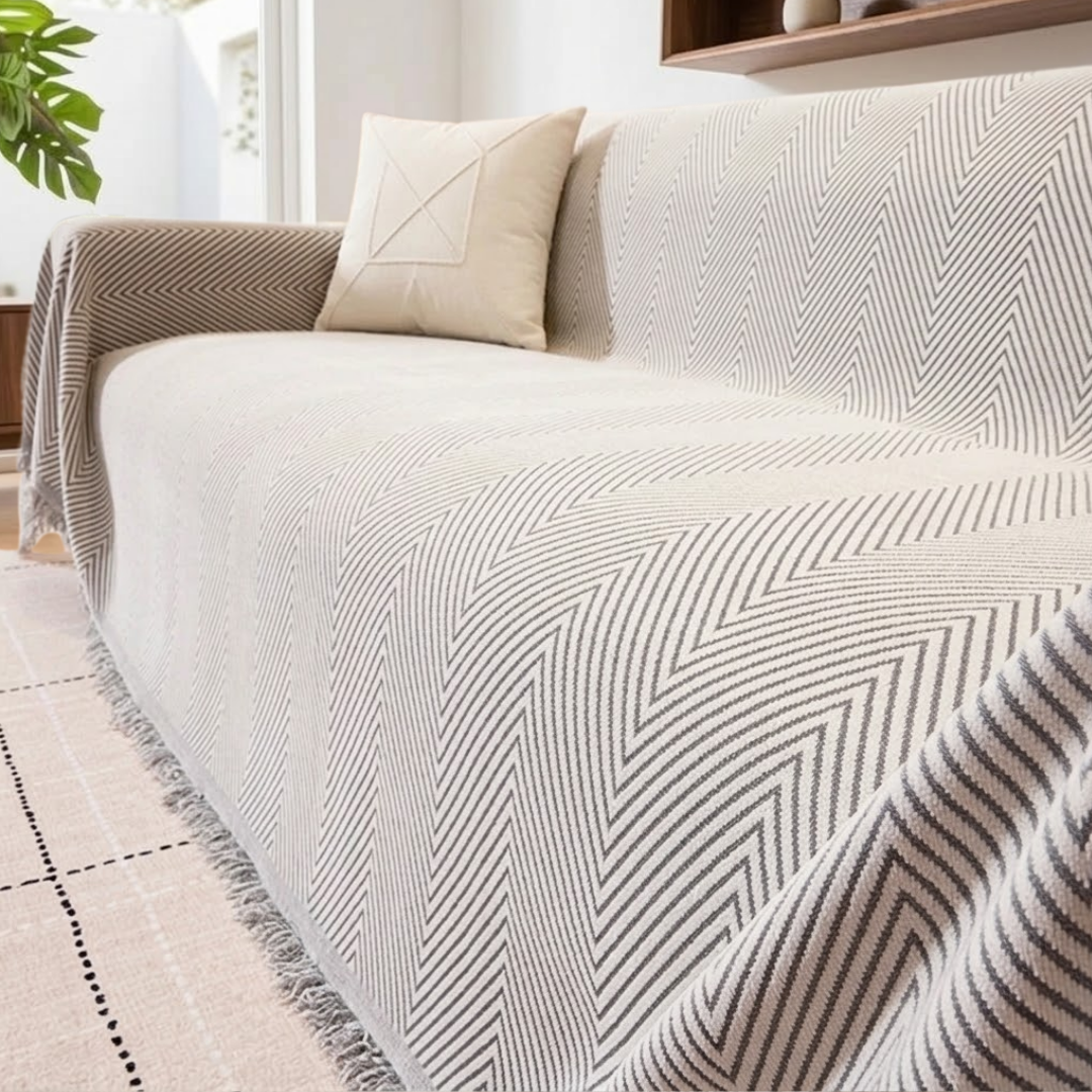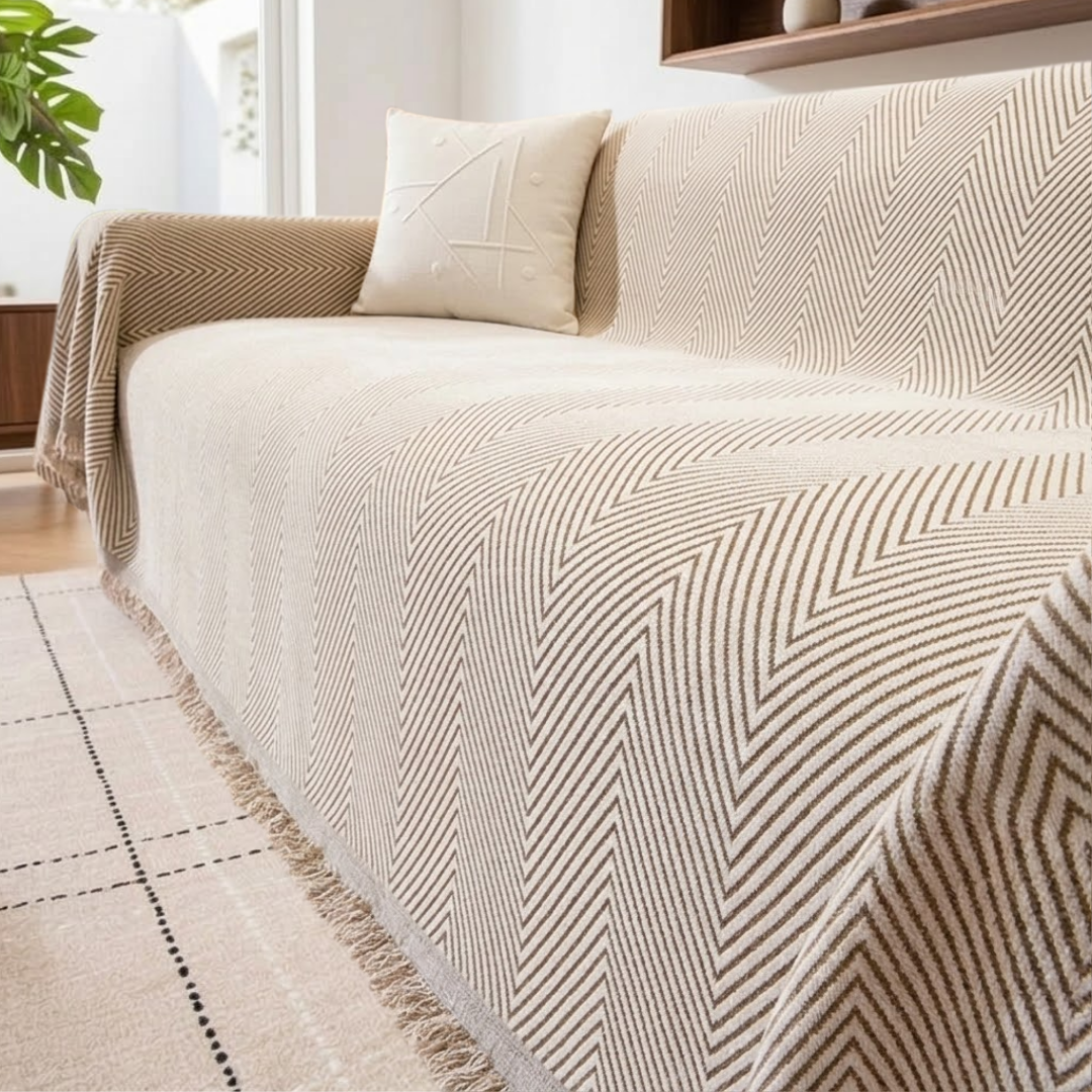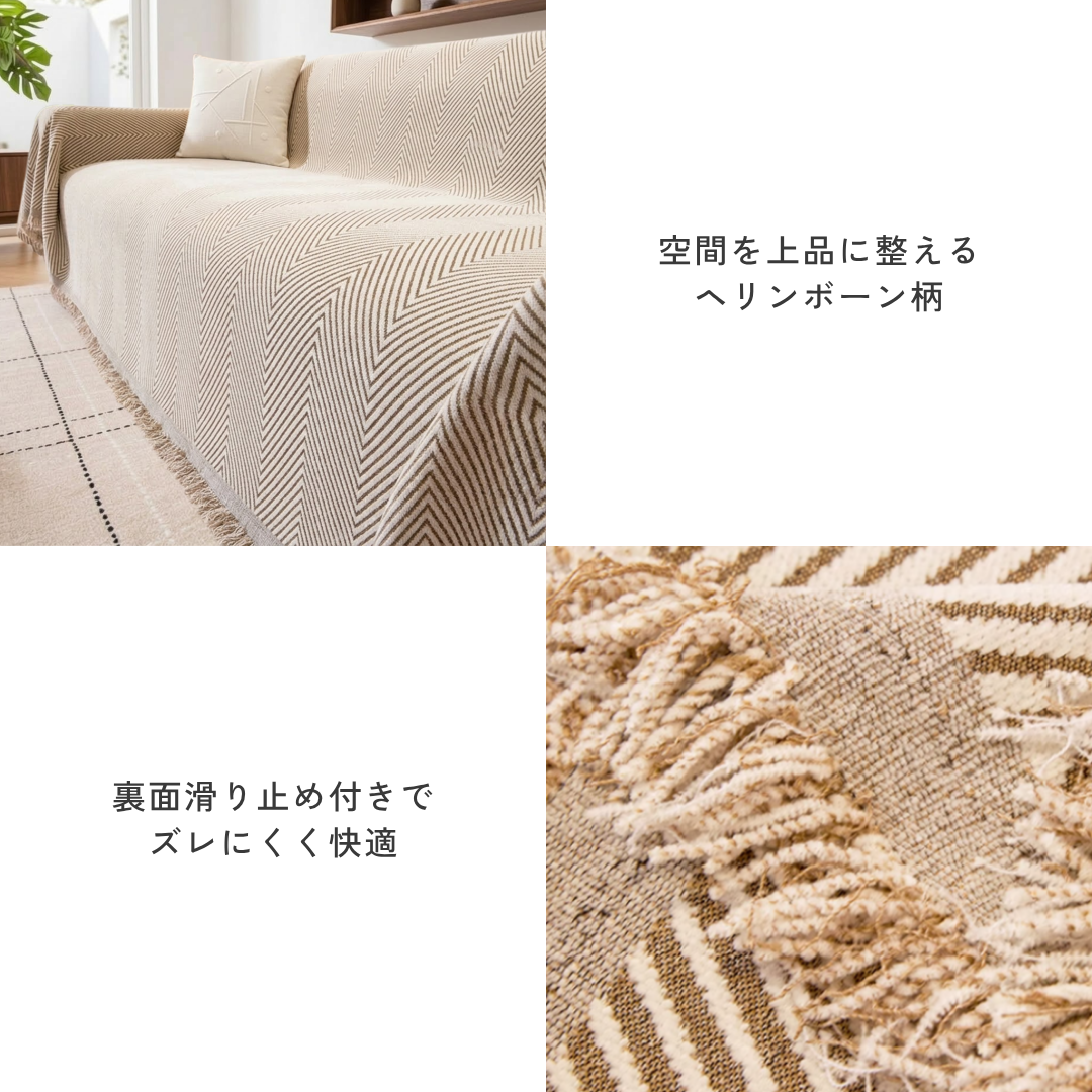 繊細なヘリンボーン柄が描く、洗練されたモダンスタイルのソファカバー。