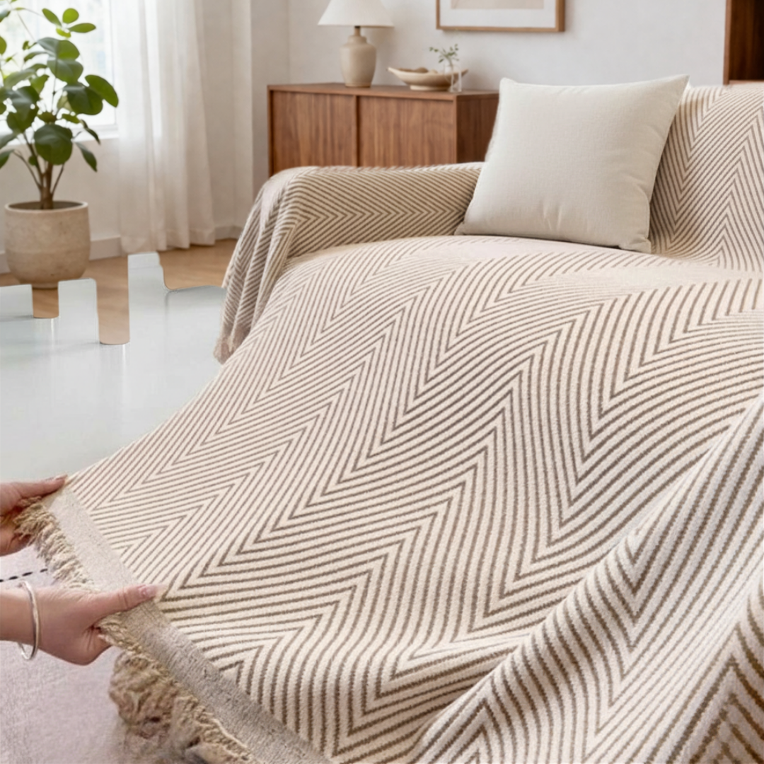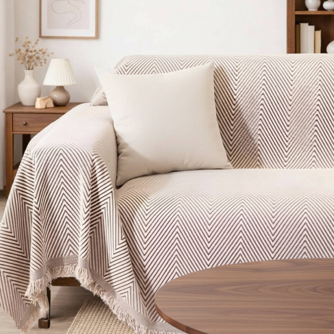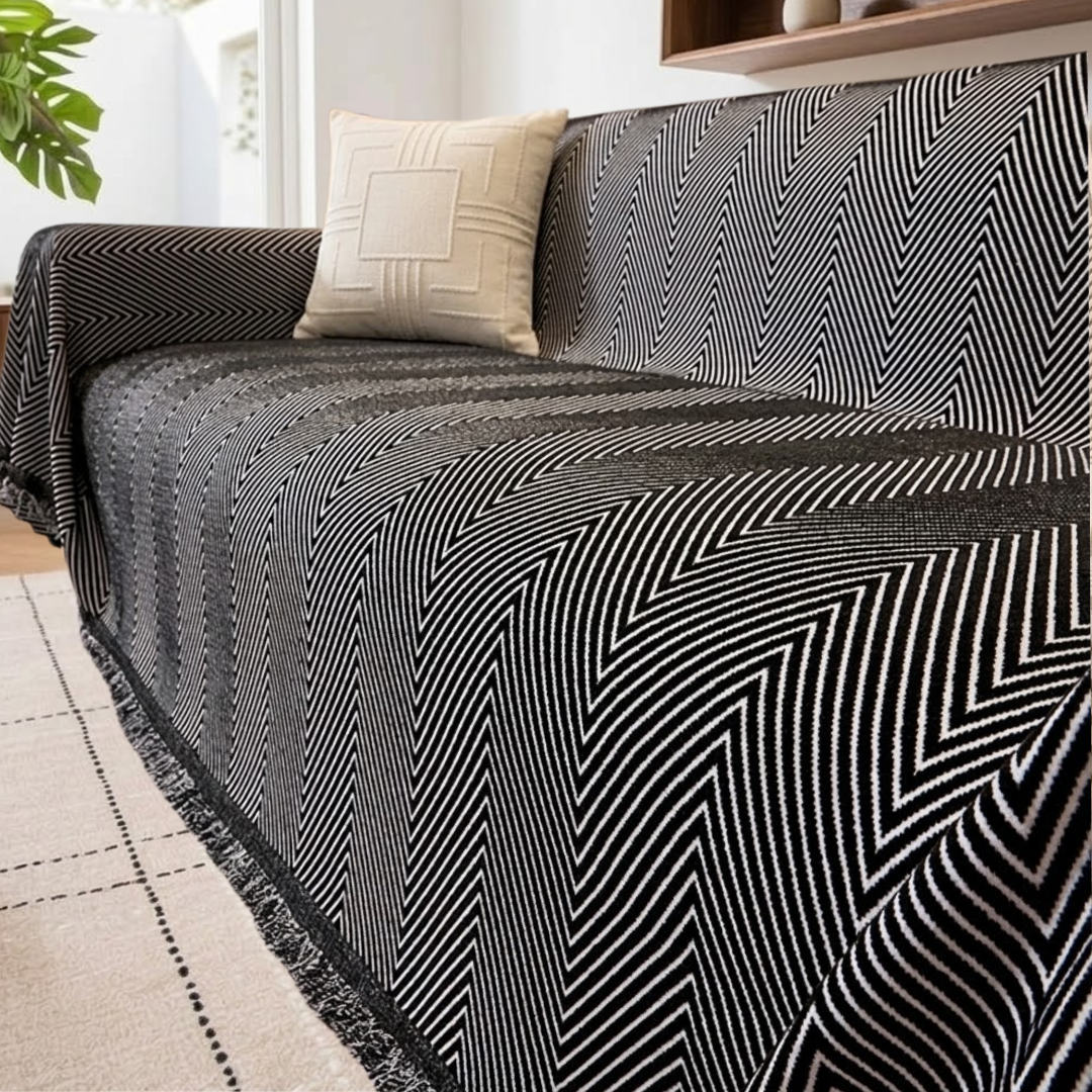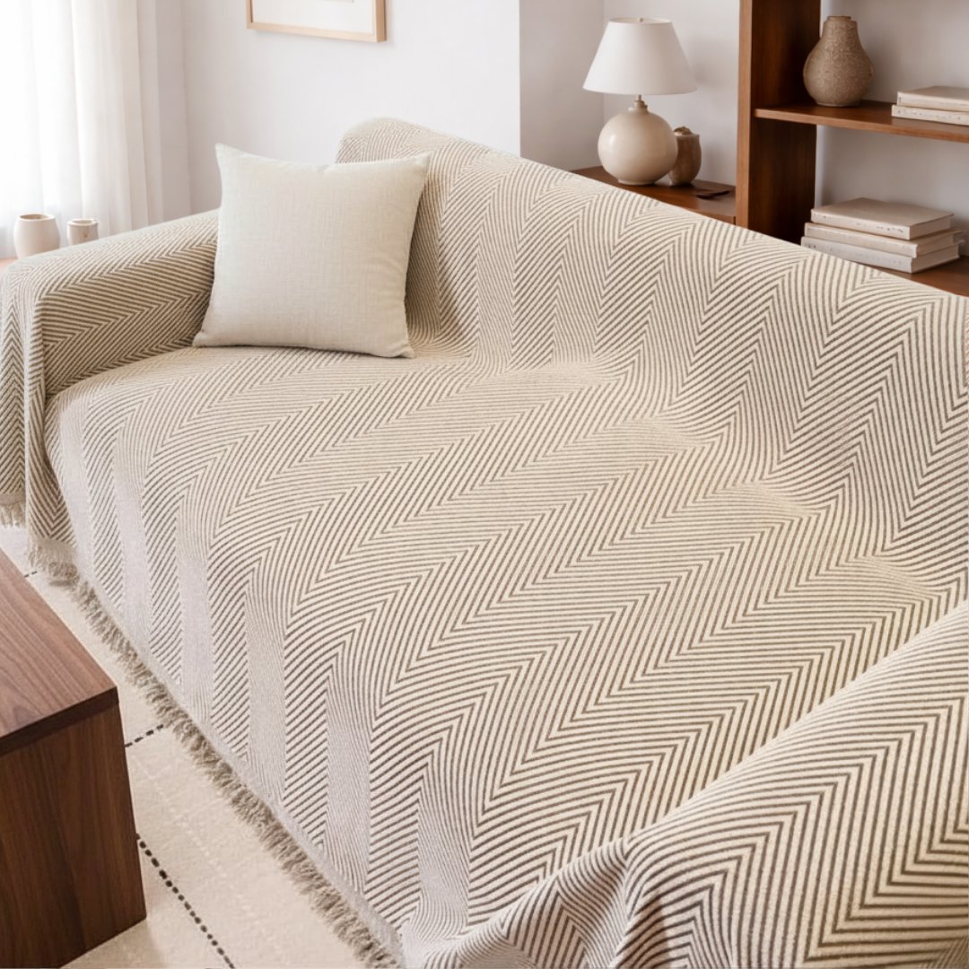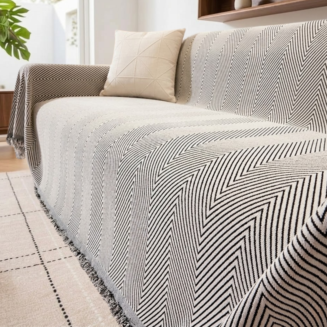 繊細なヘリンボーン柄が描く、洗練されたモダンスタイルのソファカバー。