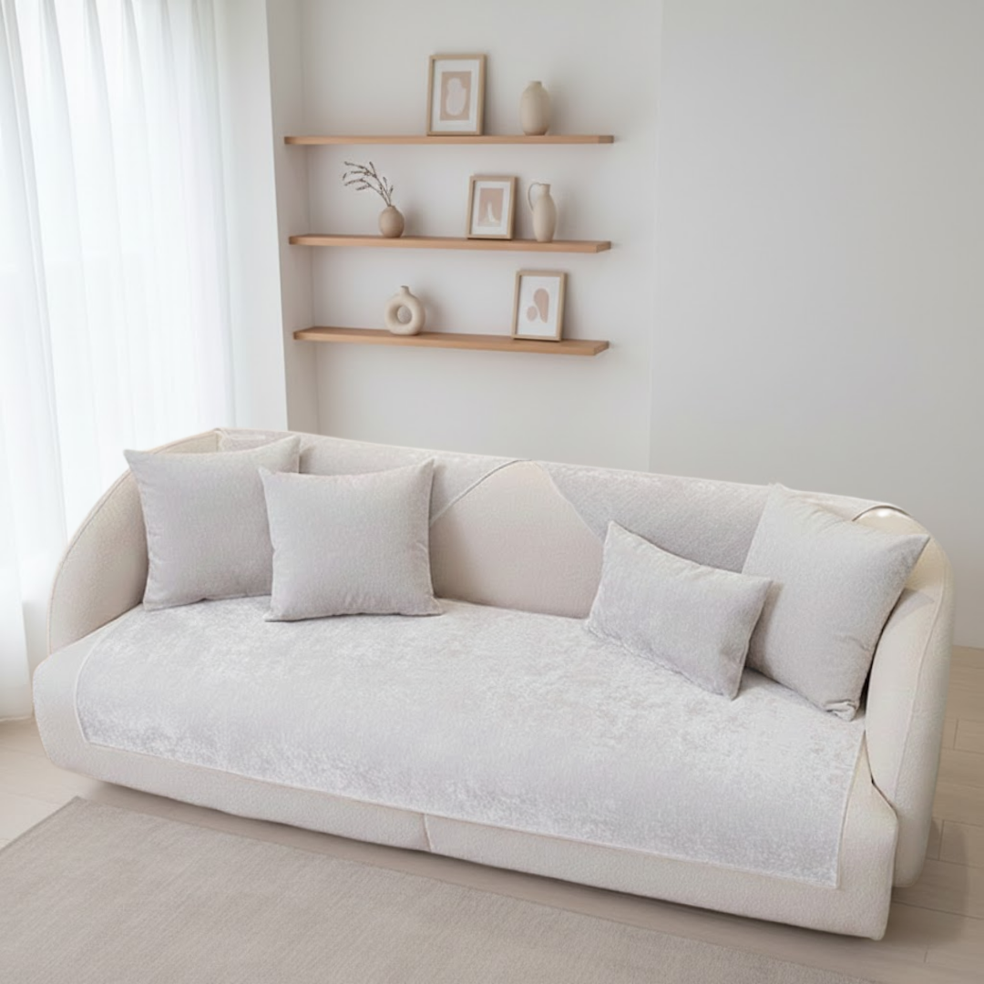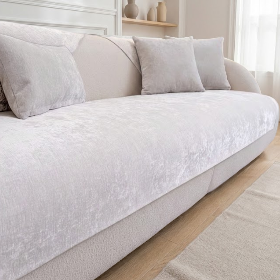 やわらかな光沢と上品な質感が印象的な、カスタムタイプのソファカバー。
