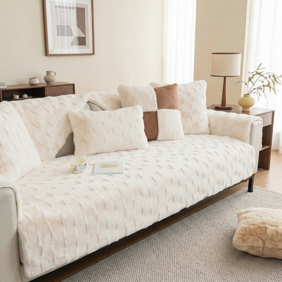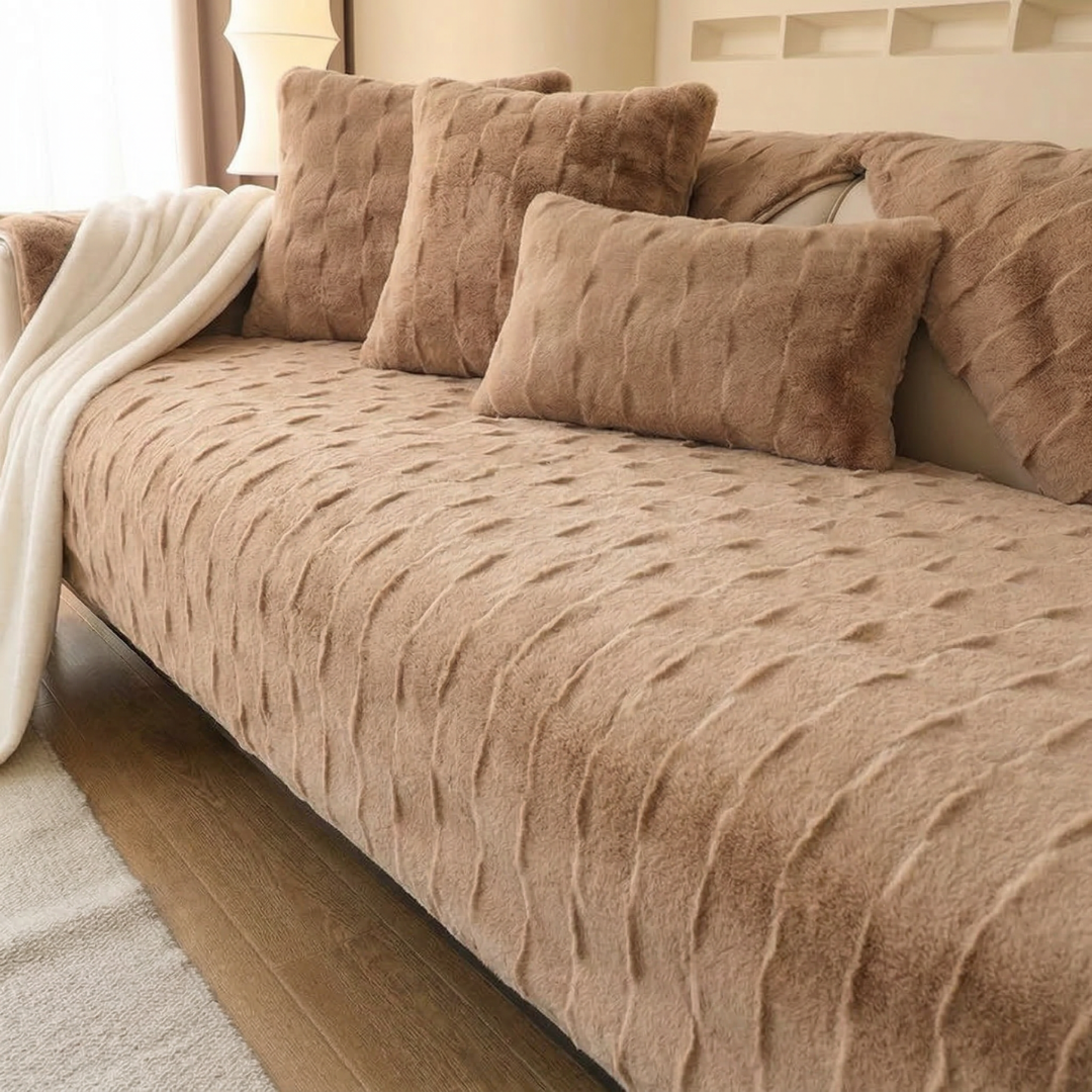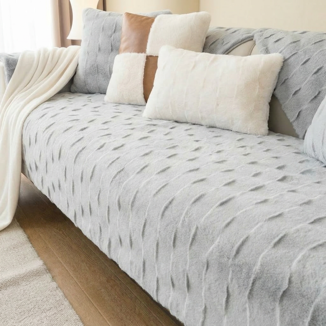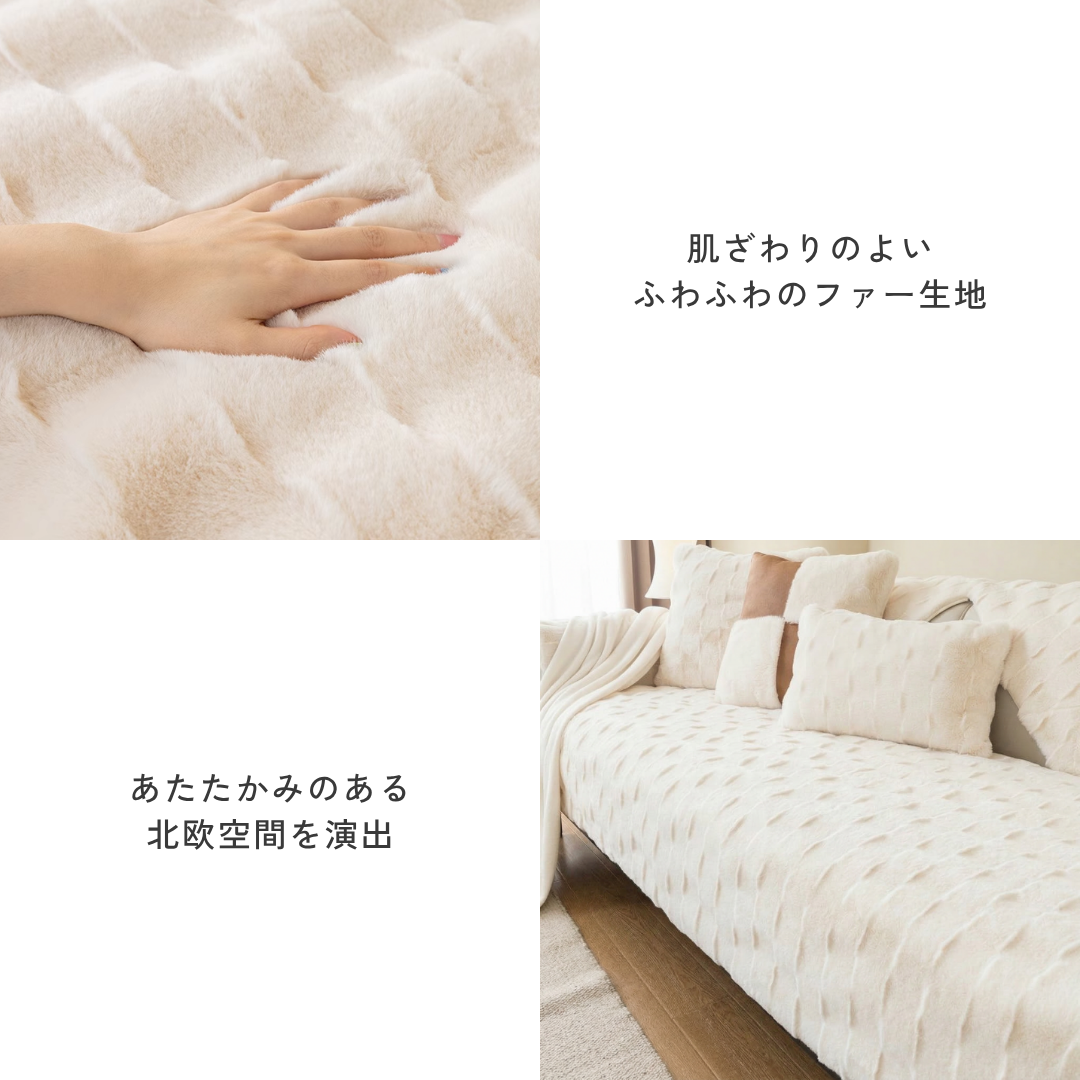 ふんわりとした起毛感が心地よい、カスタムタイプのソファカバー。