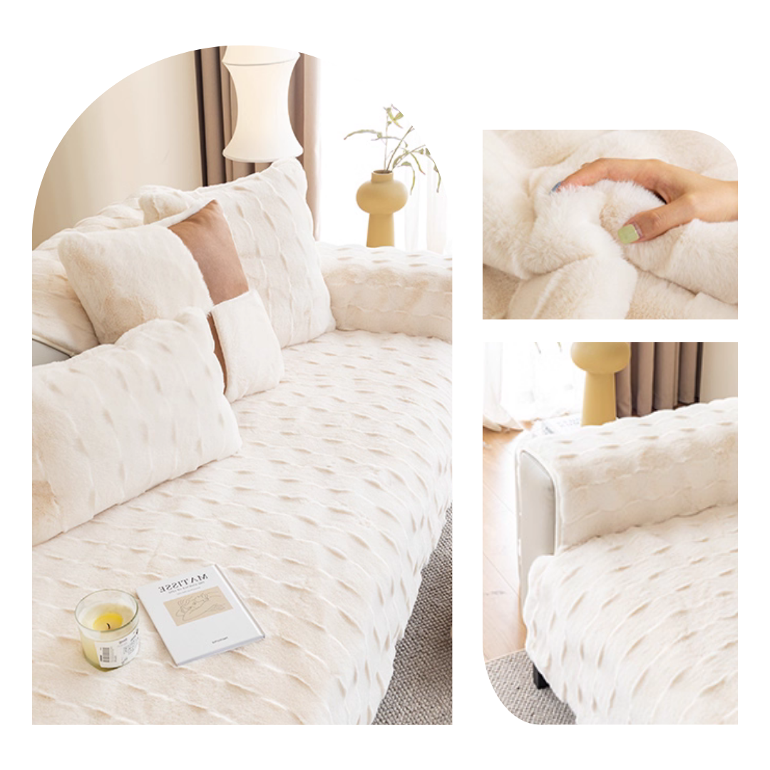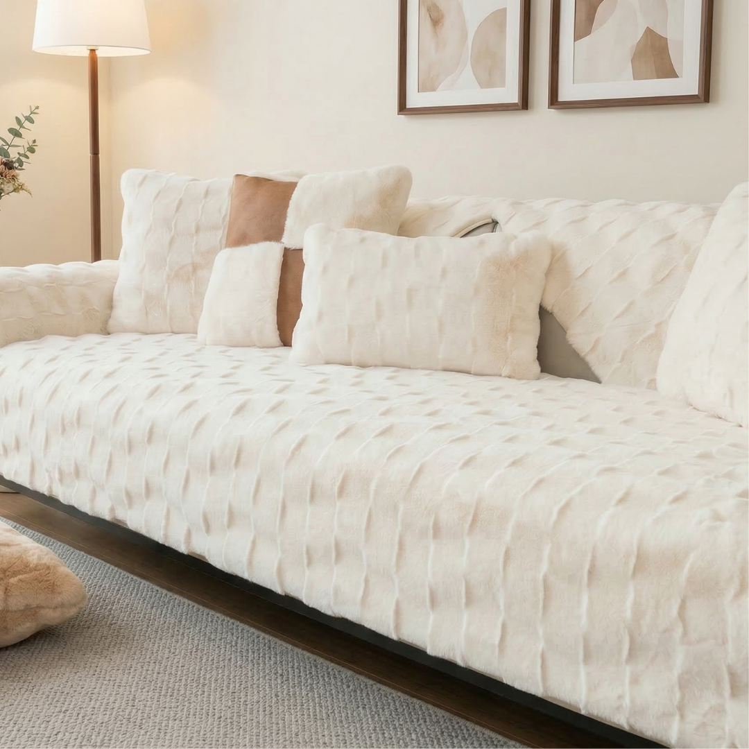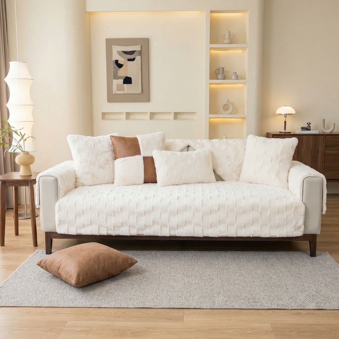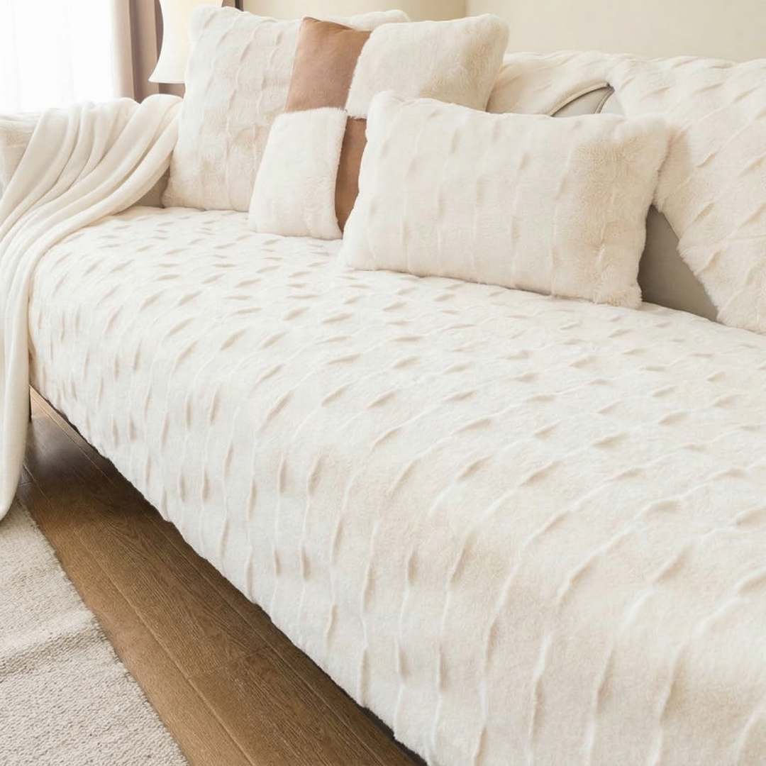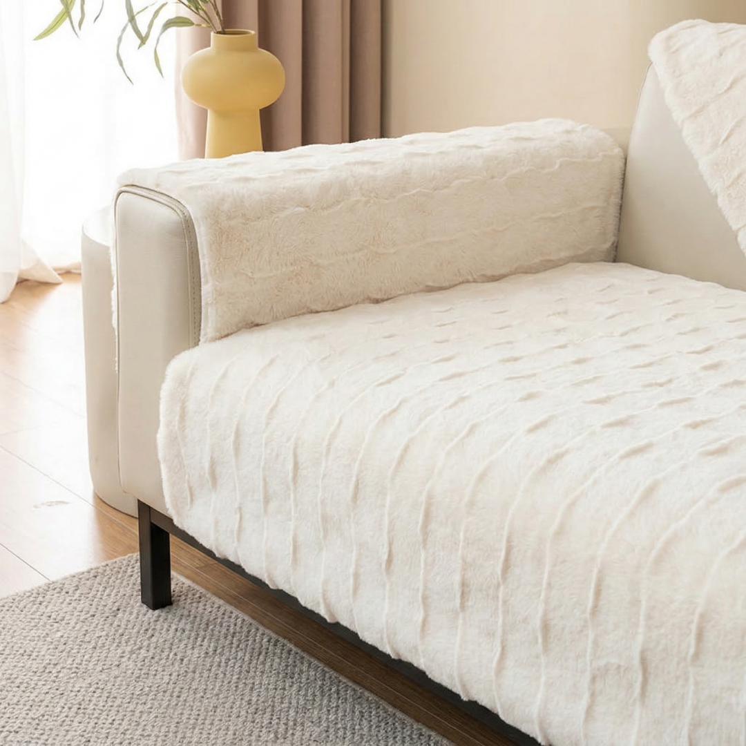 ふんわりとした起毛感が心地よい、カスタムタイプのソファカバー。