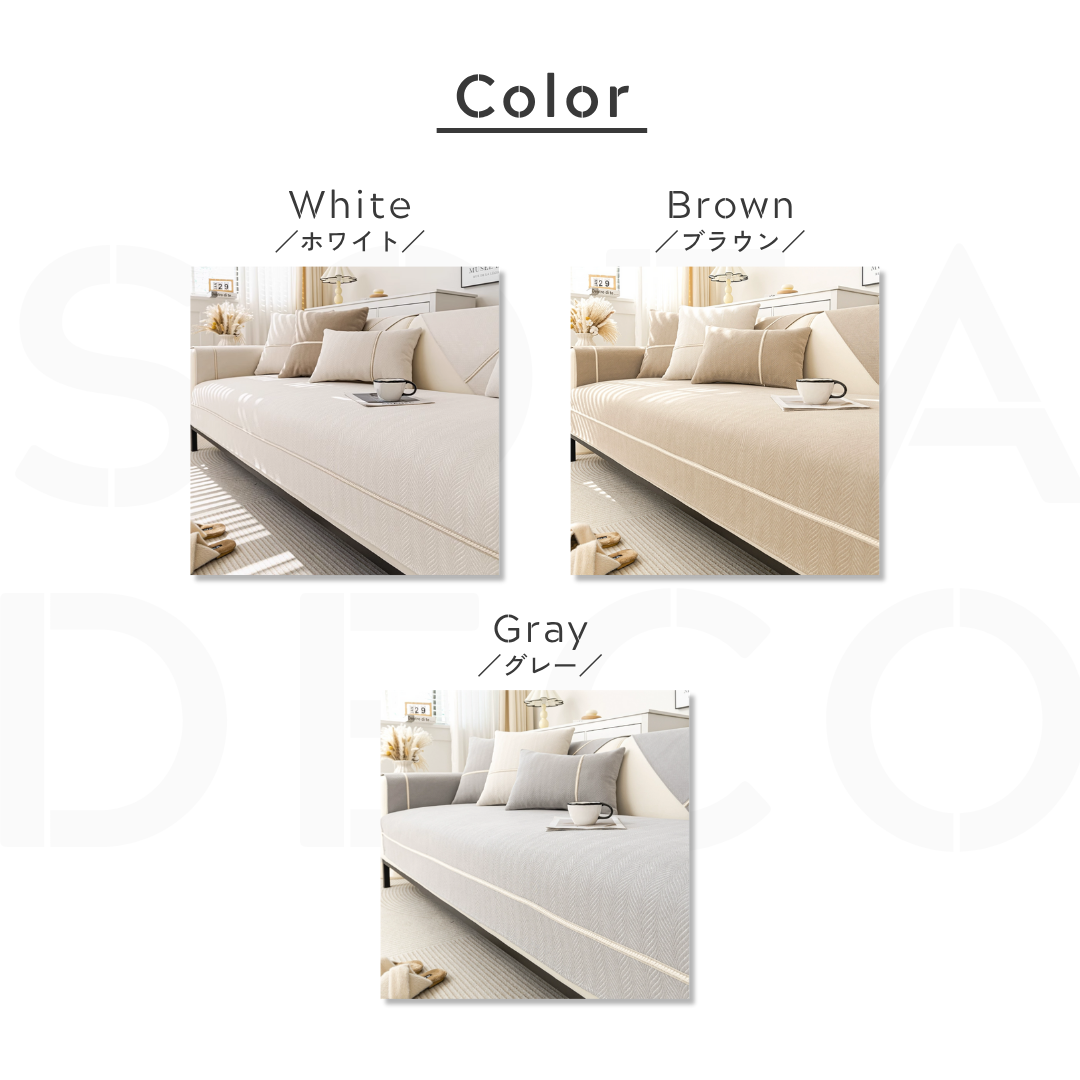 モダンヘリンボーンソファカバー〔滑り止め付き〕