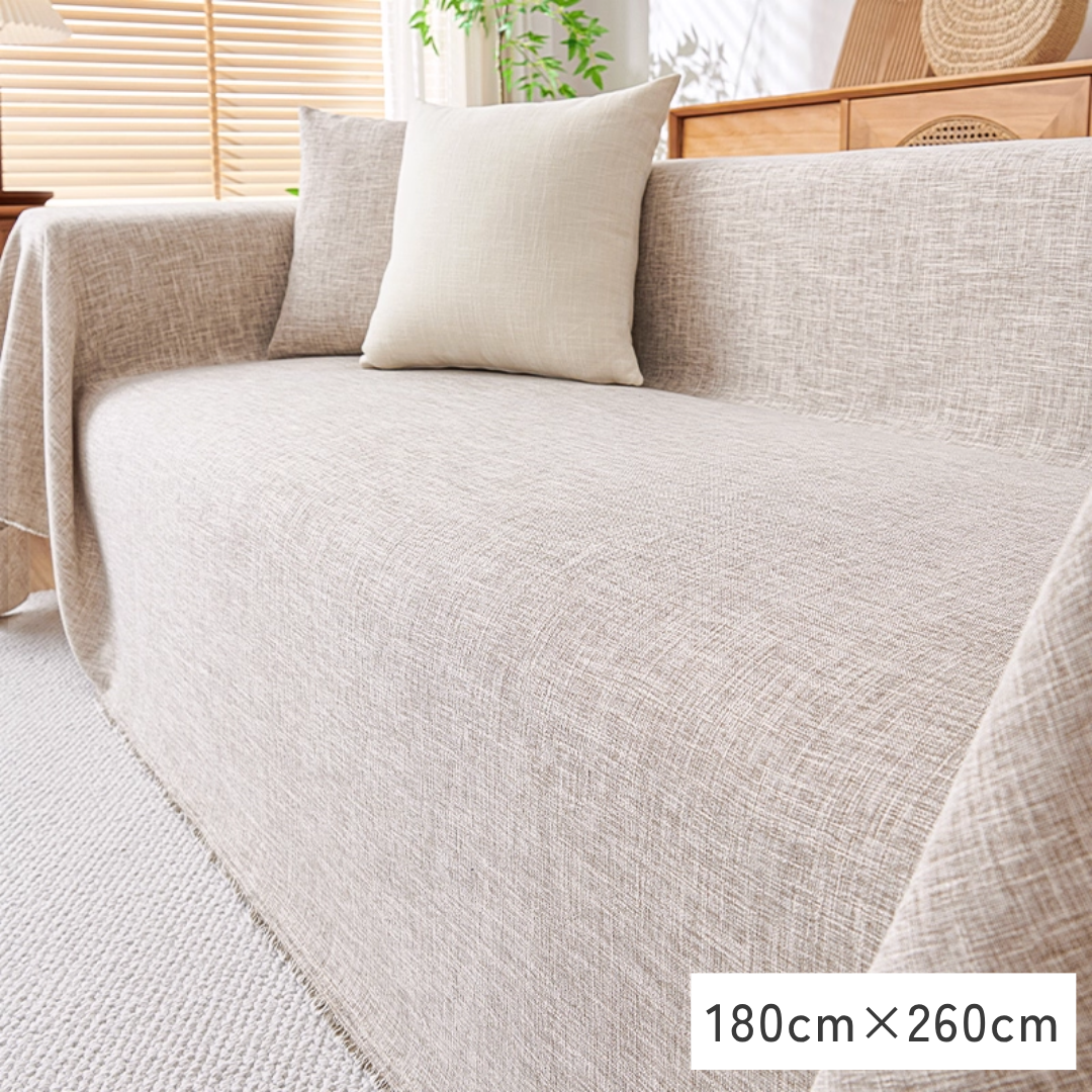 ナチュラルな風合いが魅力の、シンプルなソファカバー。