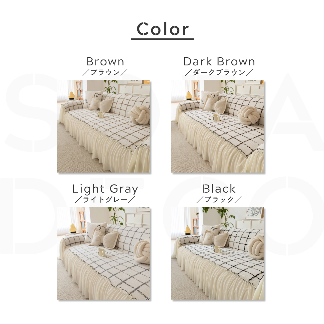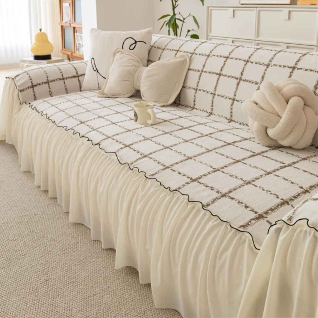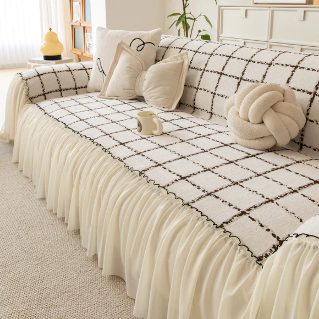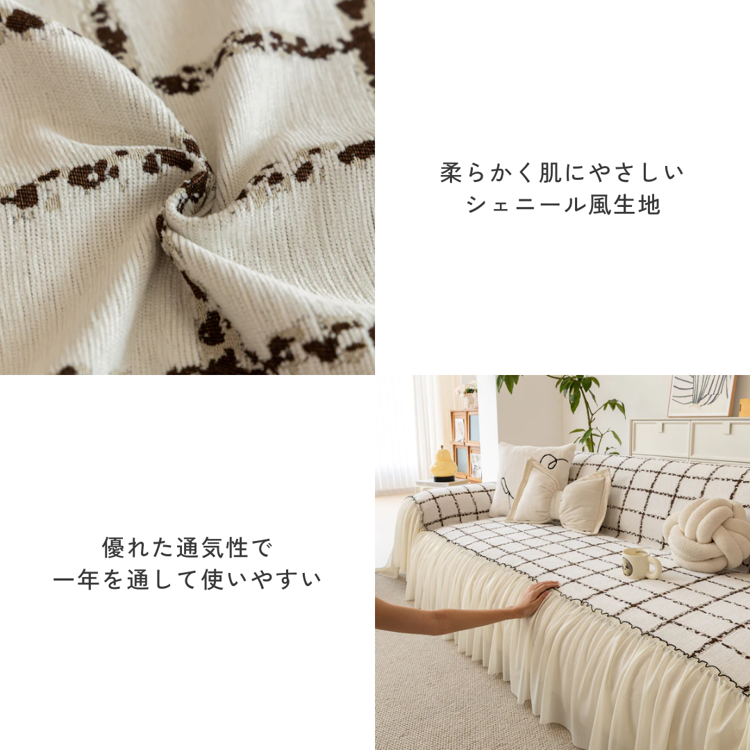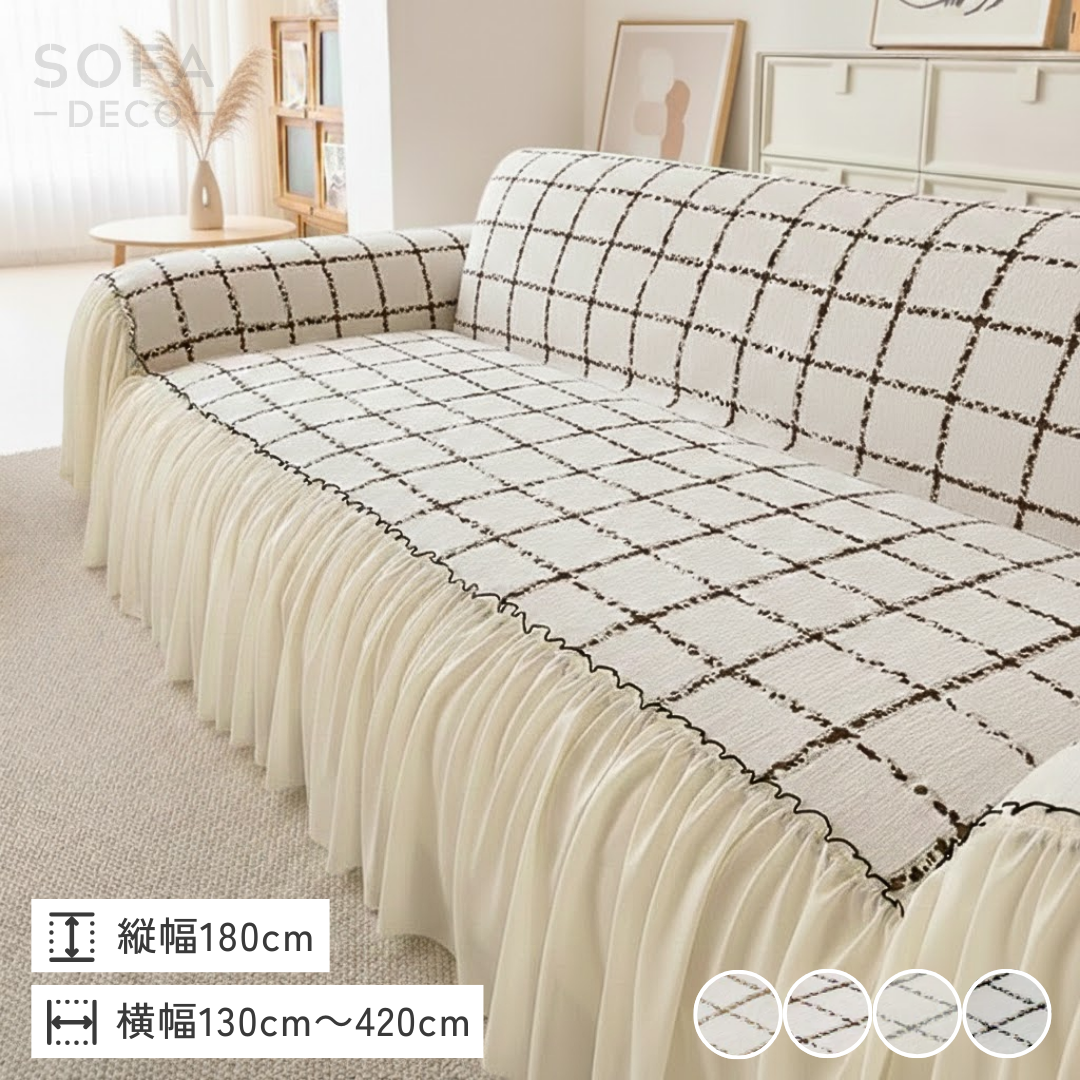 ナチュラルフリルチェックソファカバー