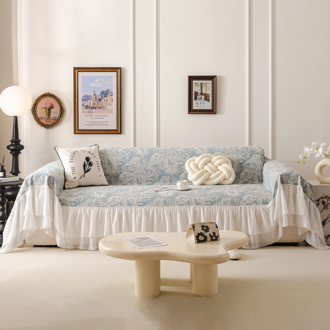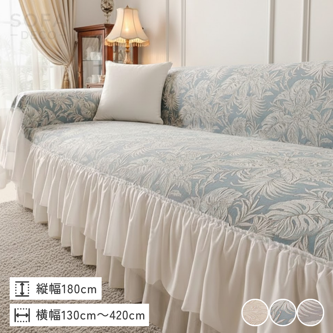 柔らかなジャカード生地に繊細なリーフ柄を織り込み、フレンチシックな雰囲気を漂わせるソファカバー。