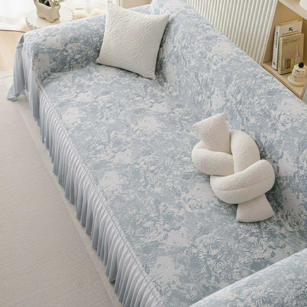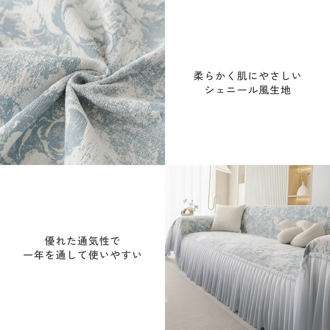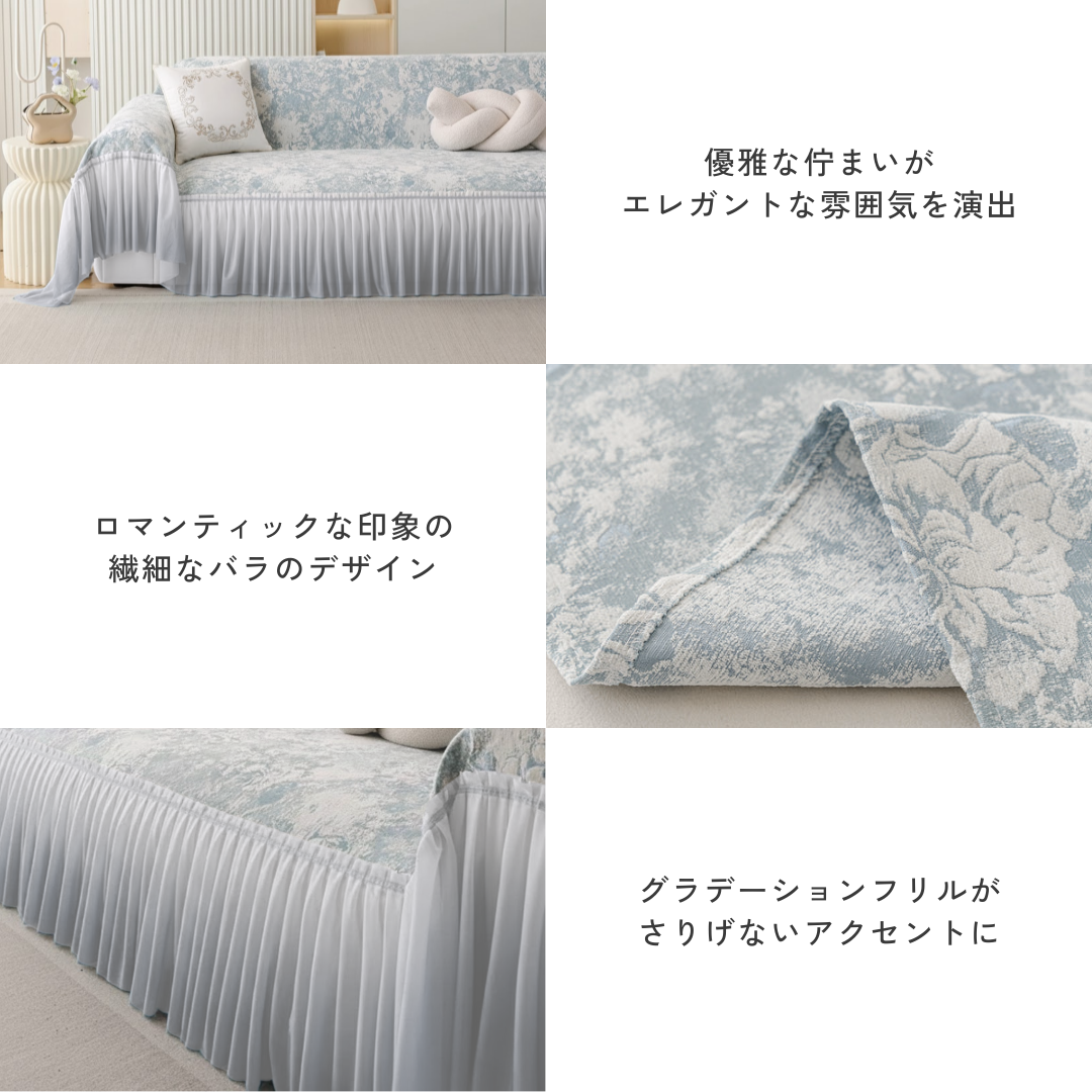 柔らかなジャカード生地に、繊細なローズ柄をあしらったソファカバー。