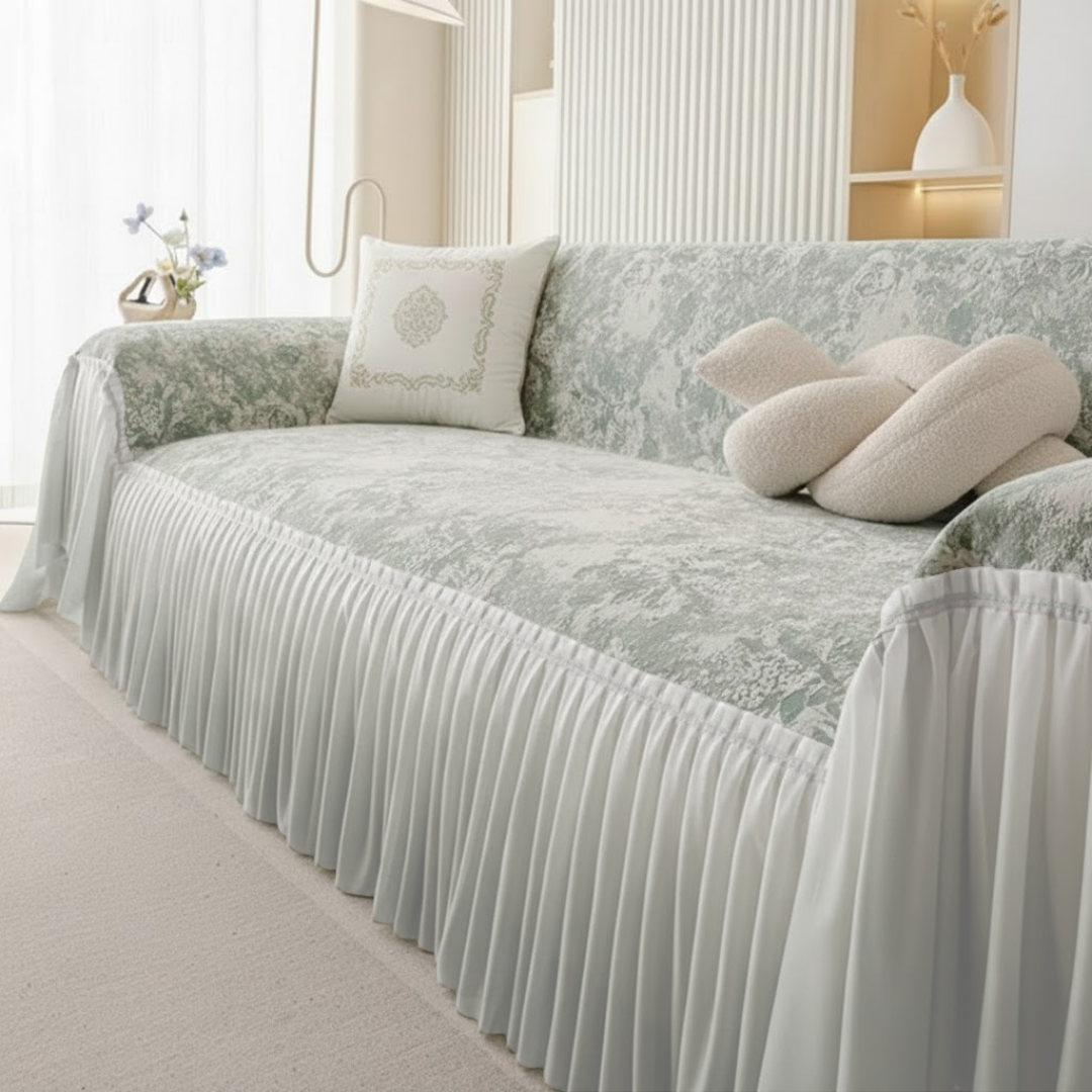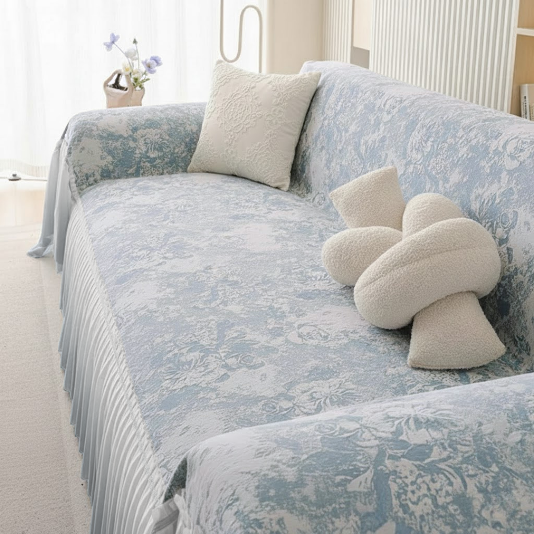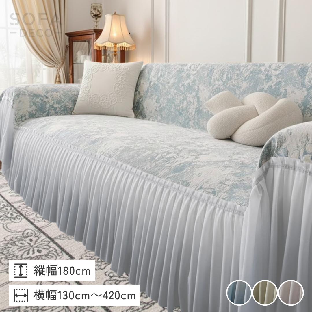 柔らかなジャカード生地に、繊細なローズ柄をあしらったソファカバー。