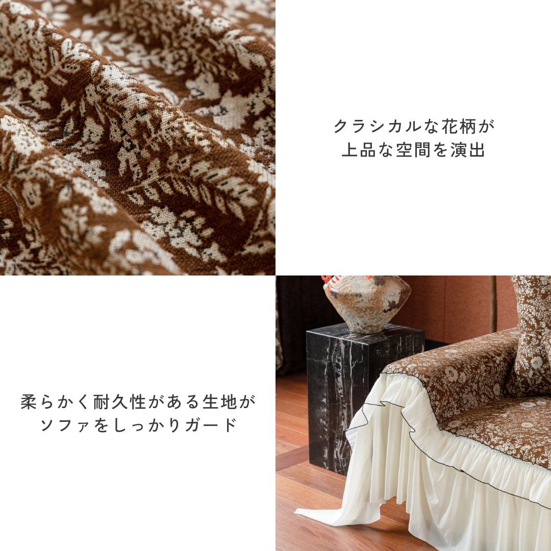 緻密なジャカード織りで描かれたフローラル柄が、ヨーロッパのヴィンテージ感を漂わせるソファカバー。