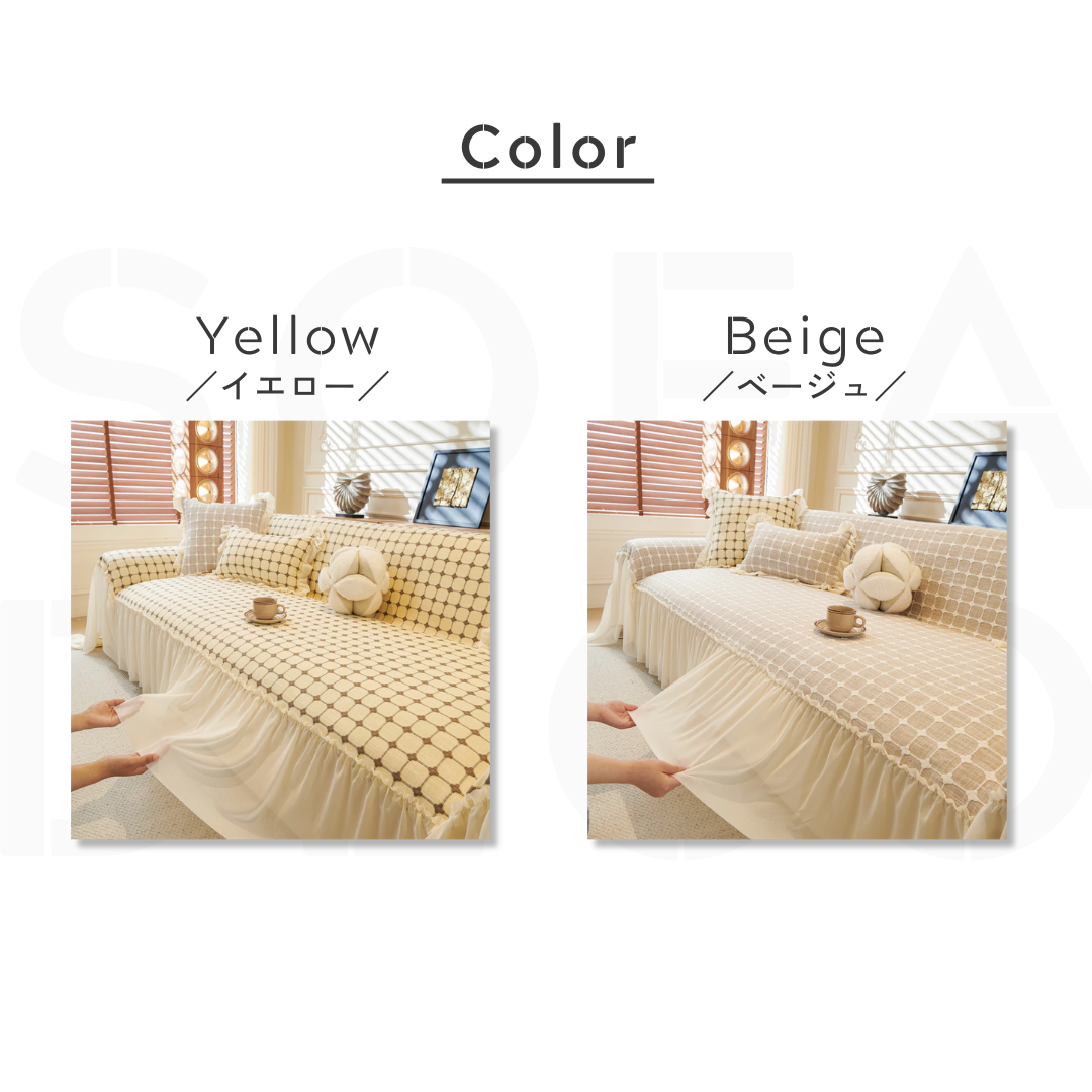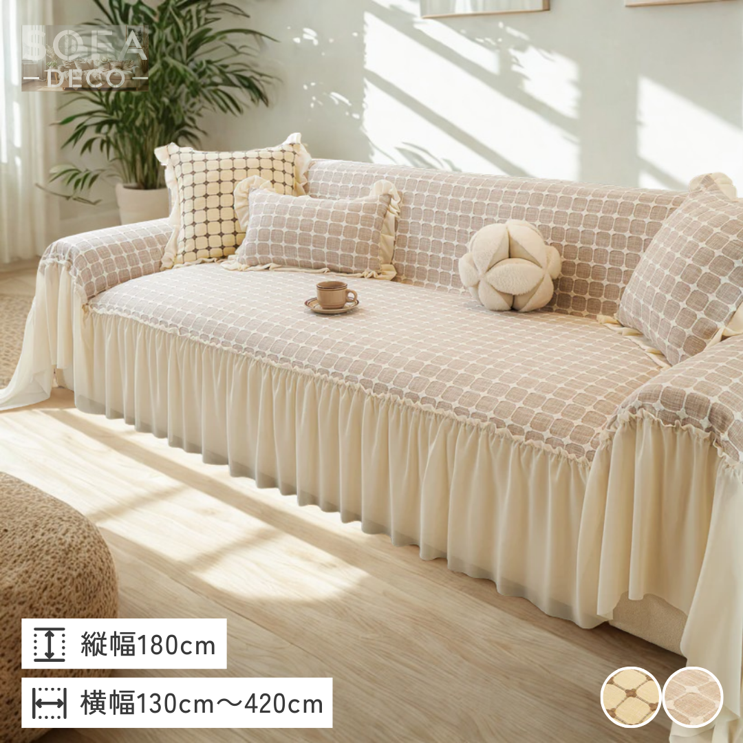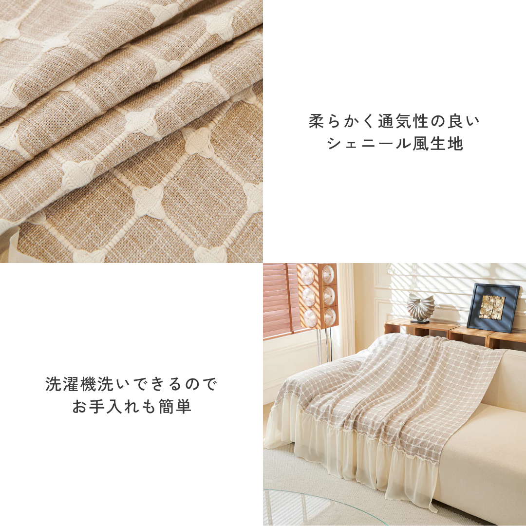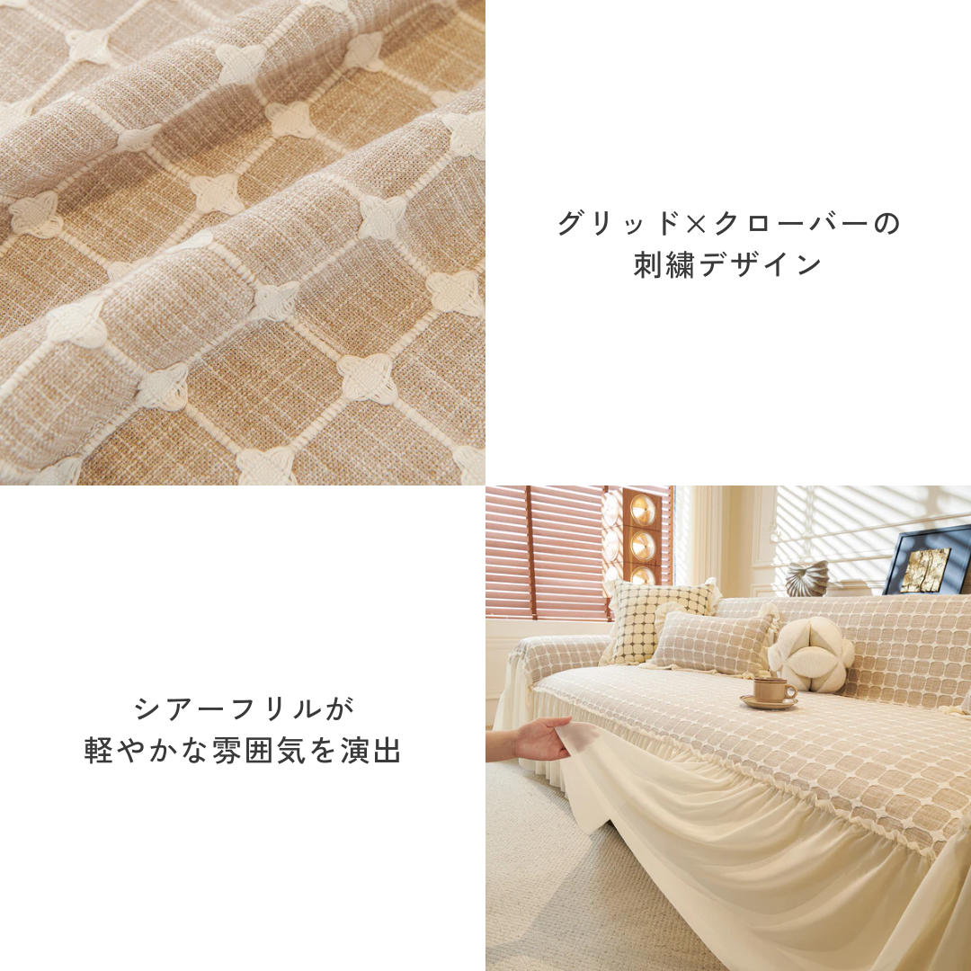上質なシェニール織りにグリッド模様を施した、柔らかさと程よい張り感を兼ね備えたソファカバー。