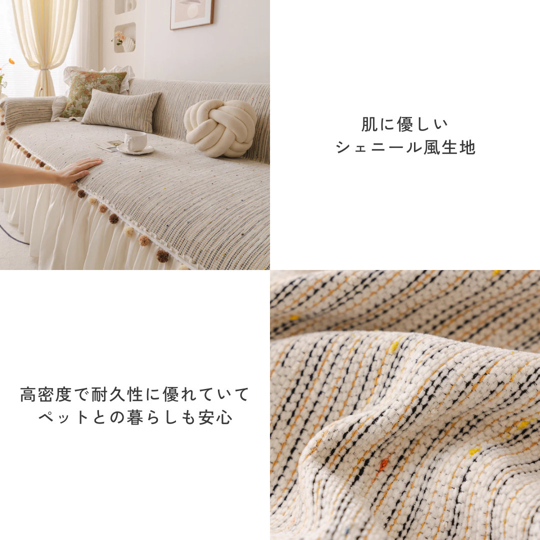 洗濯機で気軽にお手入れでき、ペットのいるご家庭にも安心してお使いいただける一枚です。
