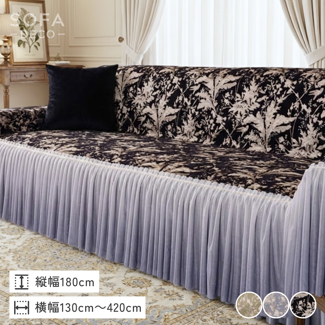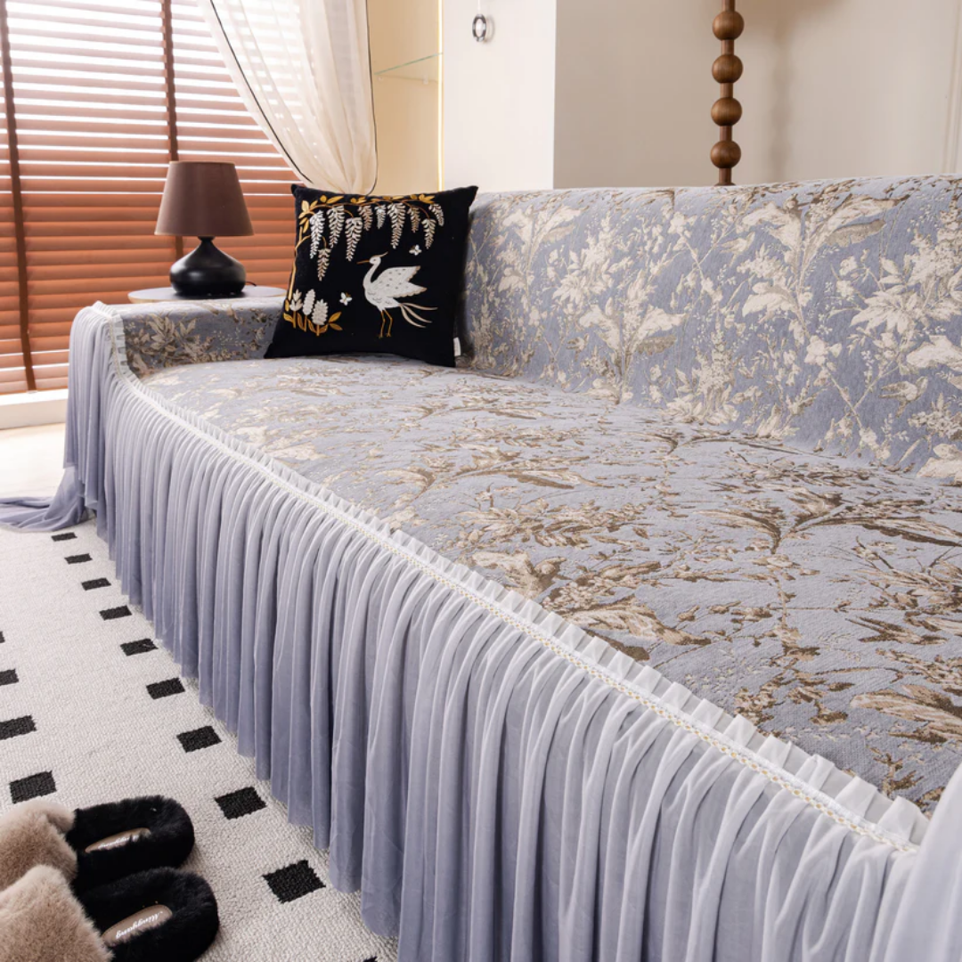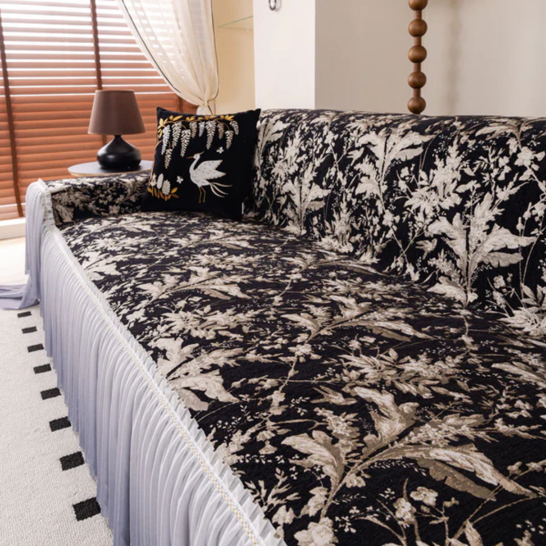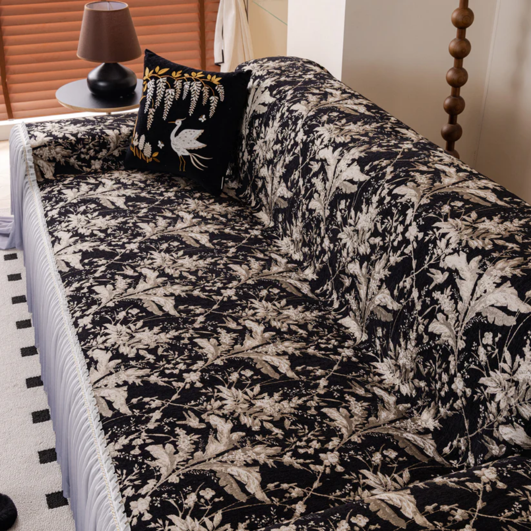 繊細なフローラル模様を高密度のジャカードで表現した、華やかなソファカバー。