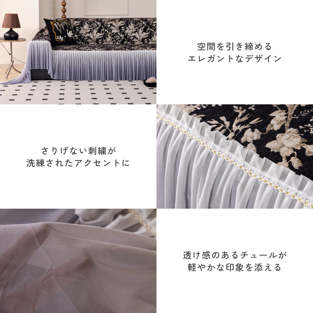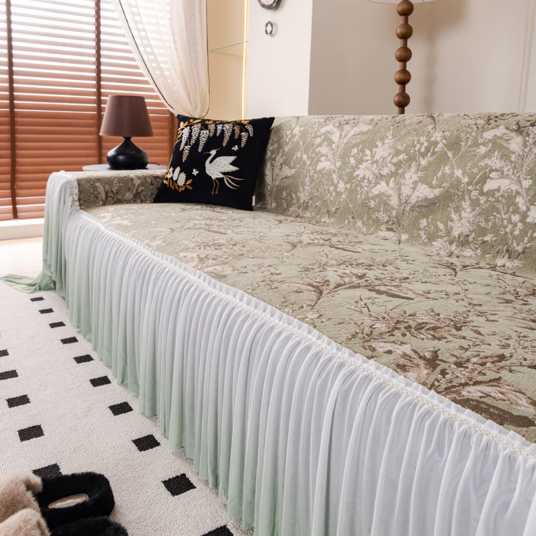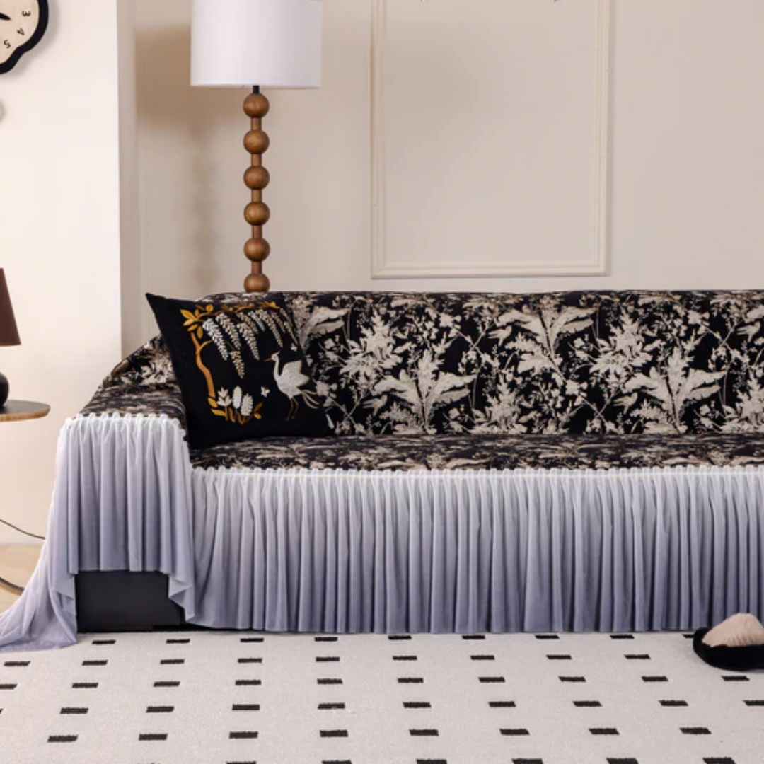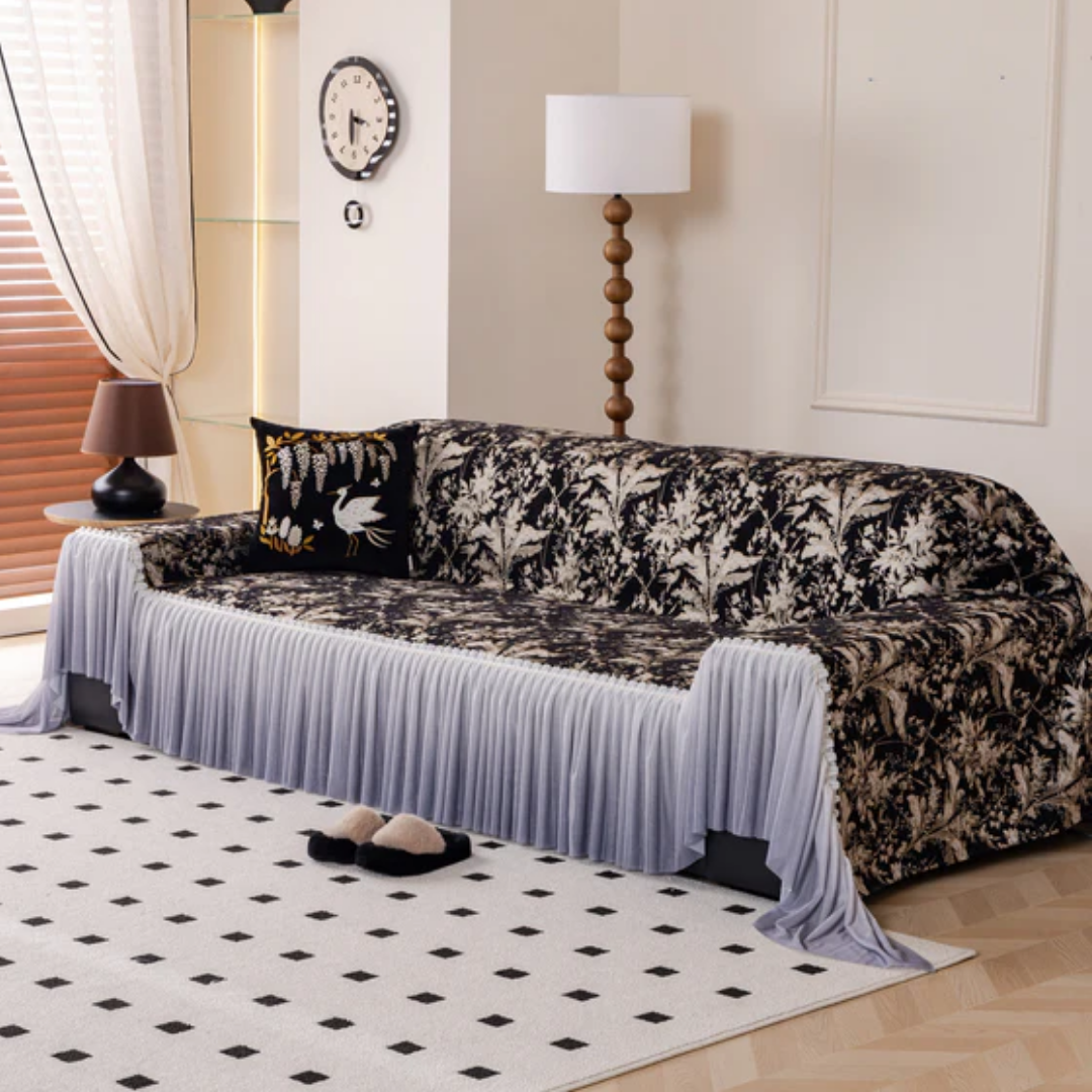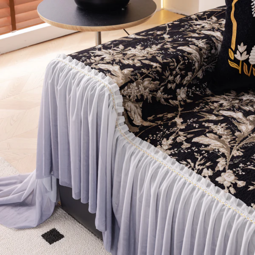 繊細なフローラル模様を高密度のジャカードで表現した、華やかなソファカバー。