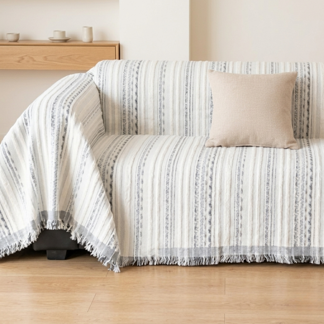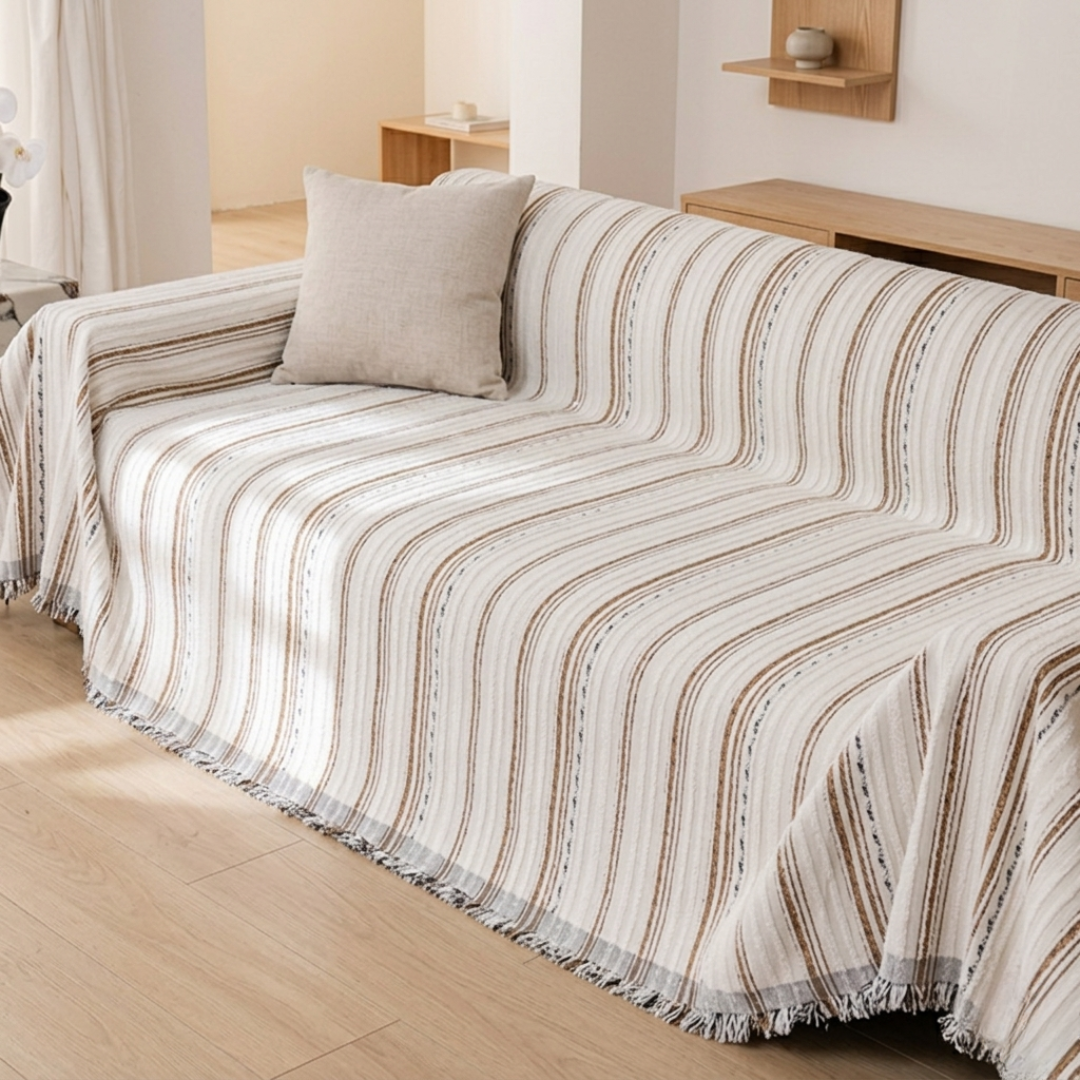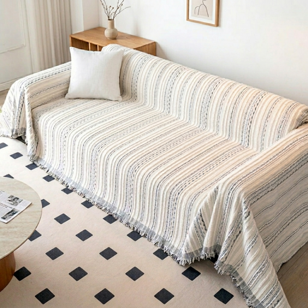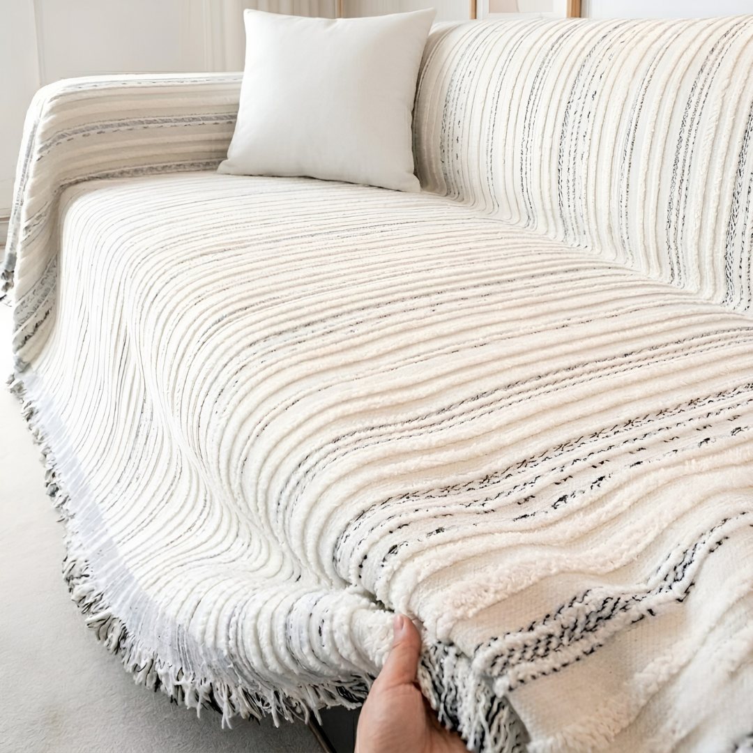 厚みがあり柔らかな生地が生み出す、上質なソファカバー。