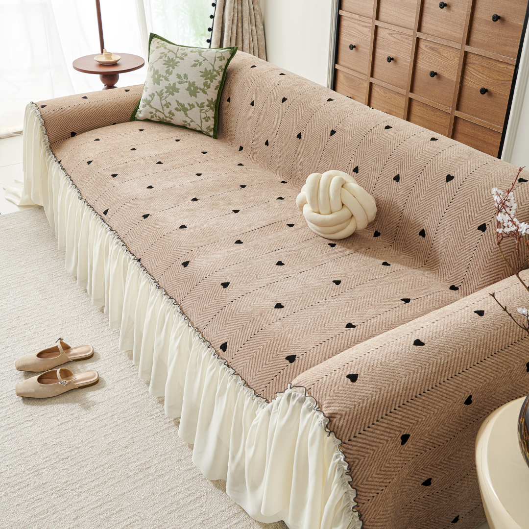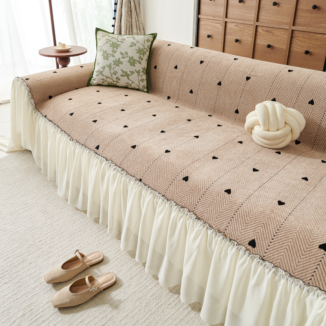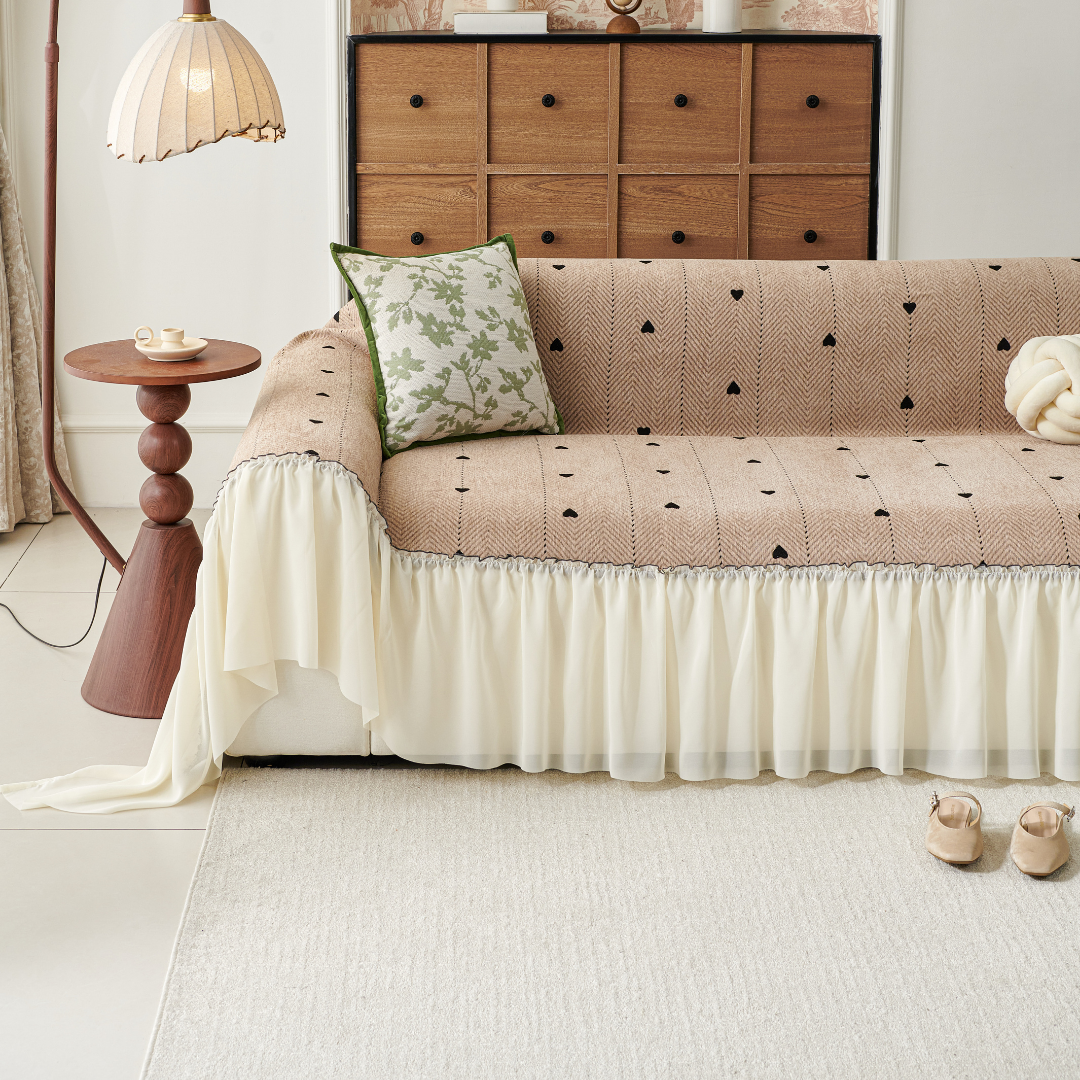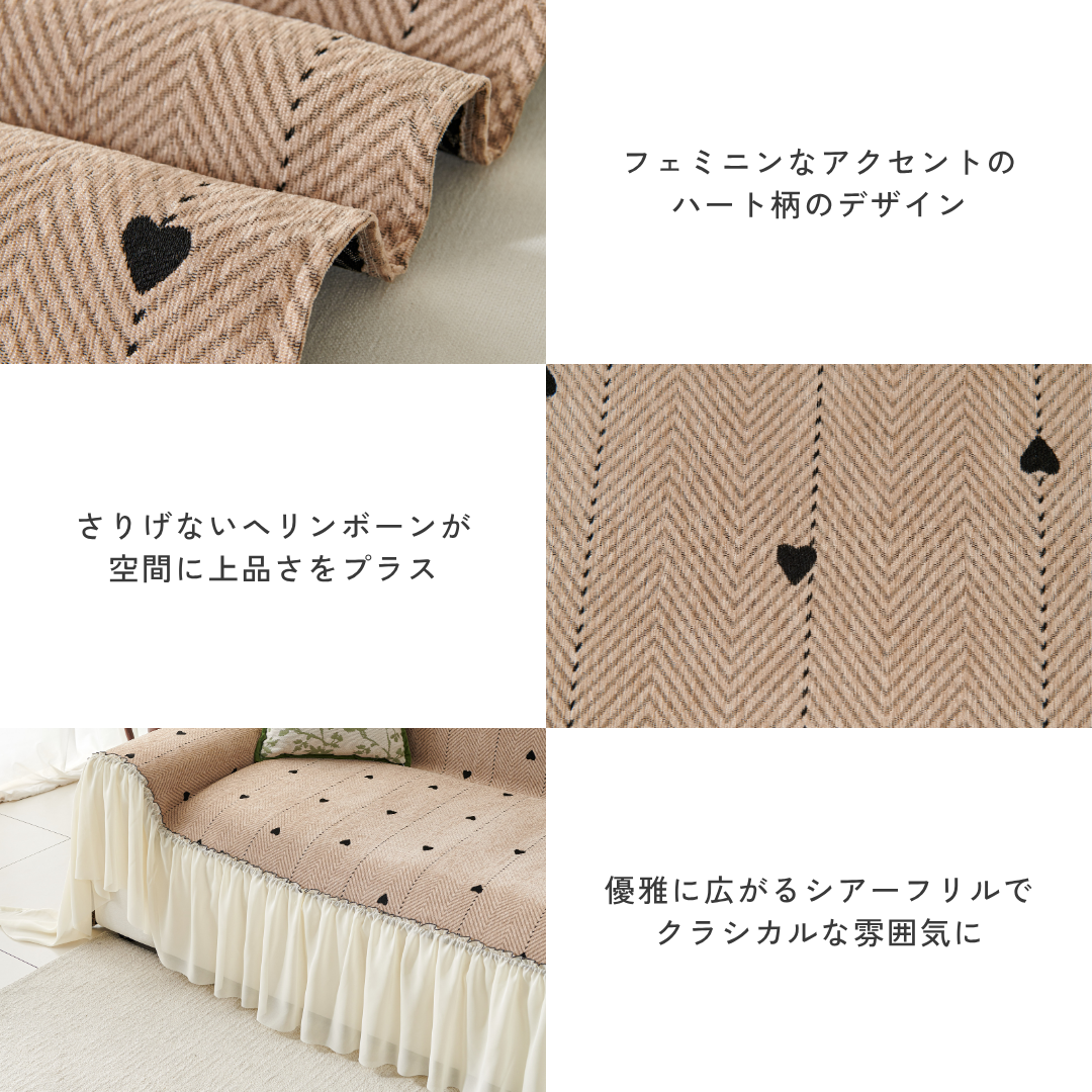 小さなハート柄が可憐に映える、フェミニンテイストのソファカバー。