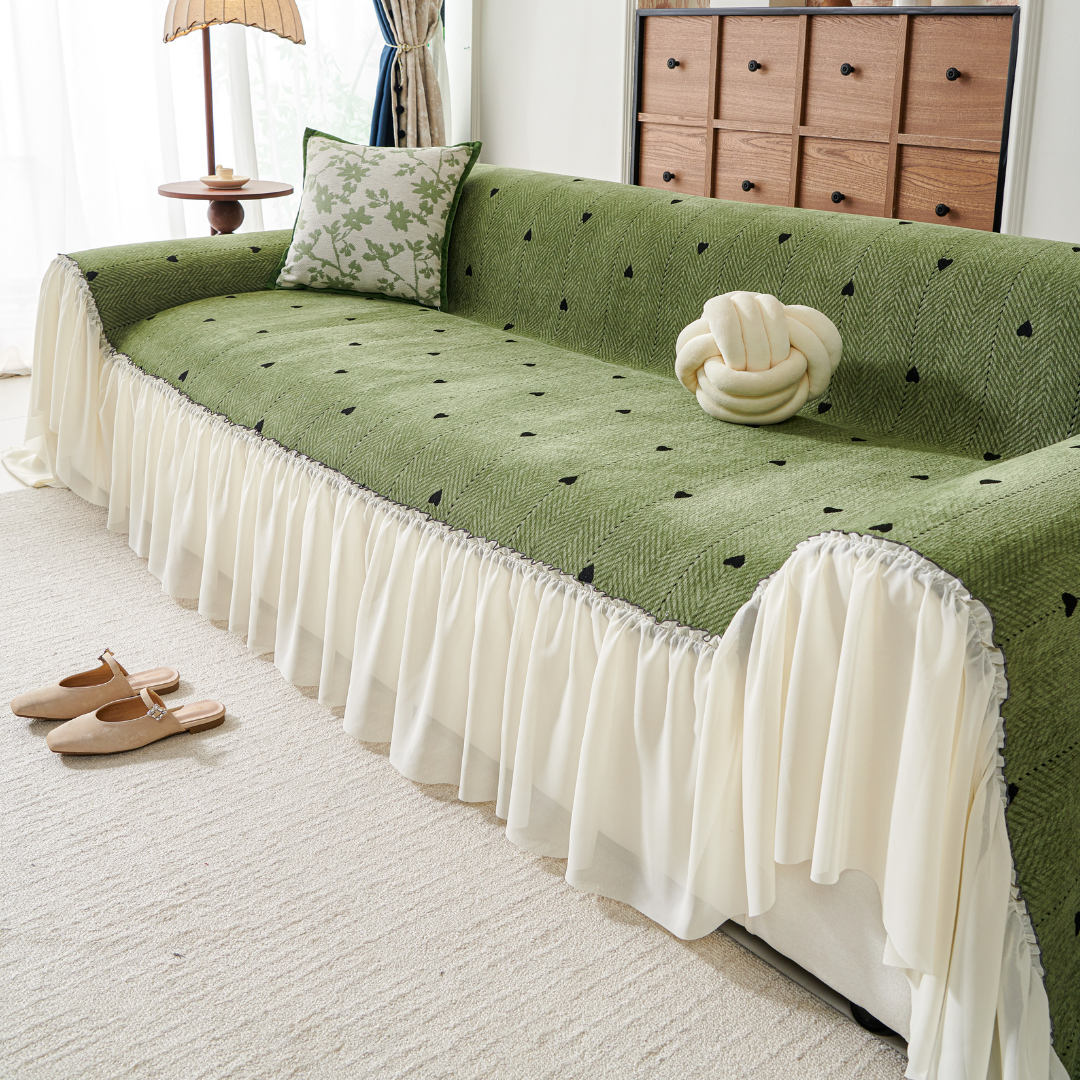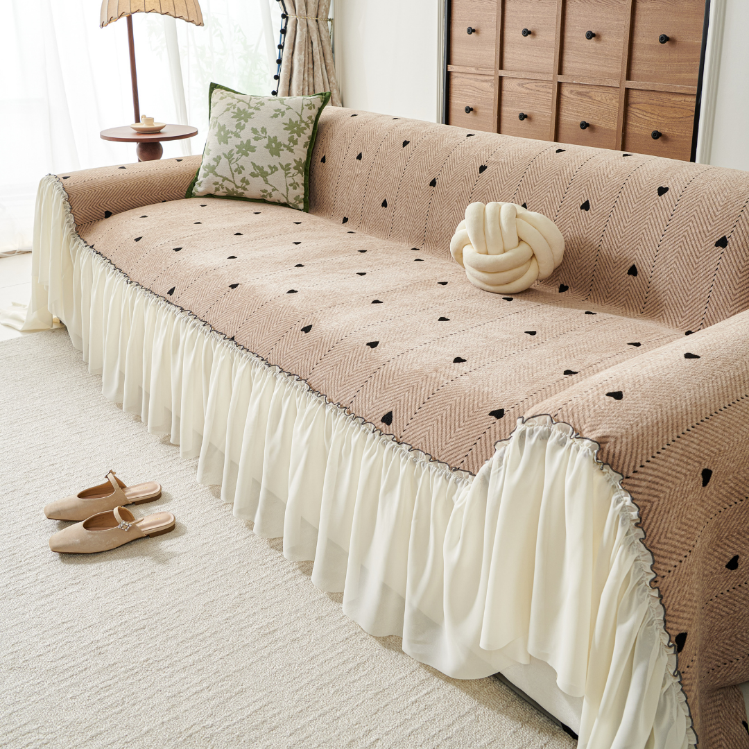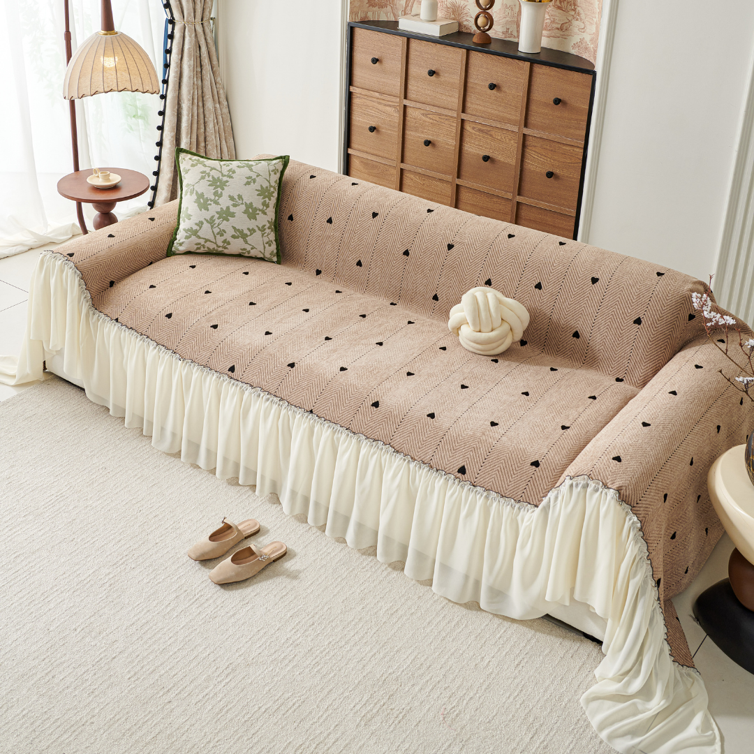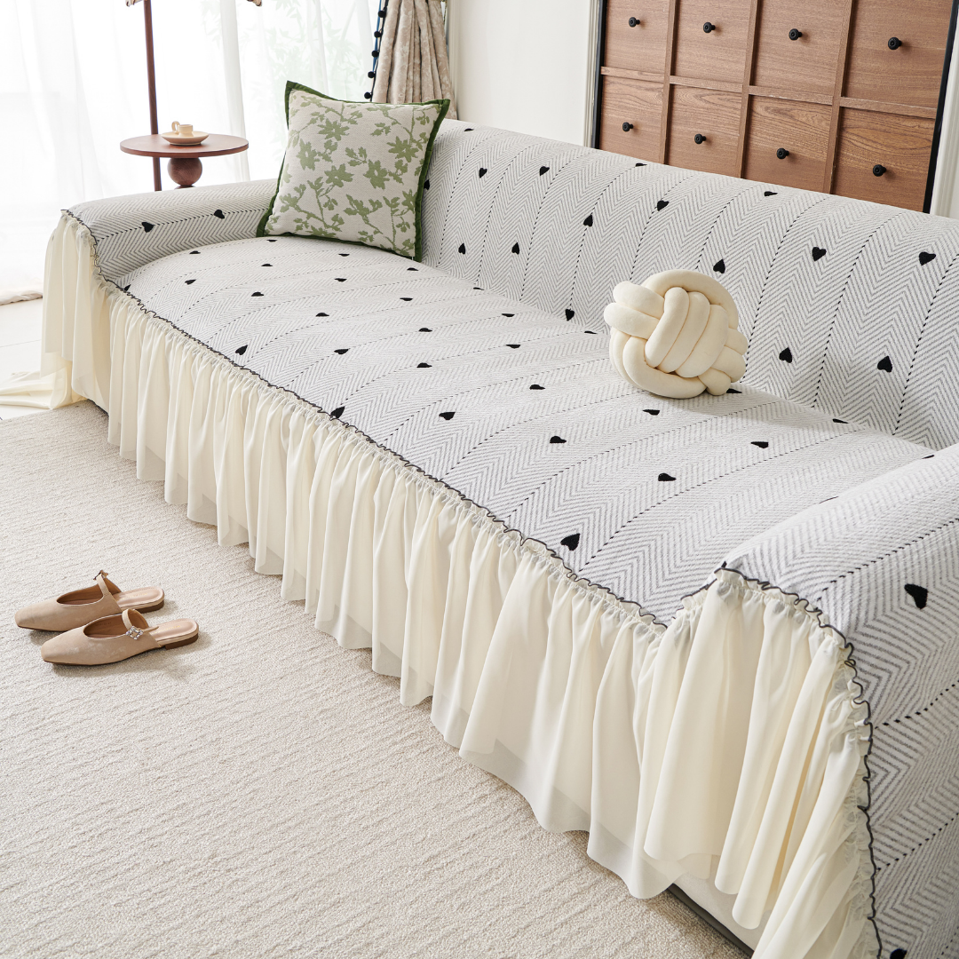 小さなハート柄が可憐に映える、フェミニンテイストのソファカバー。