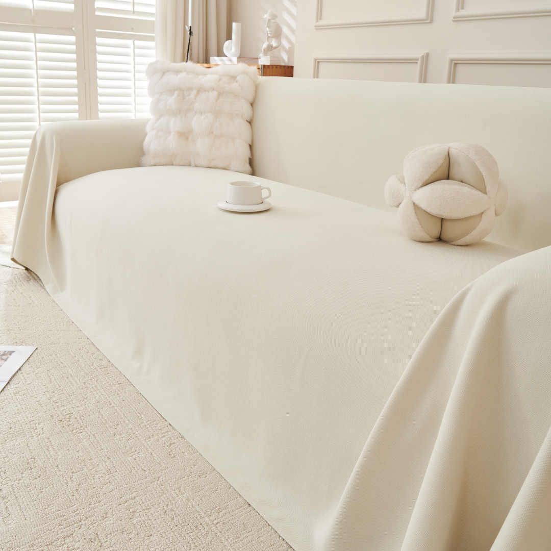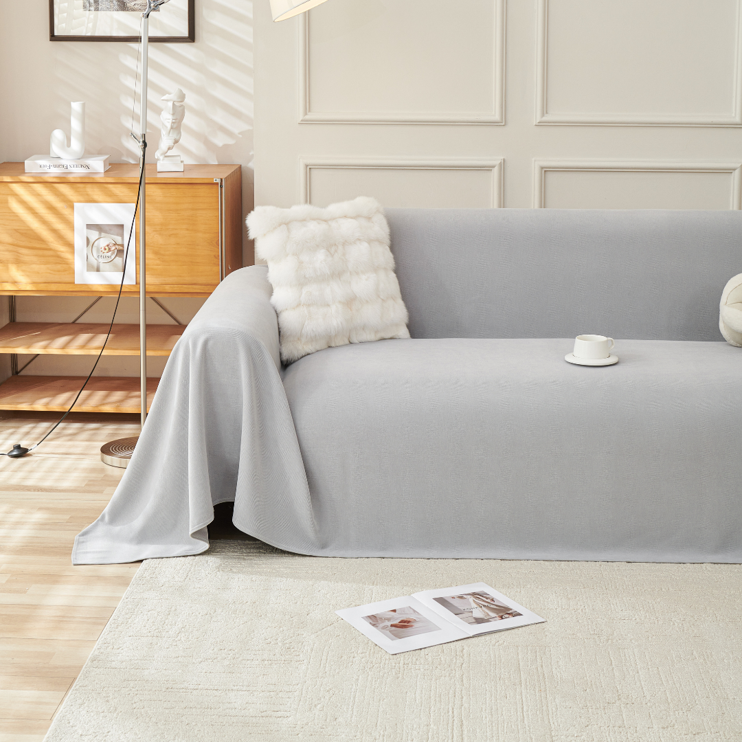 やわらかなコーデュロイ生地が上品に馴染む、シンプルテイストのソファカバー。