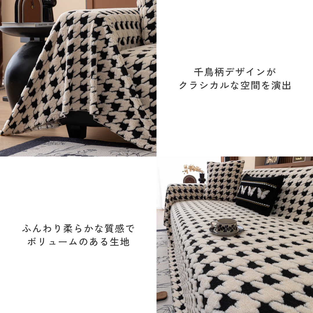 立体感のある千鳥柄が印象的な、存在感あふれるソファカバー。