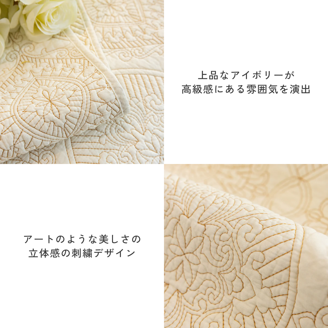厚みのある中綿入りのコットン生地がデザインに立体感をもたらし、ふっくらとした高級感ある仕上がりに。