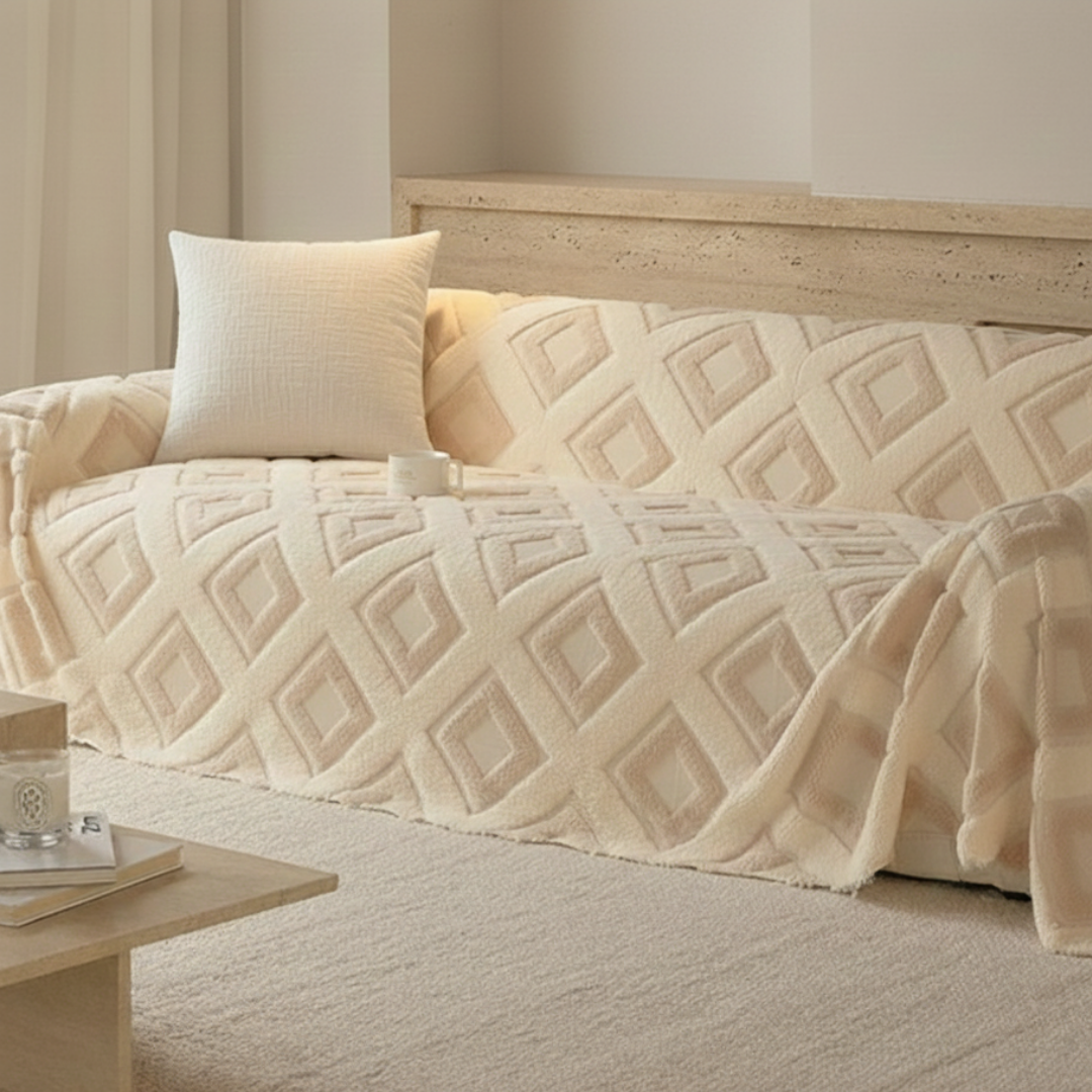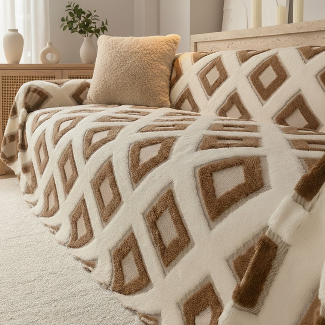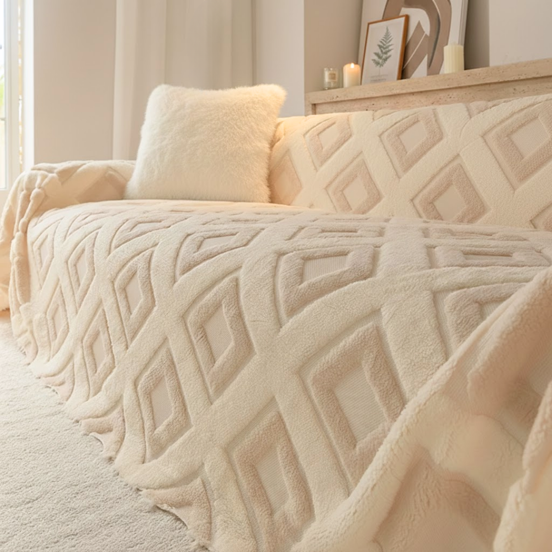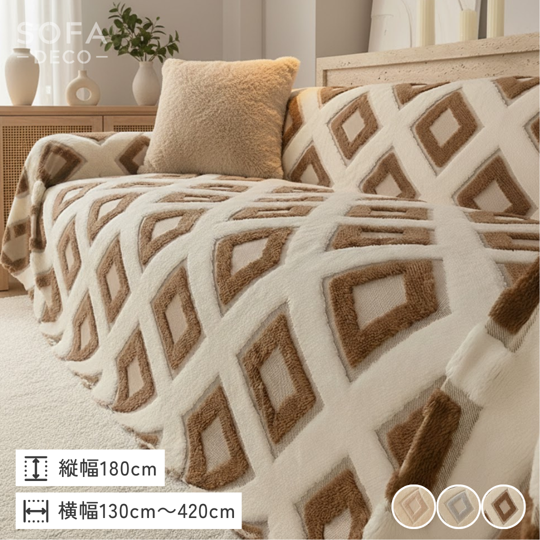 立体感のあるダイヤ柄をボア生地で描いた、存在感のあるフォルムが印象的なソファカバー。