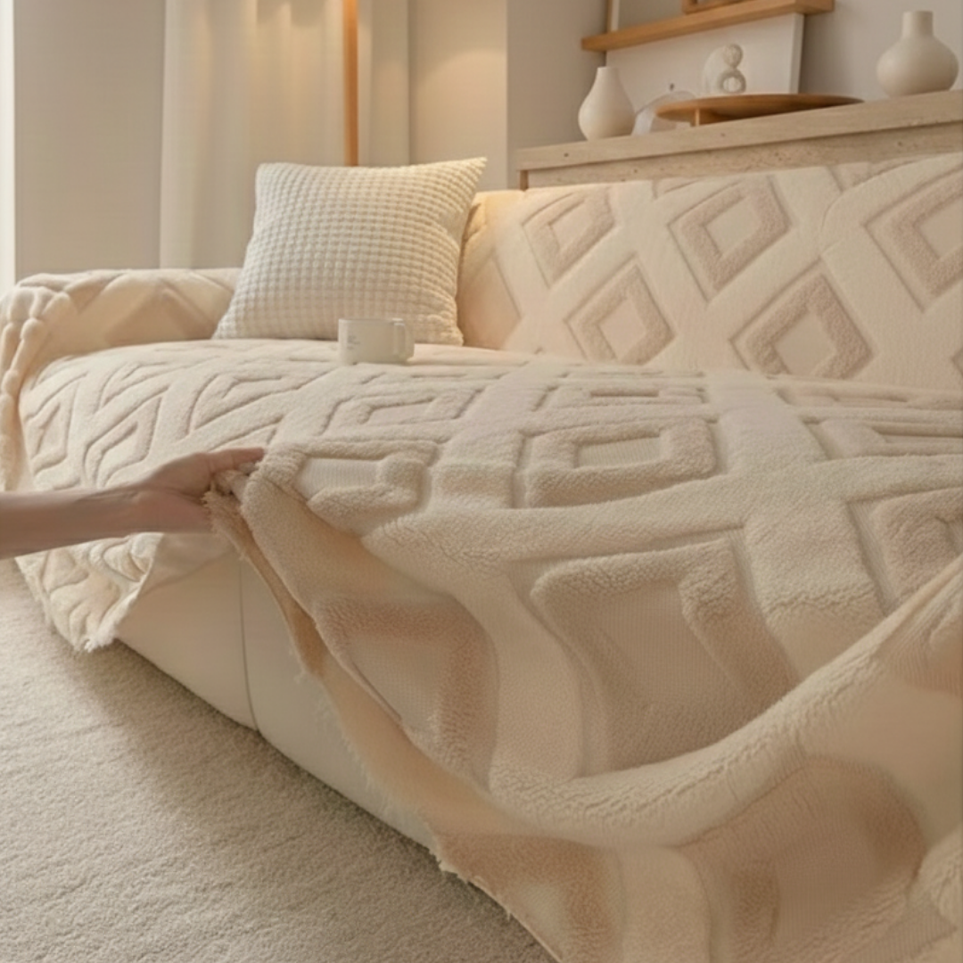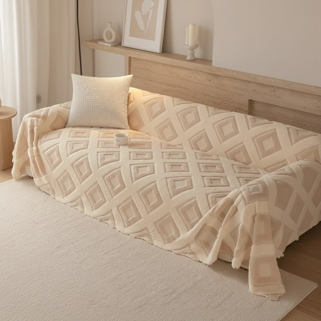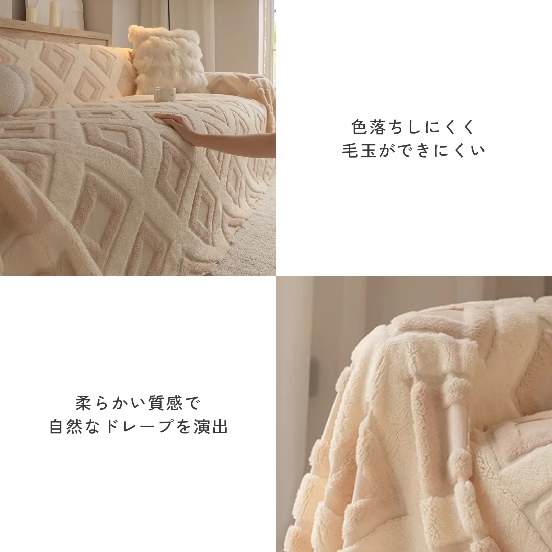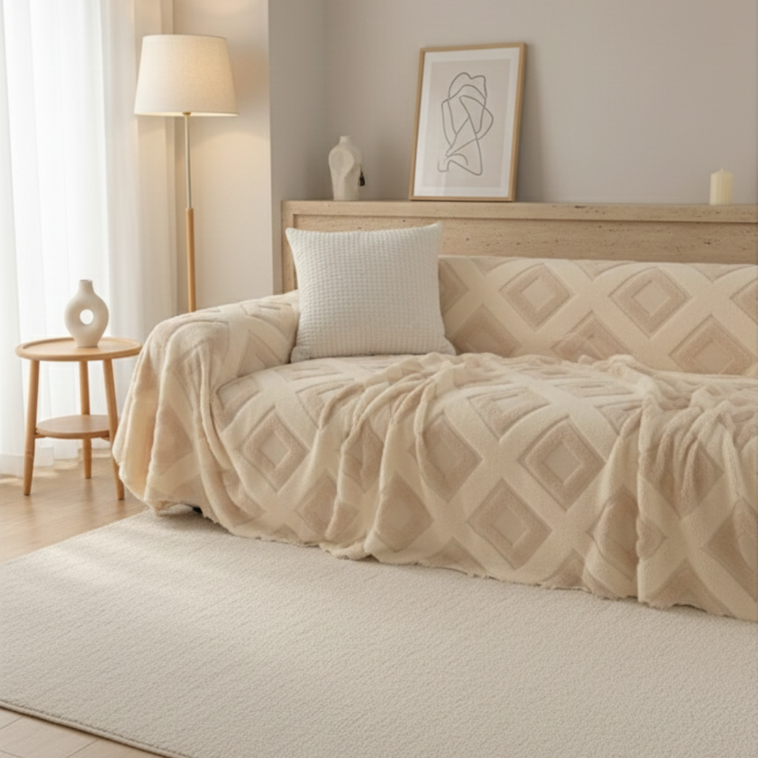 立体感のあるダイヤ柄をボア生地で描いた、存在感のあるフォルムが印象的なソファカバー。