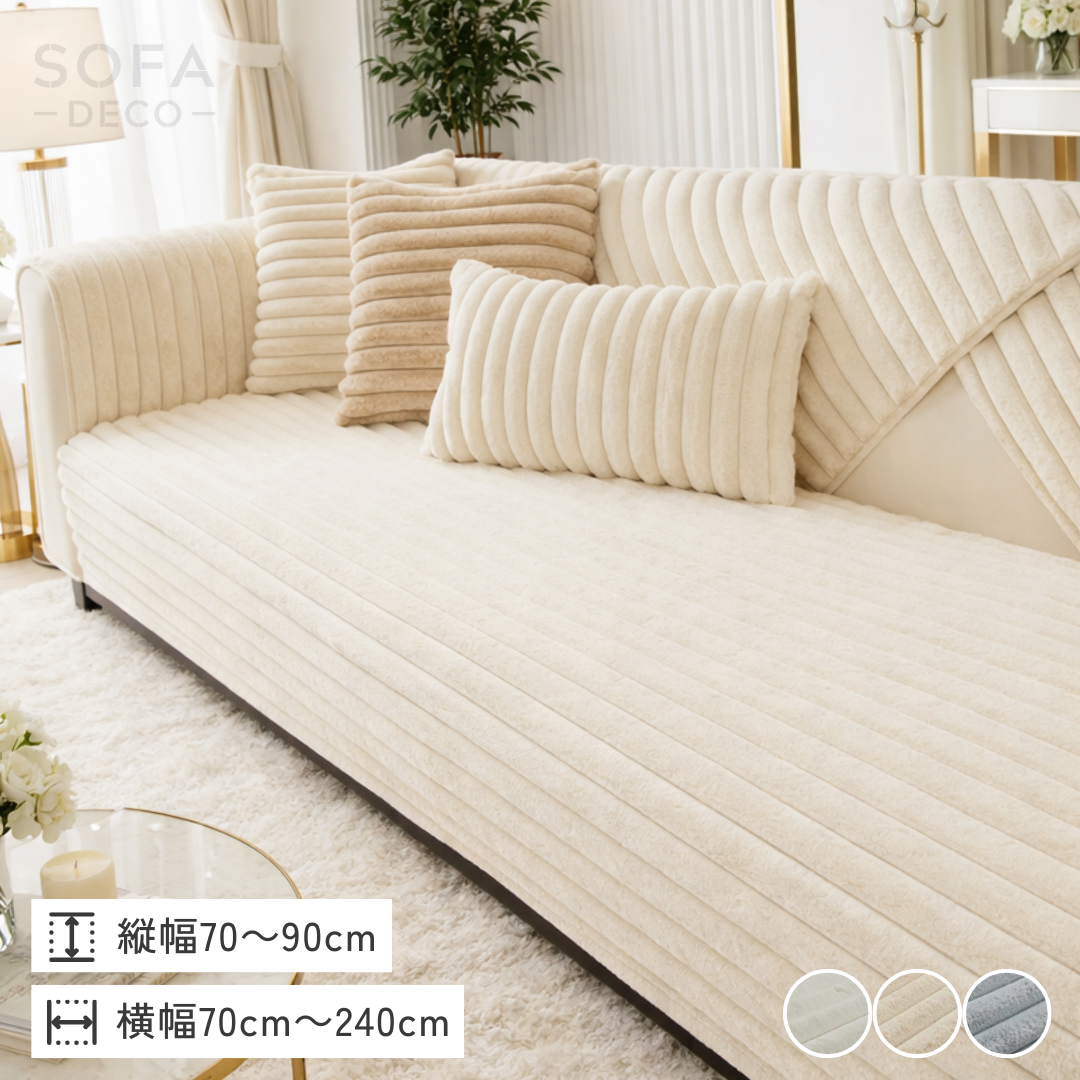 ファーリュクスリブソファカバー〔滑り止め付き〕
