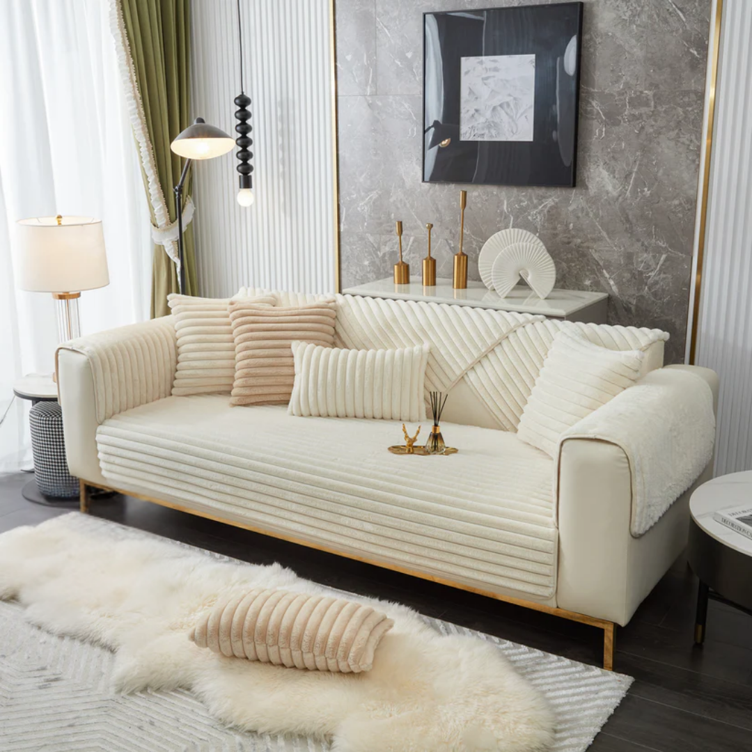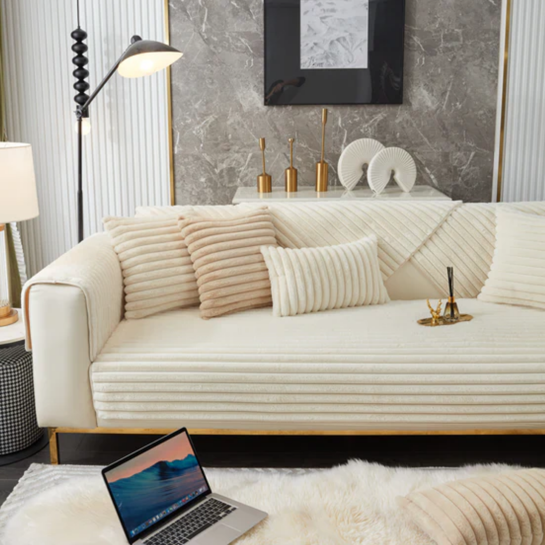 上質な光沢とふんわりとした質感が魅力の、ラグジュアリーなソファカバー。
