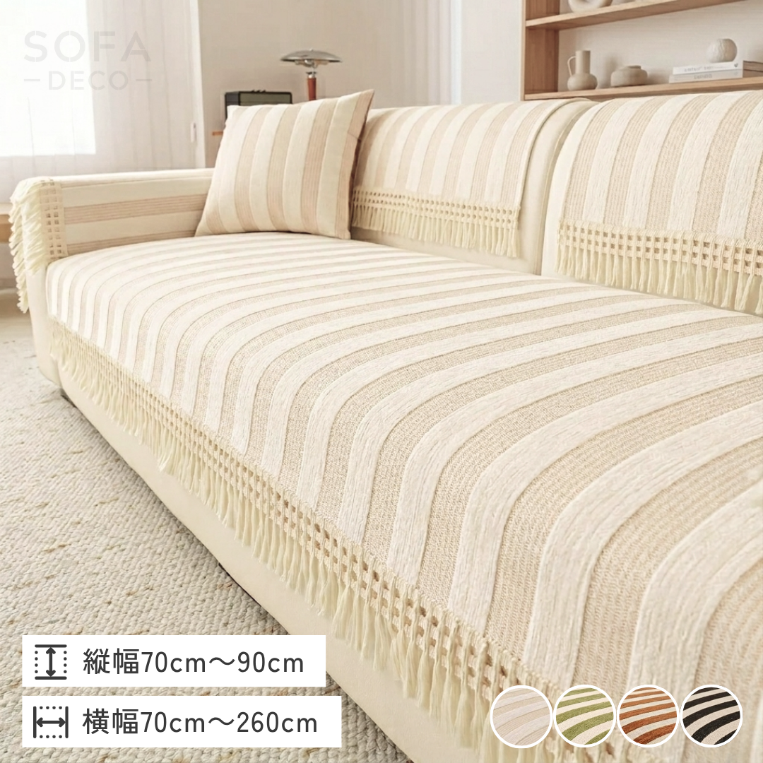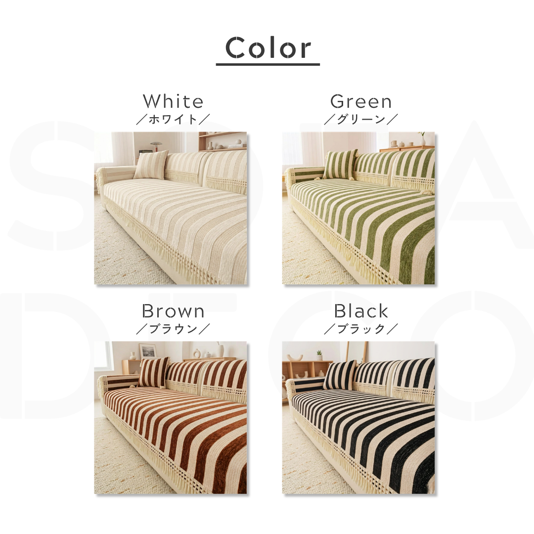ワイドストライプソファカバー〔滑り止め付き〕