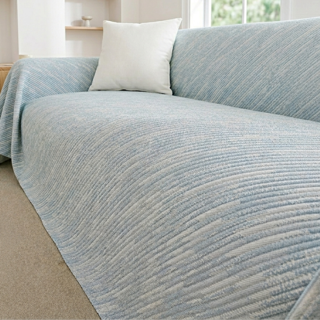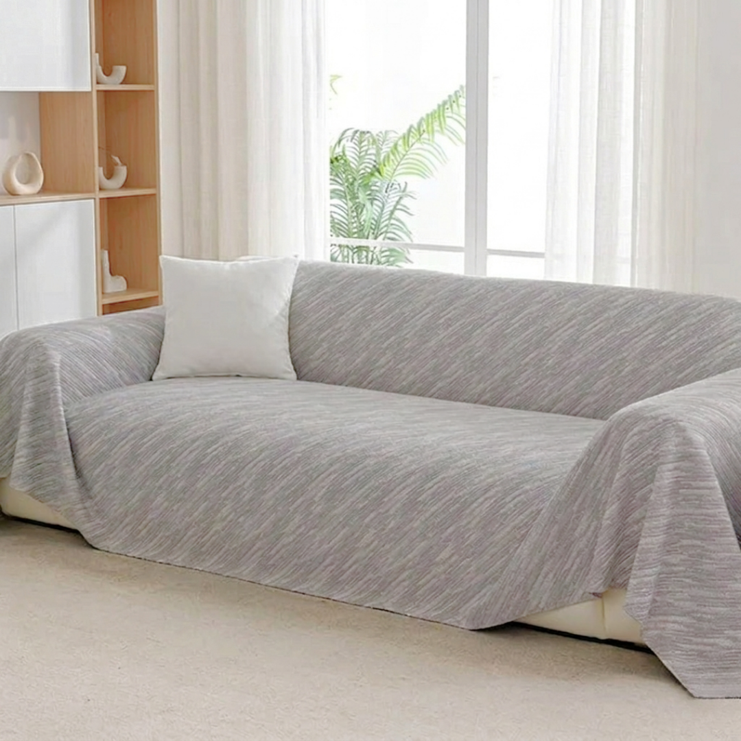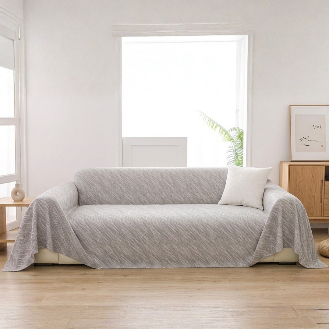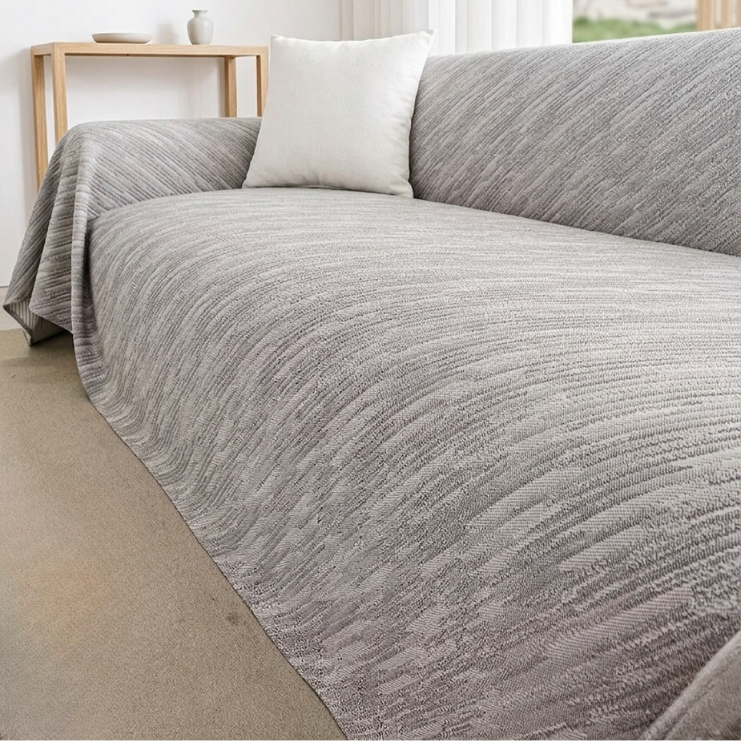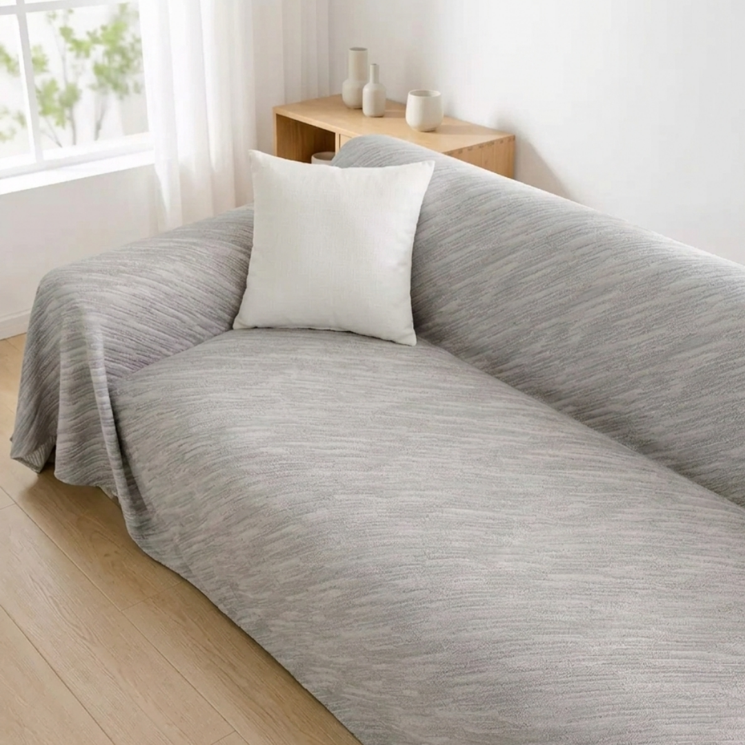 やわらかなニュアンス柄が静かな奥行きを生む、洗練された佇まいのソファカバー。
